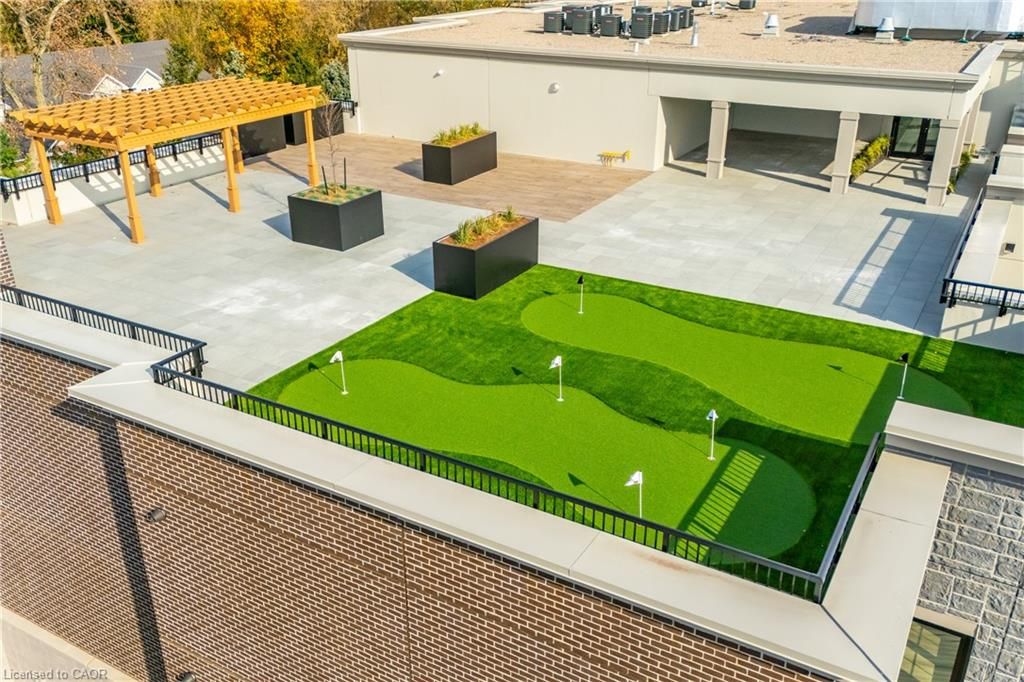Welcome to this beautifully finished condo, offering 2 beds + den, 2 baths and 1,146 sq. Ft. Of thoughtfully designedliving space. Located on the main level, this unit features both a private balcony and an impressive oversized terrace -ideal for relaxing or entertaining. The open-concept layout is enhanced by high-end finishes throughout, including a fullled pot-light package and over $51,000 in luxury upgrades. The versatile den works perfectly as a home office oradditional living space. Residents enjoy access to premium building amenities such as rooftop terraces, a fullyequipped fitness centre, and a stylish party room, along with the added convenience of underground parking and astorage locker. Set within a highly desirable ancaster community, this condo offers a seamless blend of comfort, style,and functionality.