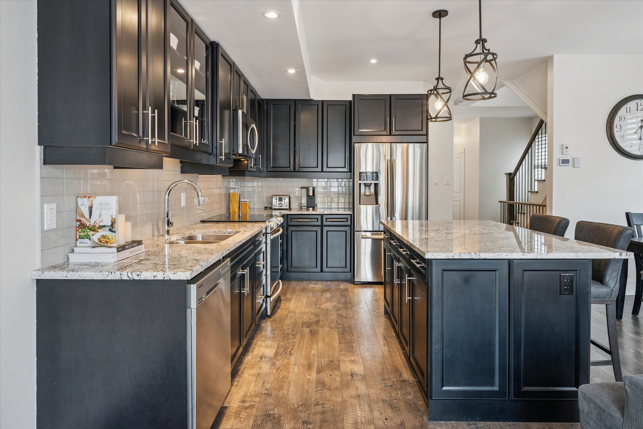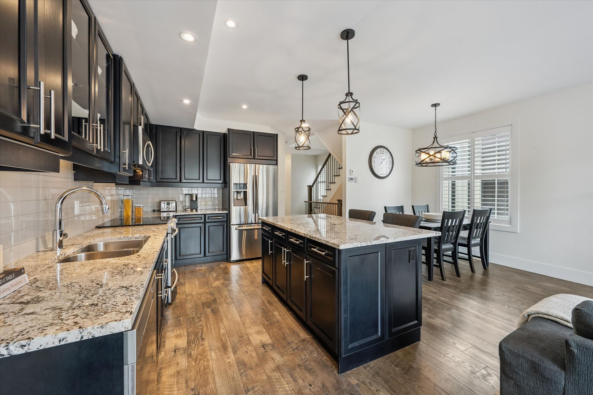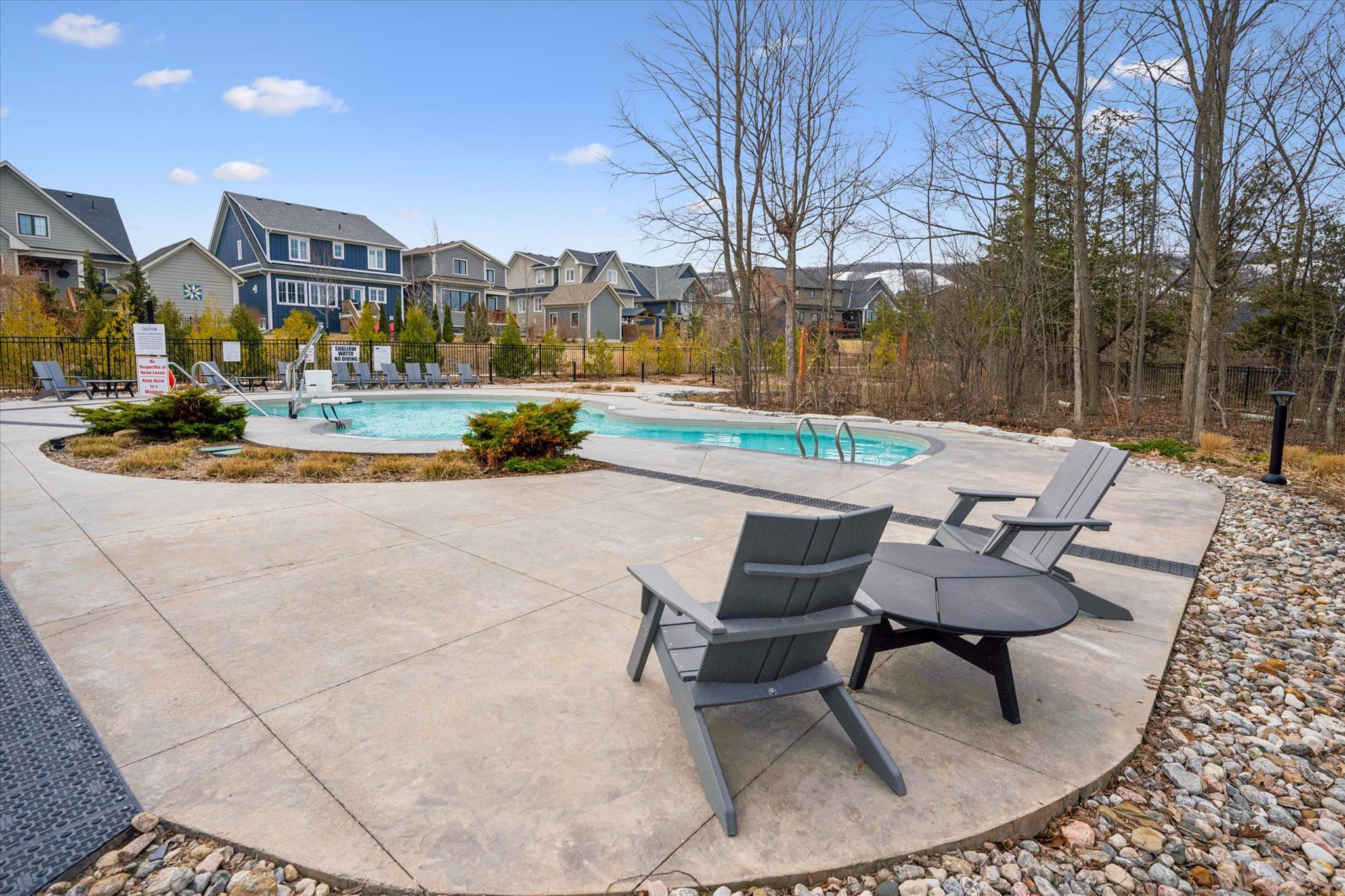 Your dream lifestyle awaits at the base of blue mountain. This beautifully maintained semi-detached home offers views of the ski hills from your front door and a level of care and finish that is immediately felt the moment you arrive. Fully finished and completely move-in ready, this 3bedroom, 3. 5 bathroom home features a bright, open-concept layout designed for both everyday living and effortless entertaining. The kitchen is both stylish and functional, with granite countertops, stainless steel appliances, and a large island that naturally becomes the centre of every gathering. The open dining space flows seamlessly into the living area, where a cozy gas fireplace sets the tone for relaxing evenings after a day on the slopes. Beautiful flooring runs throughout, and the home shows exceptionally well, offering a clean, polished feel that reflects true pride of ownership. The fully finished basement is bright and inviting, complete with large windows, pot lights, and a full 3 piece bathroom, making it the perfect space for movie nights, guests, or extended family. Upstairs, you'll find three spacious bedrooms, convenient upper level laundry, and two beautifully finished bathrooms that feel fresh, elevated, and thoughtfully designed, creating a calm and refined retreat. The fully fenced backyard offers a rare sense of privacy and the perfect setting for summer evenings, morning coffee, or hosting friends and family. Located just steps to the ski hills and minutes to blue mountain village, scenic caves, and collingwood, this home offers the ultimate four-season lifestyle. Residents also enjoy access to the shed, a private community space featuring a year-round heated pool, hot tub, sauna, fitness room, and social gathering areas designed to bring people together. From trails to slopes to village nights, everything you come to blue mountain for is right here. Clean, updated, and completely turn-key (could be sold fully furnished) this is the home you've been waiting for.