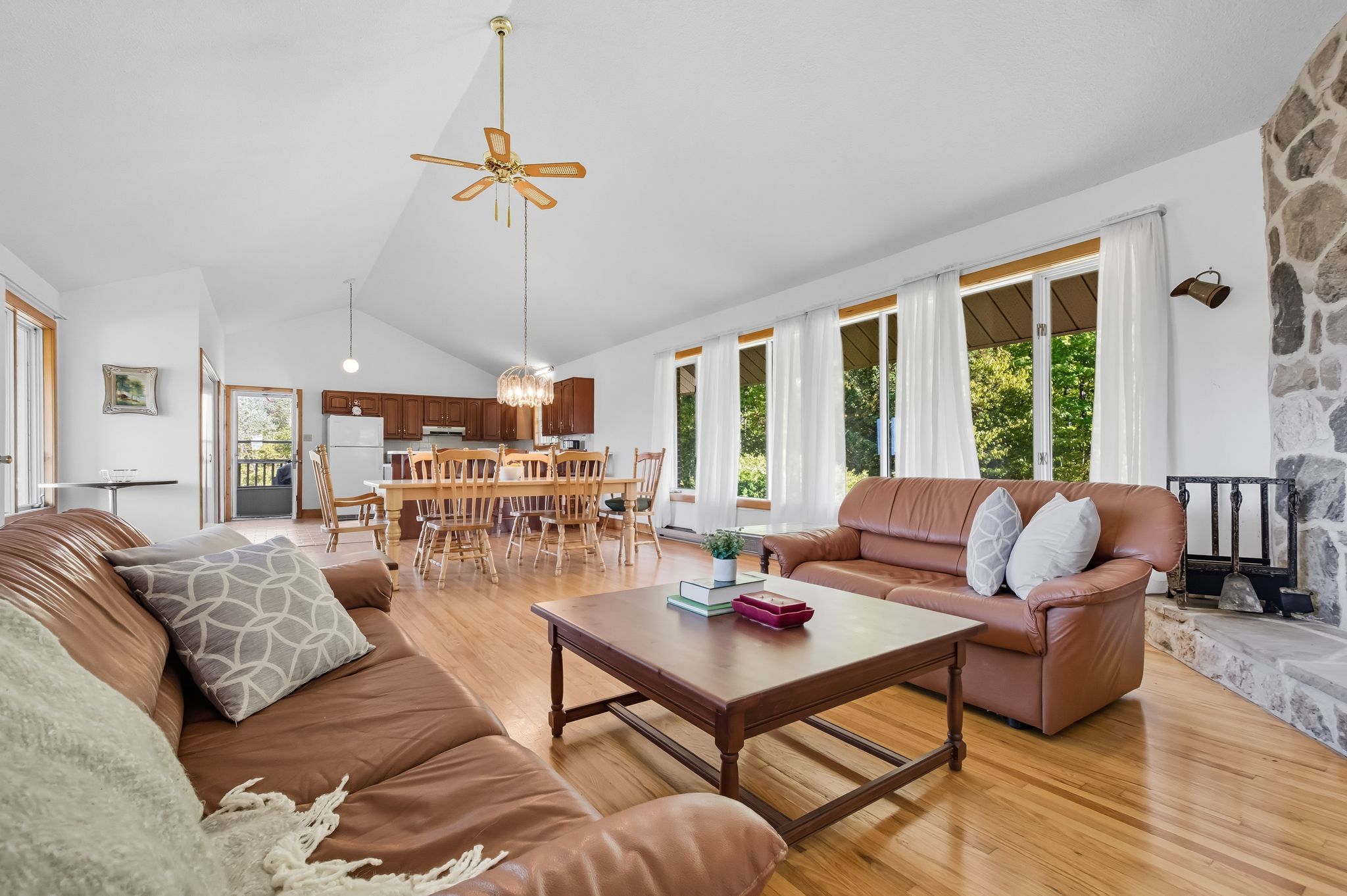 • Three wood-burning fireplaces throughout for warmth and character.