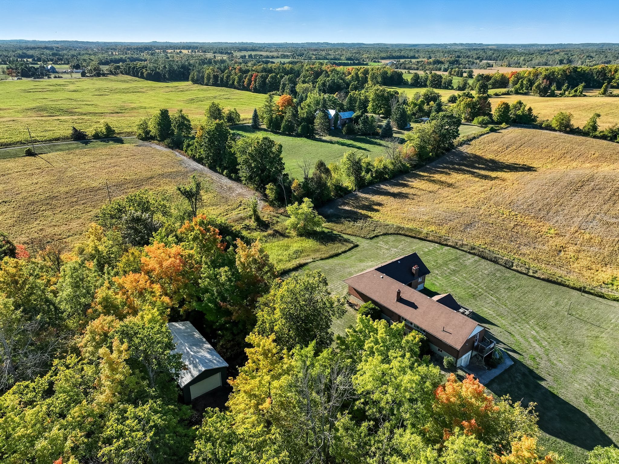 *approx 50 workable acres amongst 107 acres of managed forest with a large bungalow and detached shop. Plenty of room to grow/build and completely private!* an impressive 107-acre estate offering the perfect blend of rural charm and untapped potential. Built in 1986, the home features 3 spacious bedrooms and 2 full bathrooms, providing comfortable living space for families, retirees, or those seeking a peaceful country retreat. Inside, you'll find three wood-burning fireplaces, adding warmth and character to multiple living areas. The unfinished basement boasts high ceilings, its own outdoor access, a wood-burning fireplace, and a sprawling layout ready for your personal touch, whether you envision a recreation room, additional bedrooms, or a complete in-law suite. Beyond the home, the land speaks for itself. With 50 acres currently rented to a local cash crop farmer, there's opportunity for passive income or future agricultural ventures. The remaining acreage invites exploration and recreation. Whether you're dreaming of a hobby farm, a private family retreat, or simply space to breathe, this rare offering combines natural beauty, income potential, and timeless craftsmanship-all just minutes from the heart of campbellford.