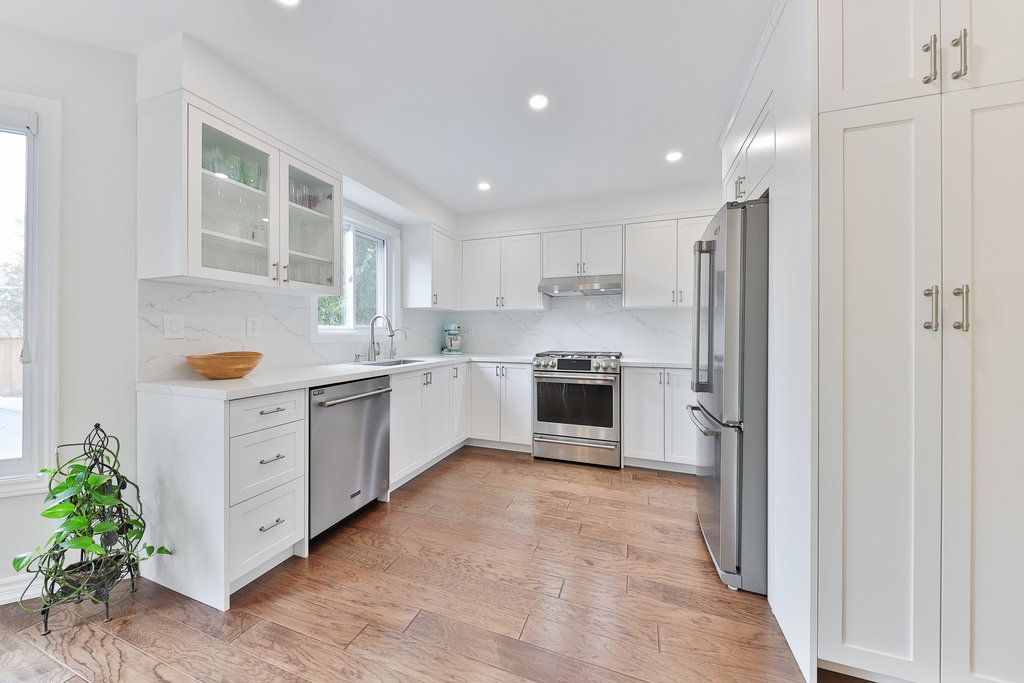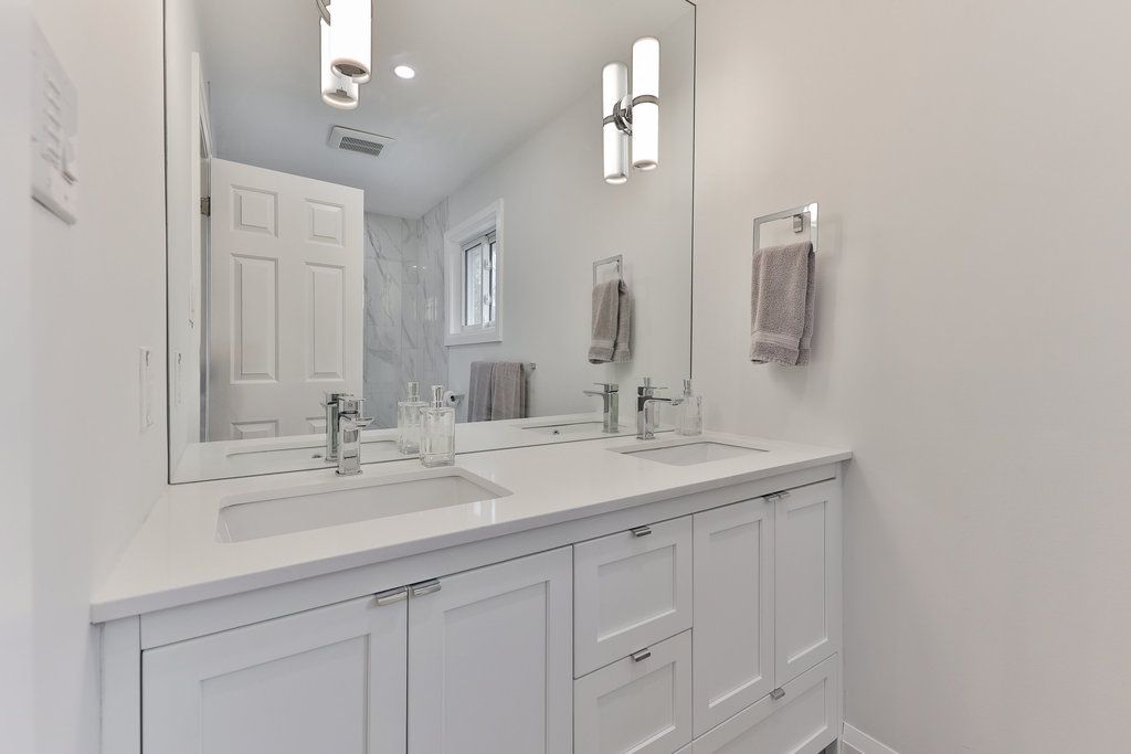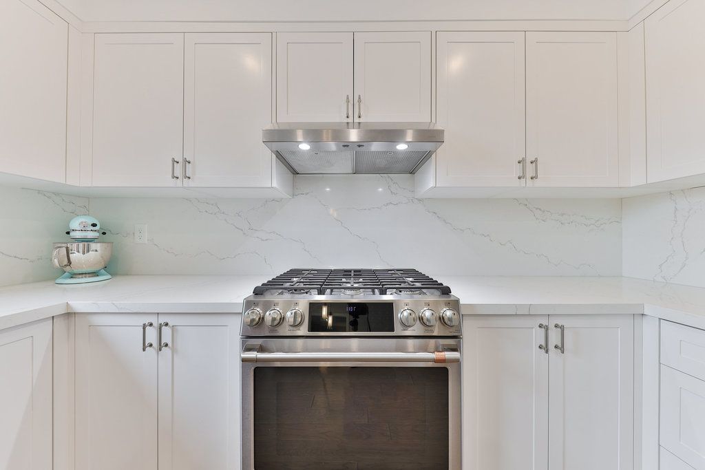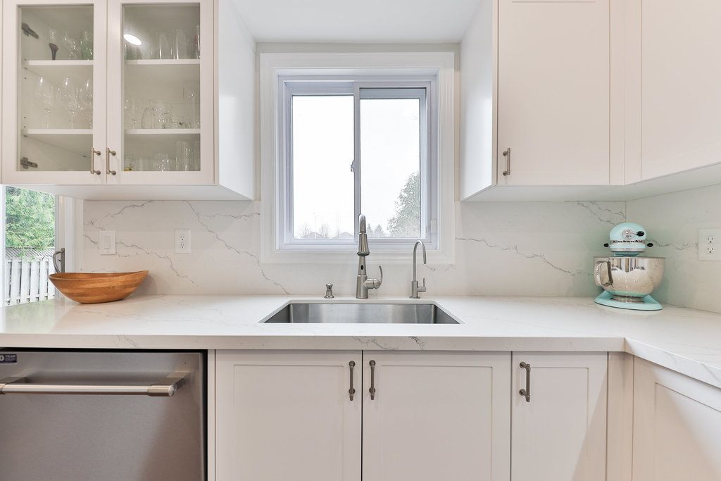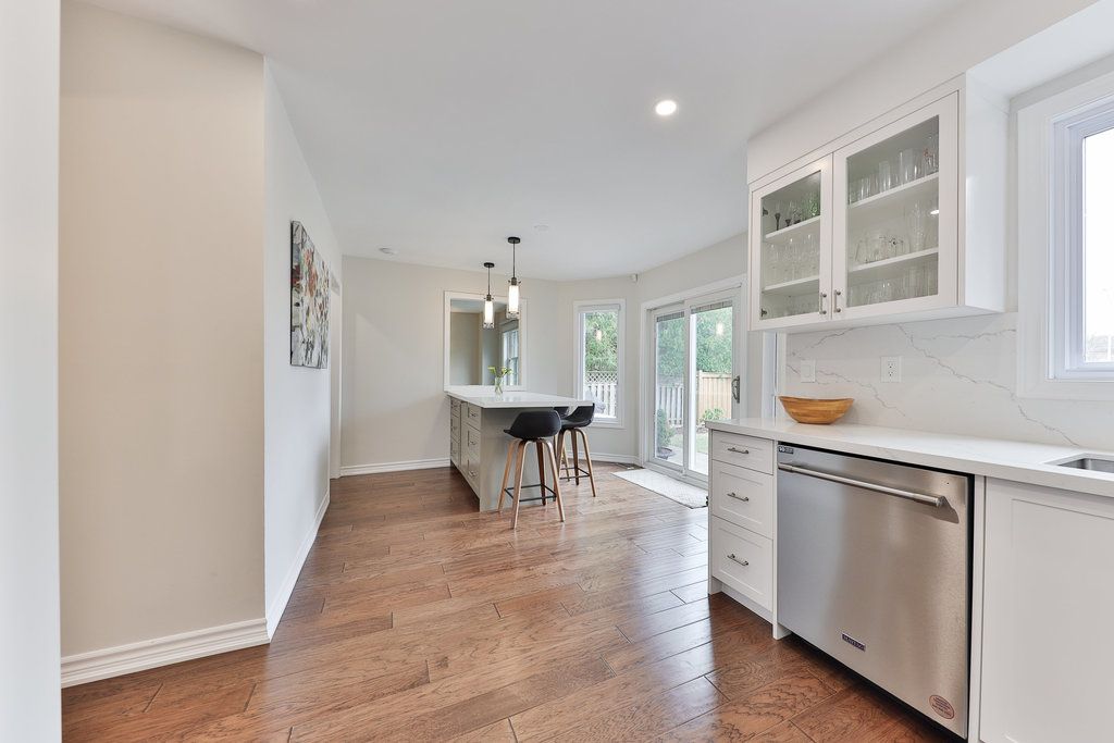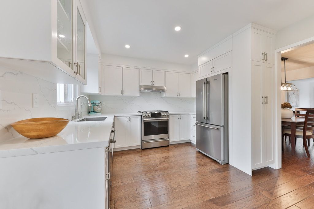 • Stunning white kitchen with custom breakfast bar for easy meals.
