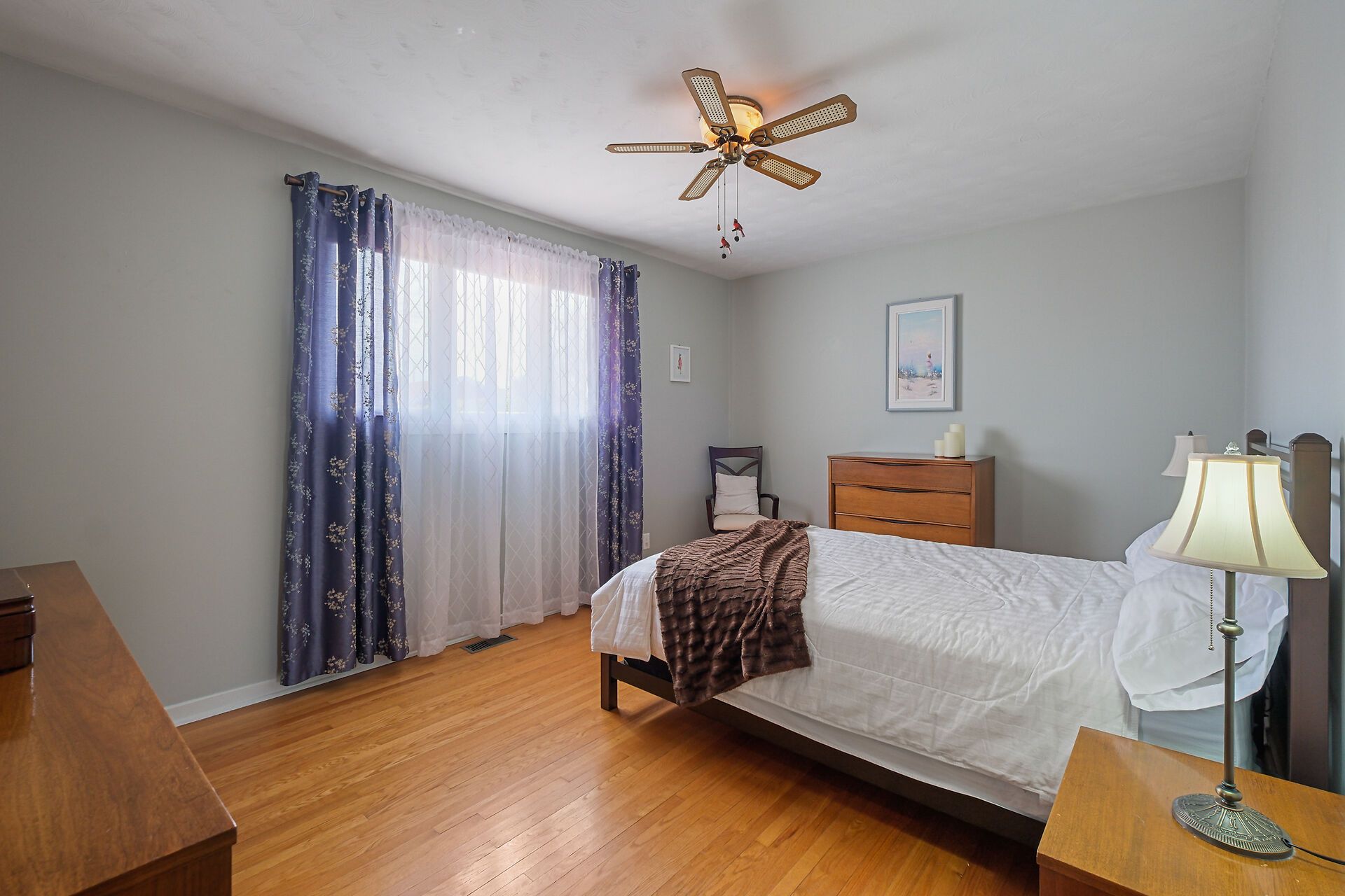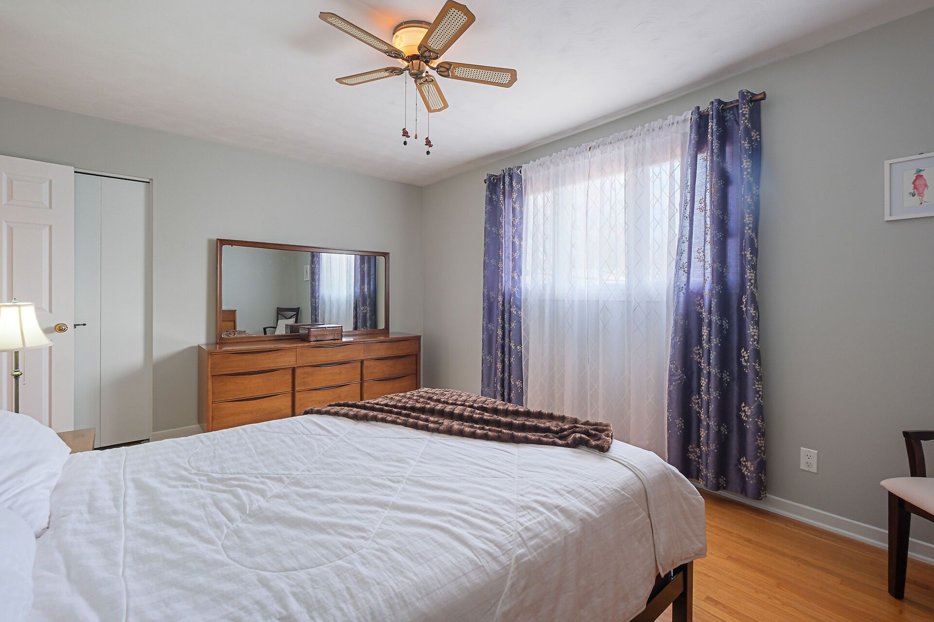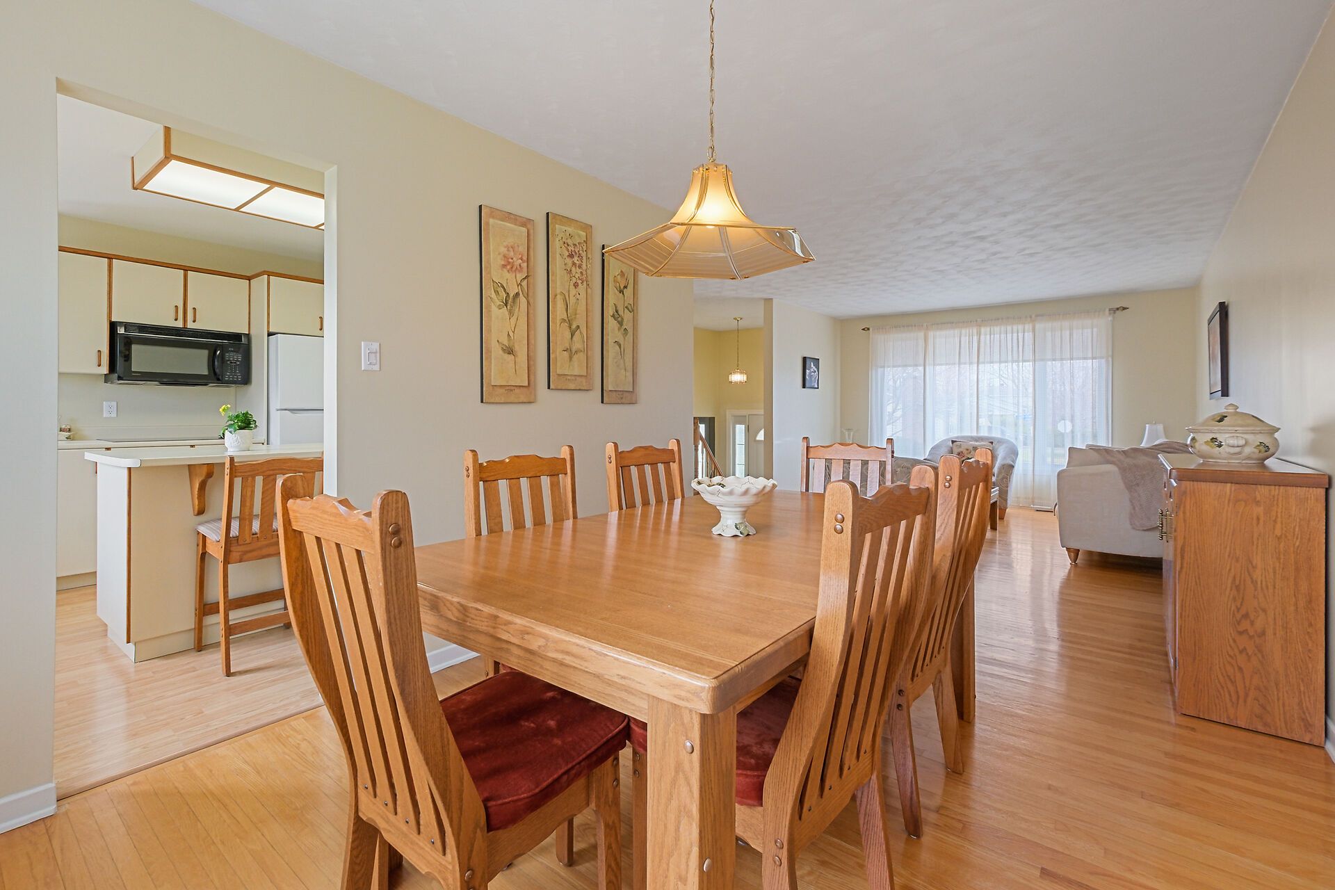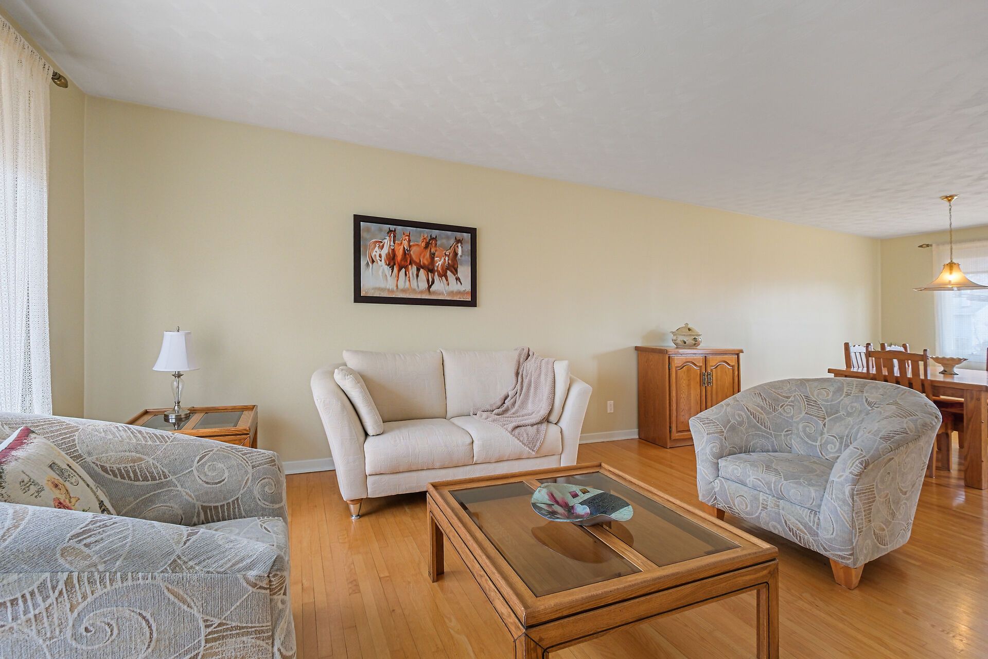 • Spacious living area with large windows and hardwood flooring throughout.