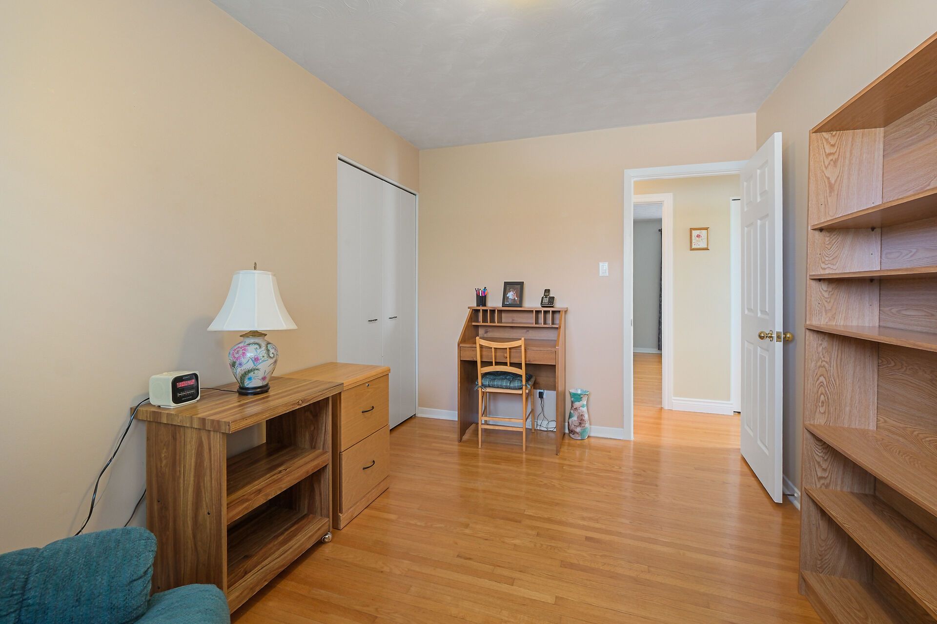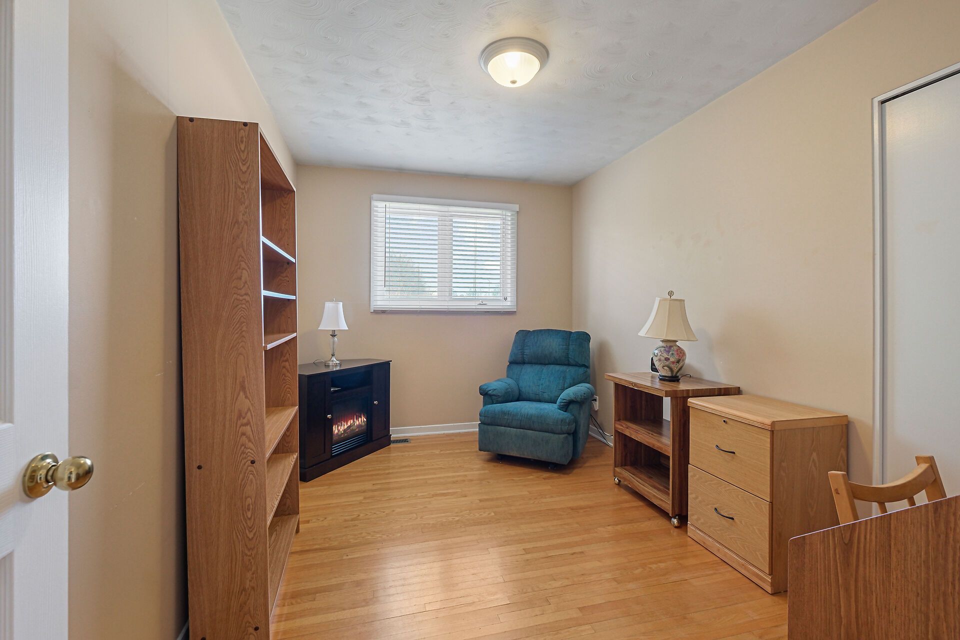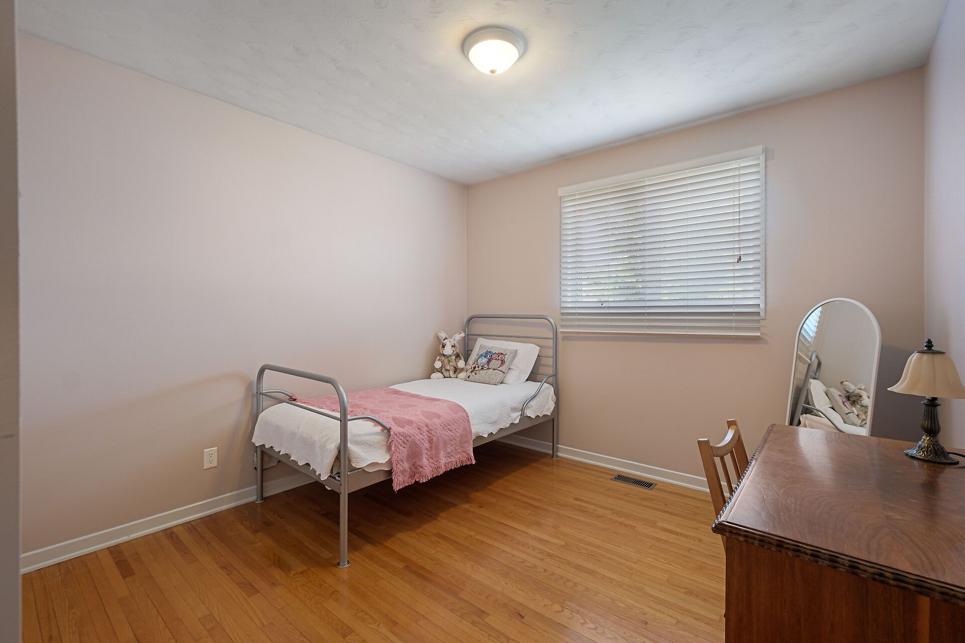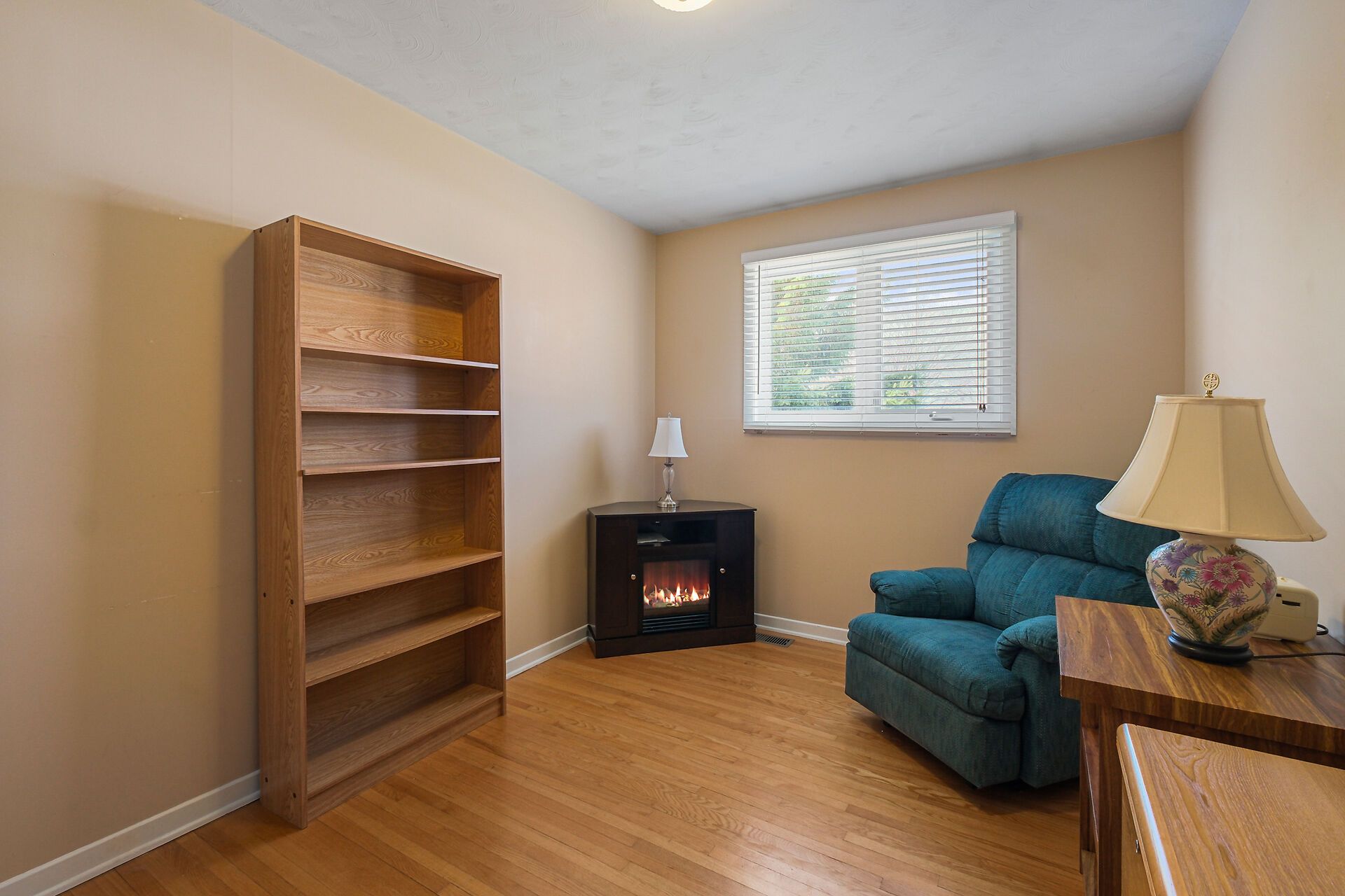 • Spacious living area with large windows and hardwood flooring throughout.