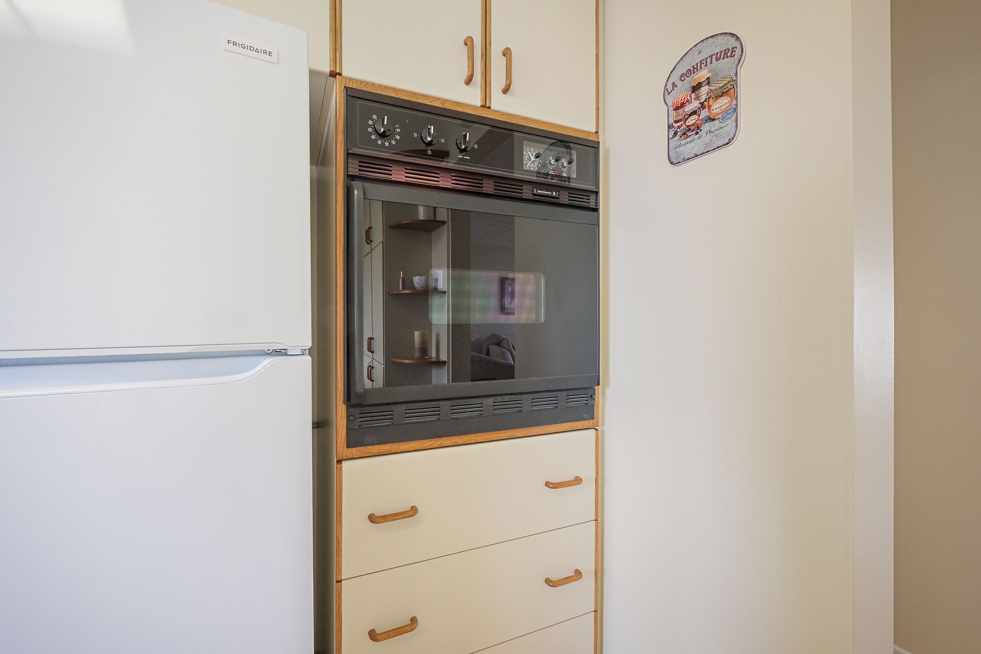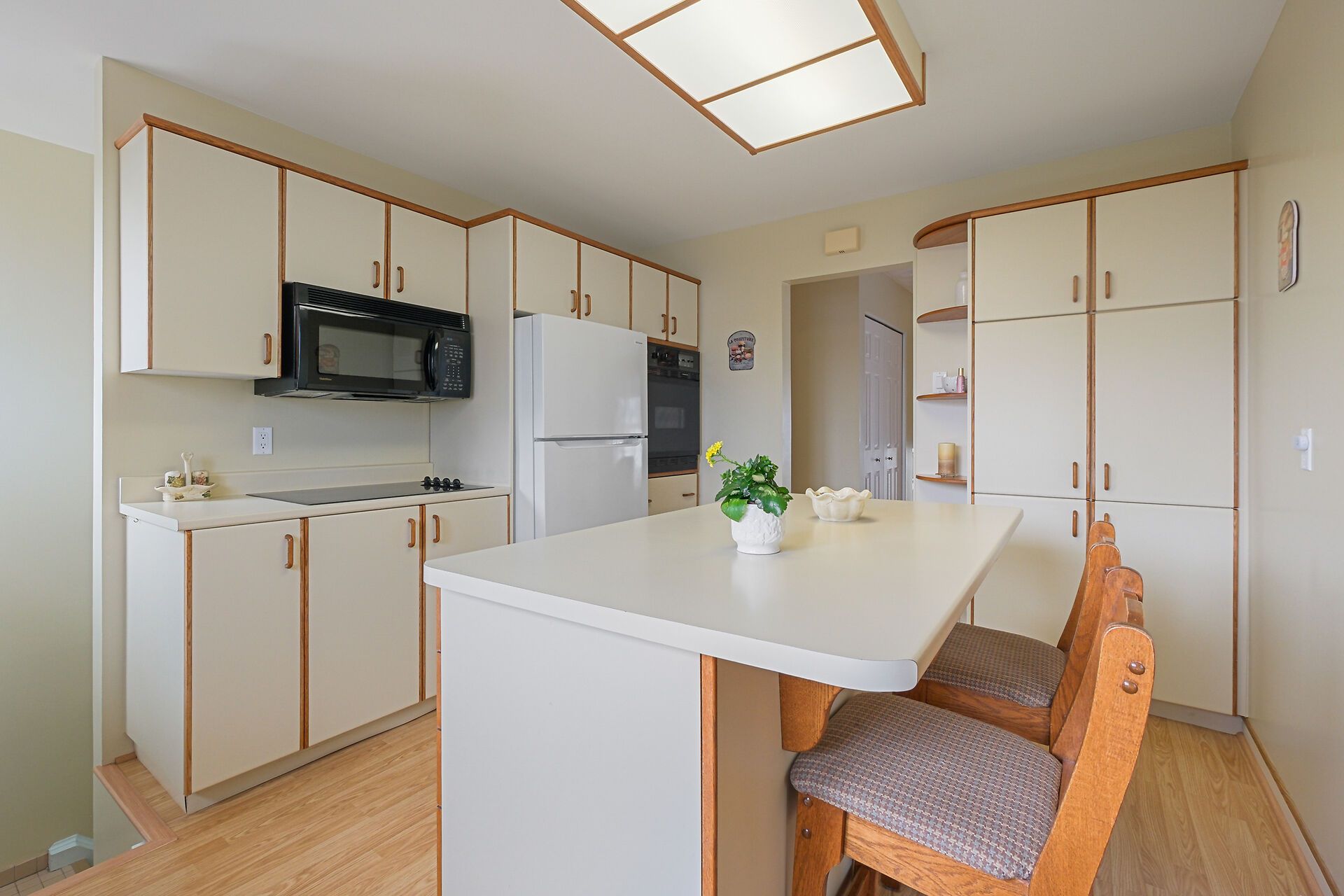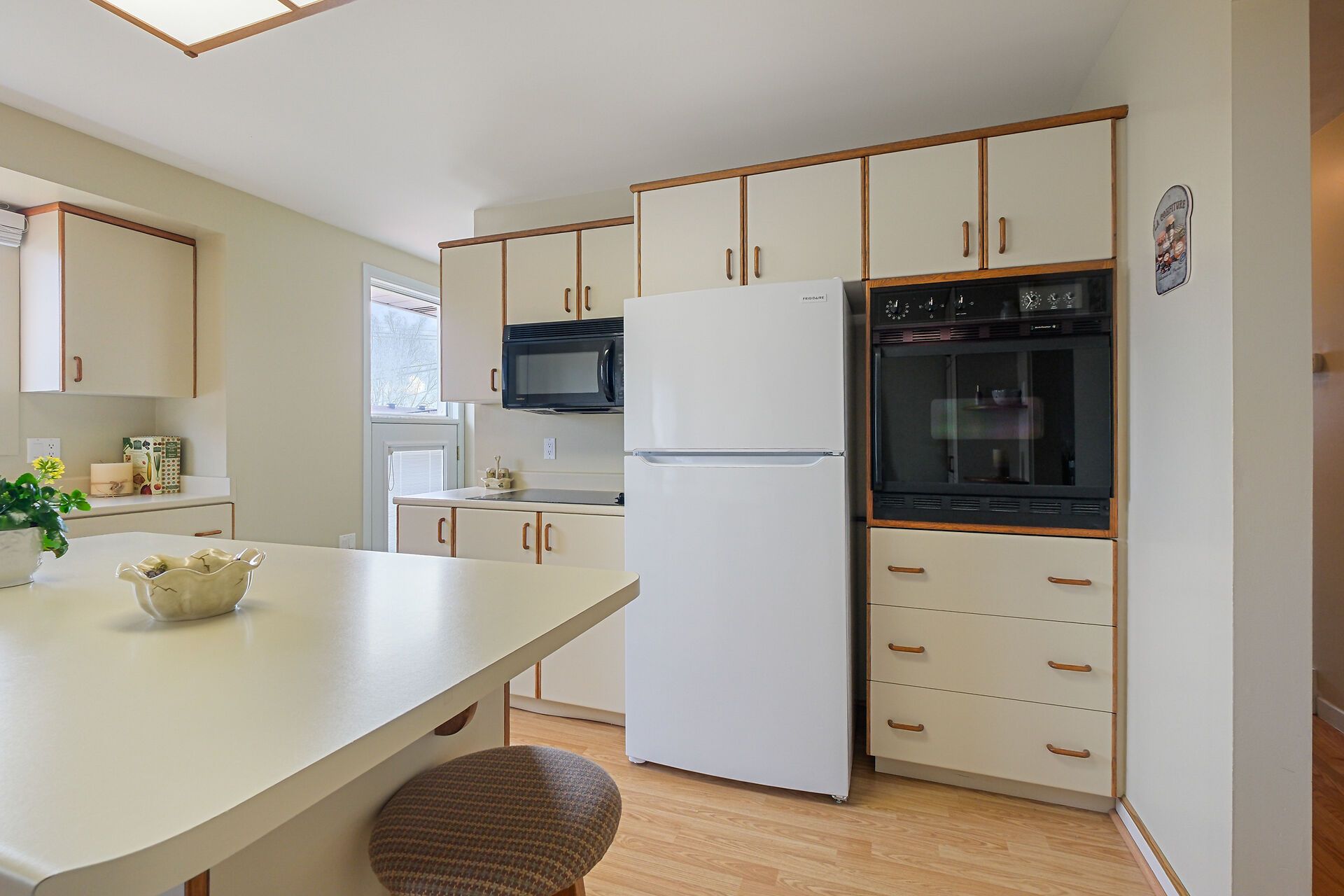• Functional kitchen with plenty of cupboard space and built-in appliances.