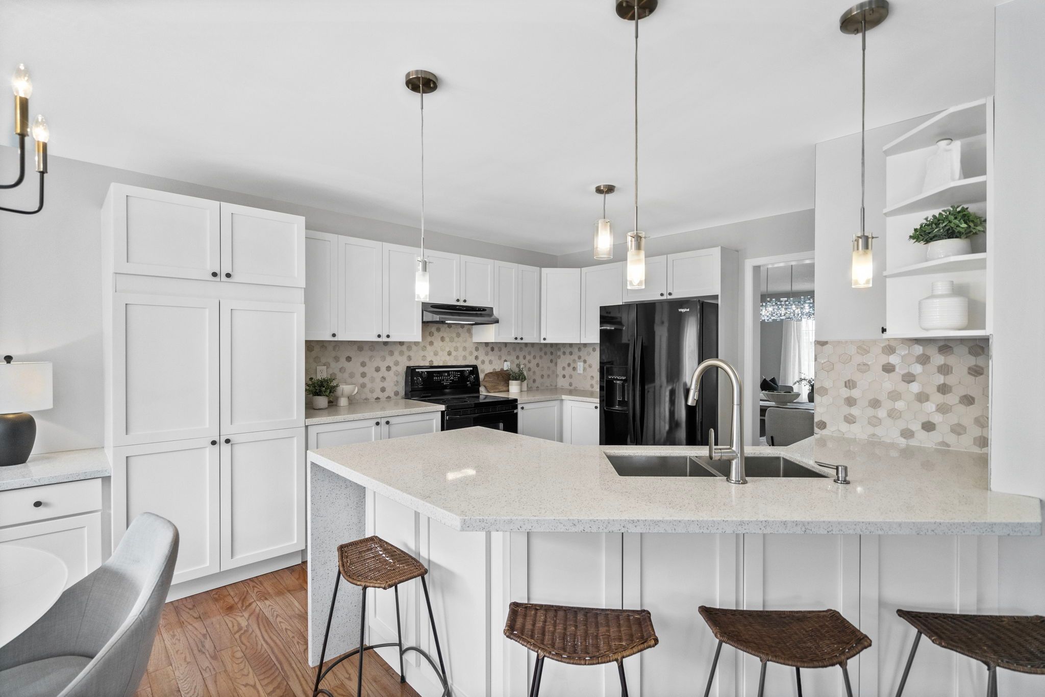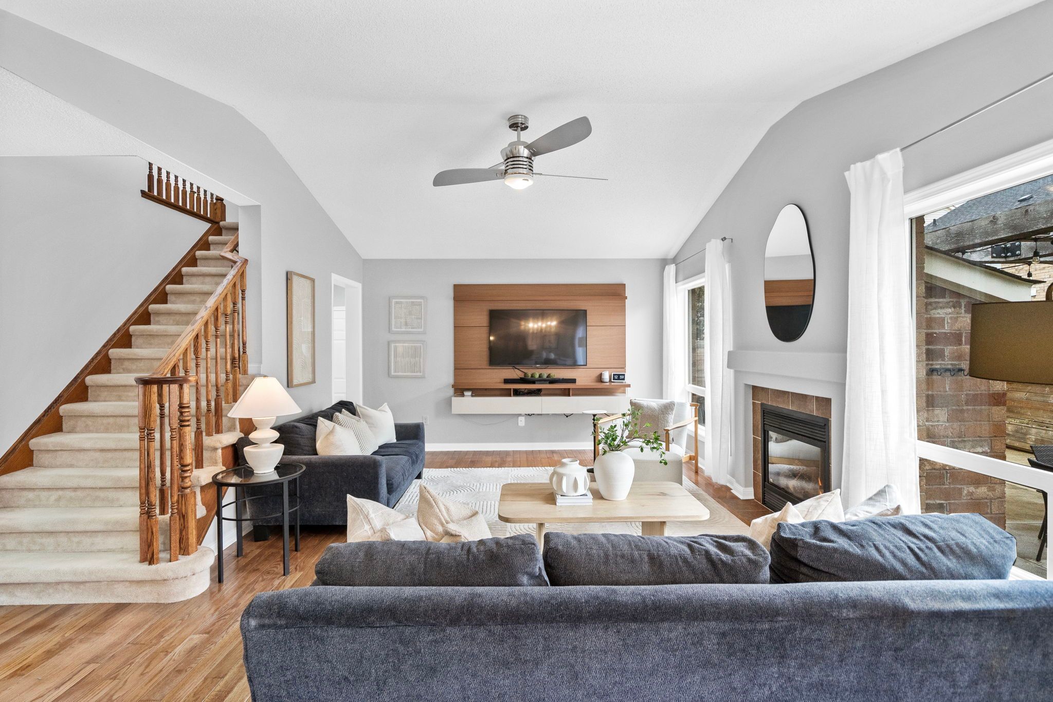 • Bright family room with fireplace and open layout for gatherings.
