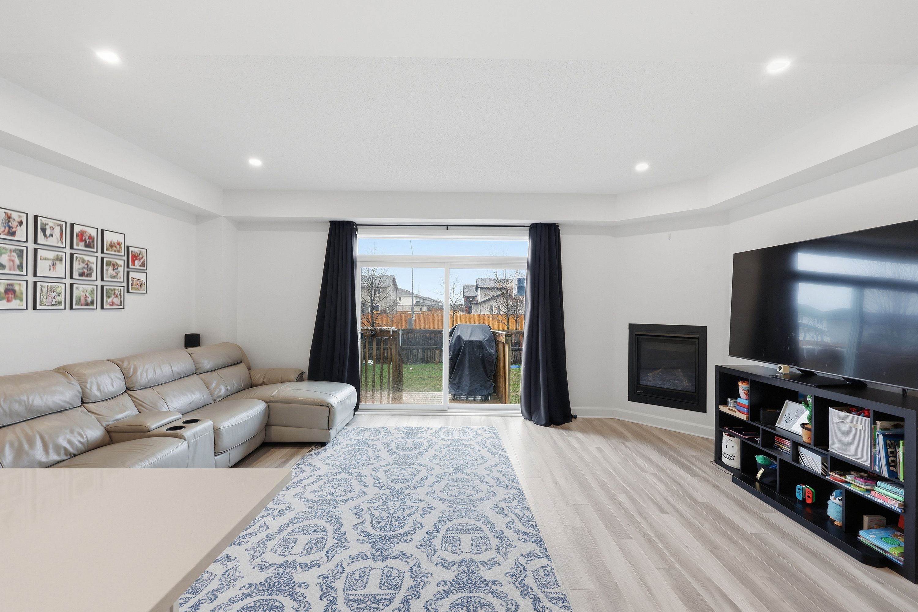 • Bright open concept main floor with 9-foot ceilings and cozy fireplace.