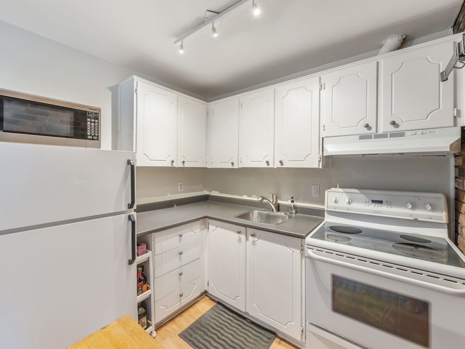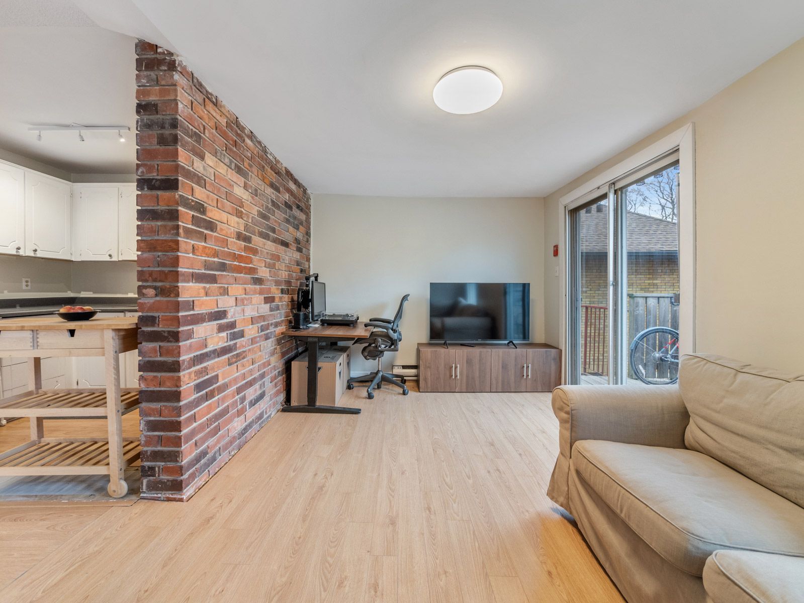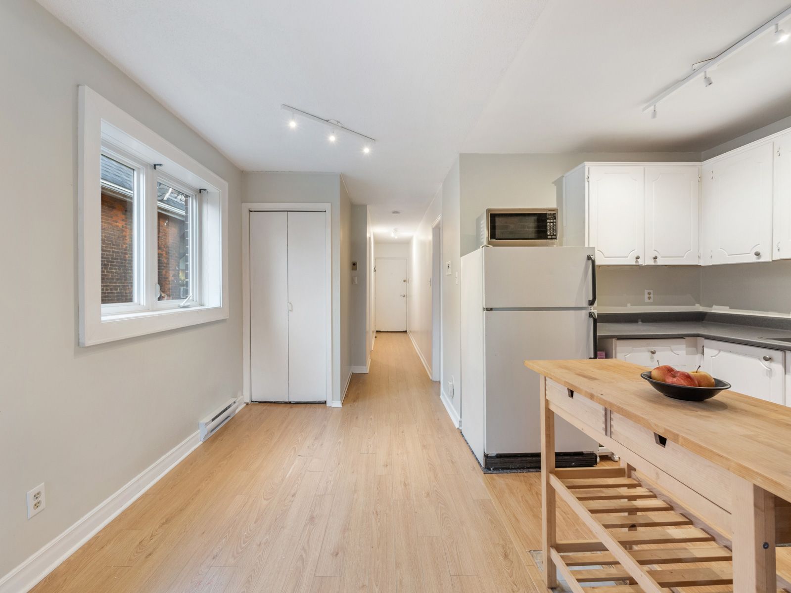 Rarely offered and full of character, condo alternative. This bright and airy second-floor residence sits in an intimate four-unit building - ideal for someone who values a unique space with personality. Flooded with natural light on three sides, this unit features a stunning exposed brick wall that wraps from the kitchen into the living room, creating a warm, loft-like feel. The living room opens onto a large private deck overlooking yard and an abundance of trees. The back stairwell leads directly to your included lane-access parking spot - an urban luxury. The bedroom offers a serene south-facing view of the lake, providing the perfect backdrop for quiet mornings or creative inspiration. Practical touches include a front hall closet, she storage, additional basement storage for select items and a rare in-suite two in one combo washer/dryer- an uncommon find in a character home of this style. Utilities and high speed internet are included! Neighbouring tenants are long-standing on all levels, contributing to a calm, respectful atmosphere. The property is well maintained by onsite landlords who take pride in the home's upkeep. If you're seeking a unique, soulful alternative to the typical condo, something with history, warmth and a touch of artistic charm, this space is for you. Truly one of a kind! Walking distance to lake, high park, restaurants and shops on roncy, ttc in all directions, upexpress a short ride away.