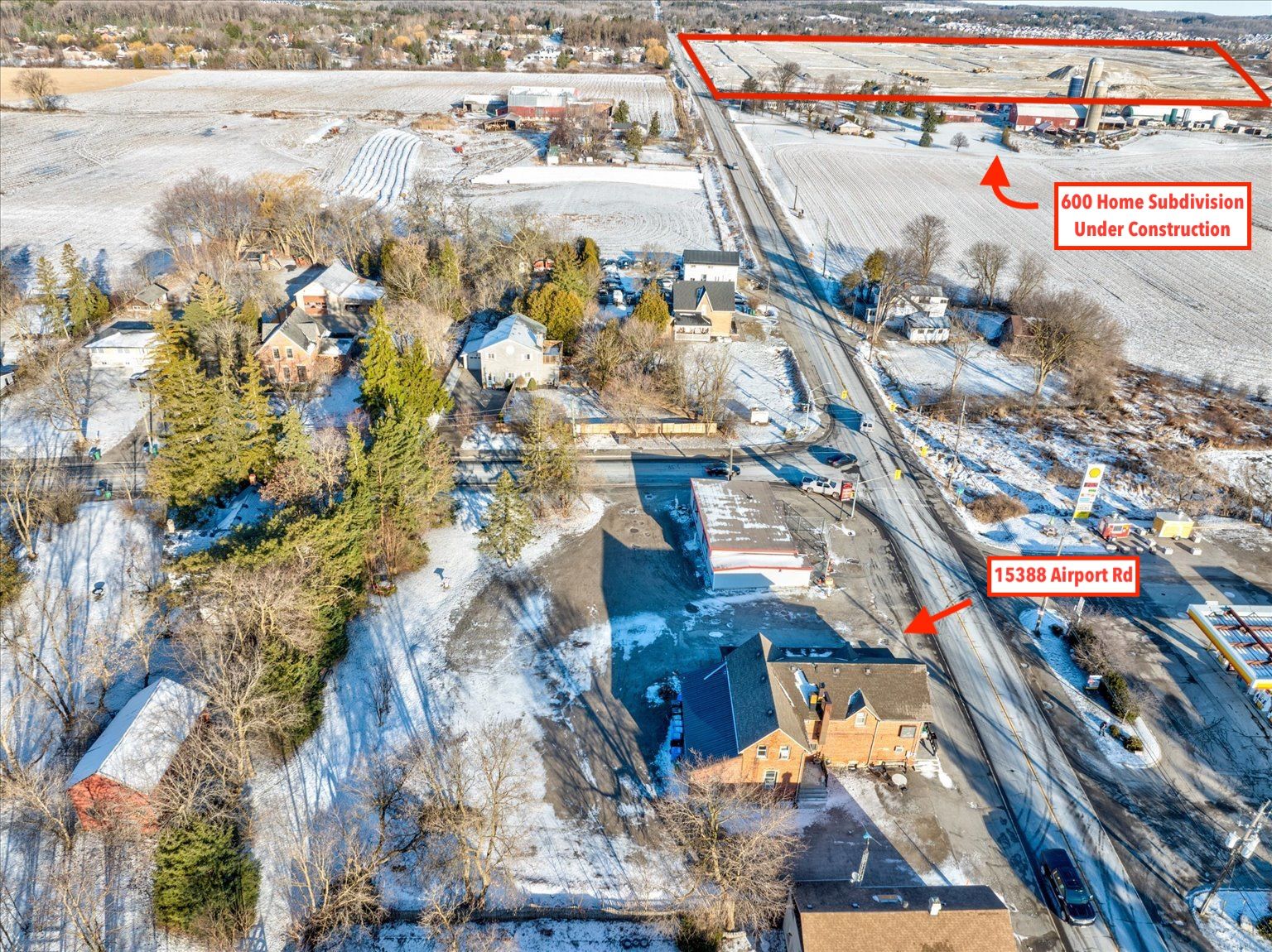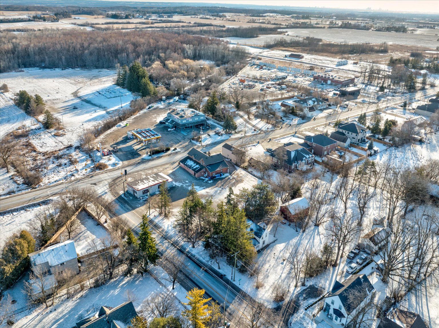 Rarely offered, prime caledon east commercial location with future development potential. This 0. 7 acre property is situated at the corner of airport rd and olde base line, a high-traffic intersection just south of caledon east's booming expansion. Current building is 4000 square feet above grade (basement additional). Large parking lot has access via both airport rd and old base line. The property is currently zoned village commercial (cv), permitting a wide variety of use, including restaurant, retail, gas station, financial institution, accessory dwelling, and more. Current tenants include: one-bedroom residential apartment ($1200/month), a dog grooming business ($1500/month, lease until 2027), a hair salon ($1800/month), and a restaurant.