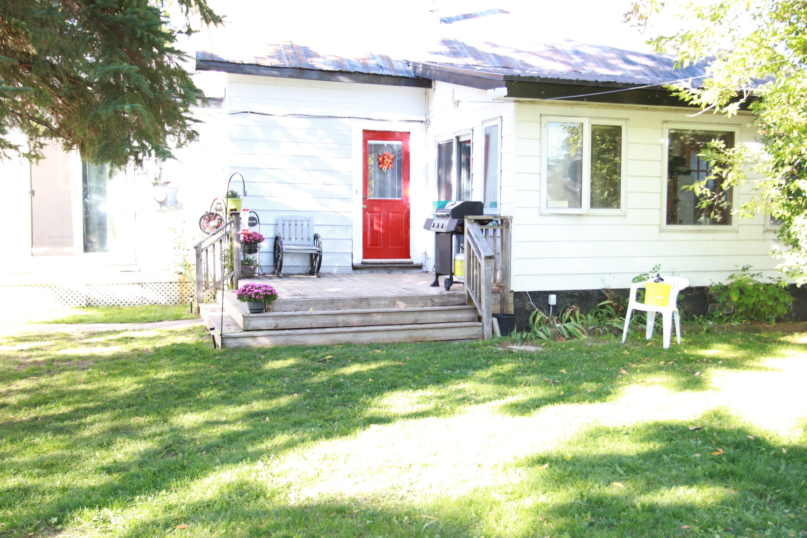 Welcome to this charming 1 1/2 story home with history and character! Once a one room schoolhouse, it has been thoughtfully converted to a 3 bedroom home with loads of potential. The main floor features an inviting open-concept living room and kitchen, a spacious primary bedroom, a 4 piece bathroom with recently installed tile, a versatile second bedroom or office, sunroom and a welcoming foyer with newly installed tile. |the second floor offers two adjoining bedrooms, connected by a doorway. One of the rooms is currently being used for storage, providing flexibility for your needs. With a little vision, the upper level could be transformed into one spacious primary suite or as a cozy family room. House is wired for a generator with a 100 amp generator panel and has an upgraded main electrical panel to 200 amp. With a detached 2 car garage all nestled on a rural 1/2 an acre lot.