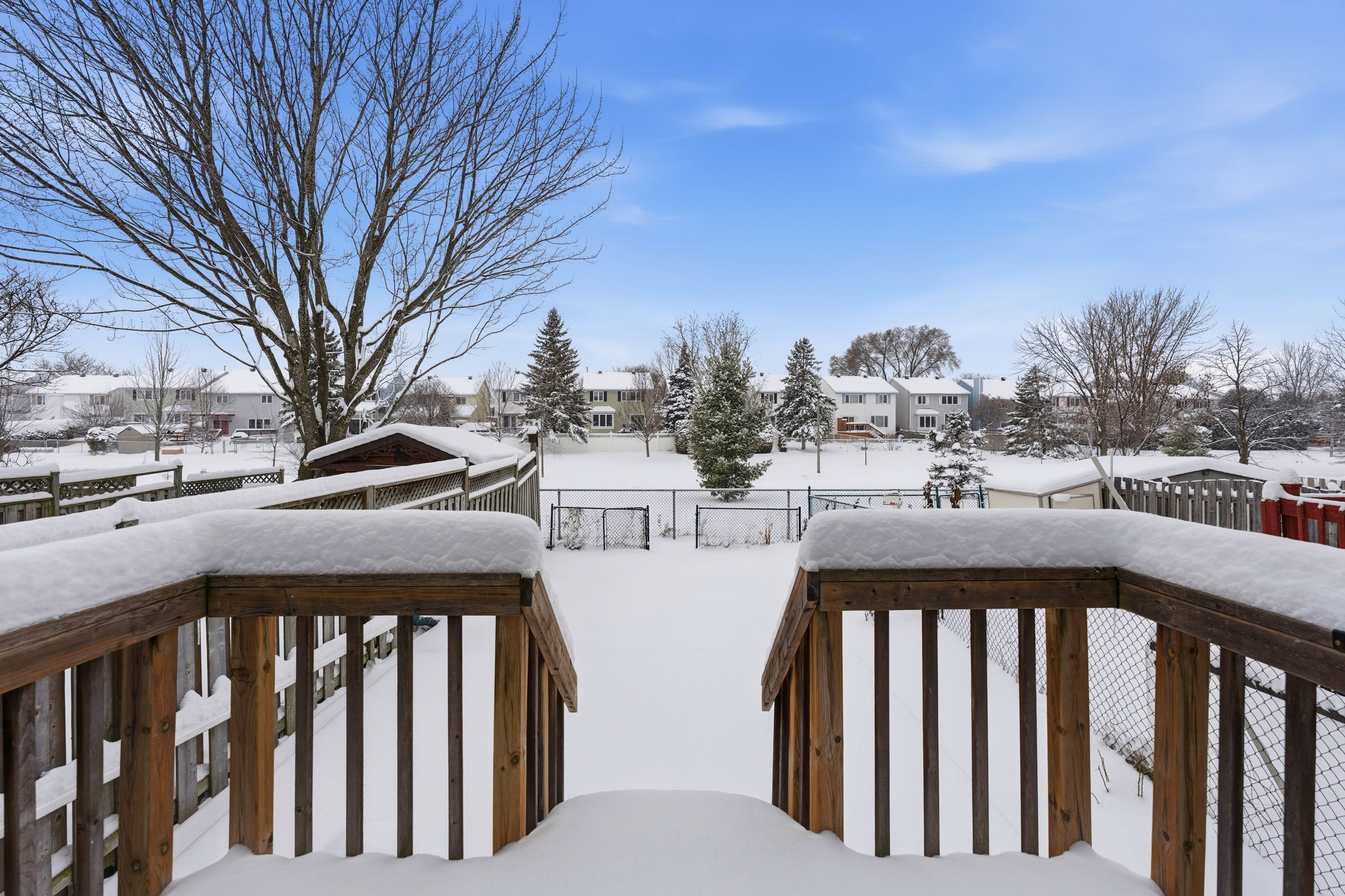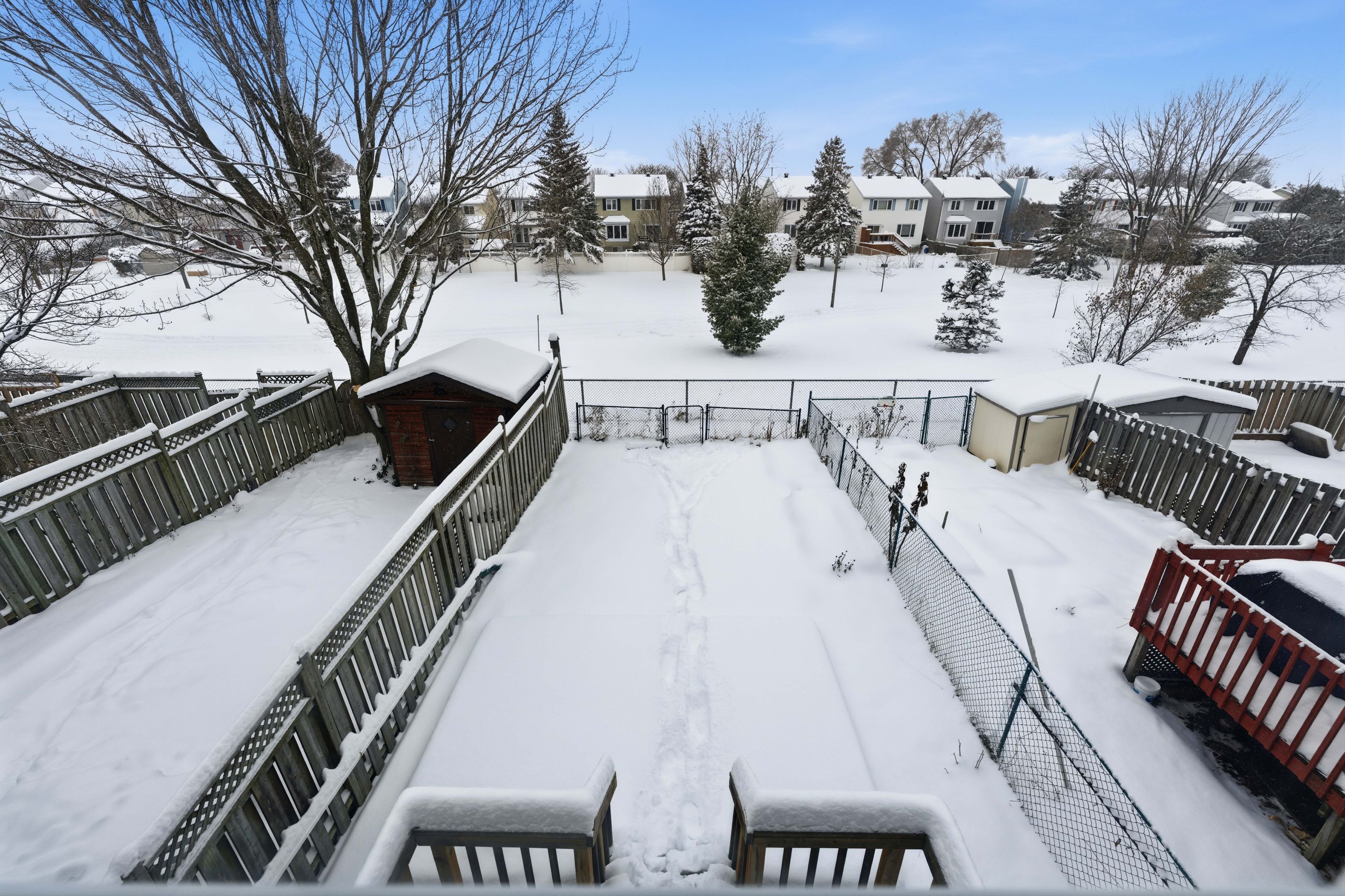 • Large fenced backyard with no rear neighbors, ideal for outdoor activities.