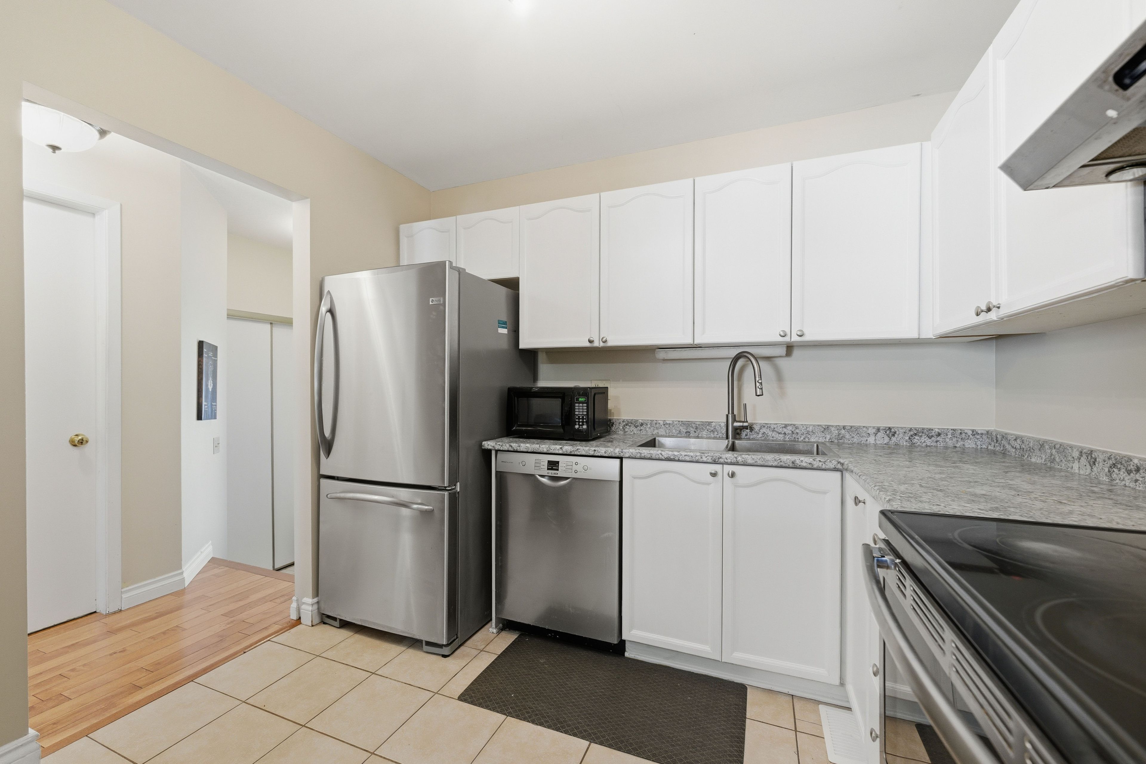 • Updated kitchen with stainless steel appliances and ample counter space.