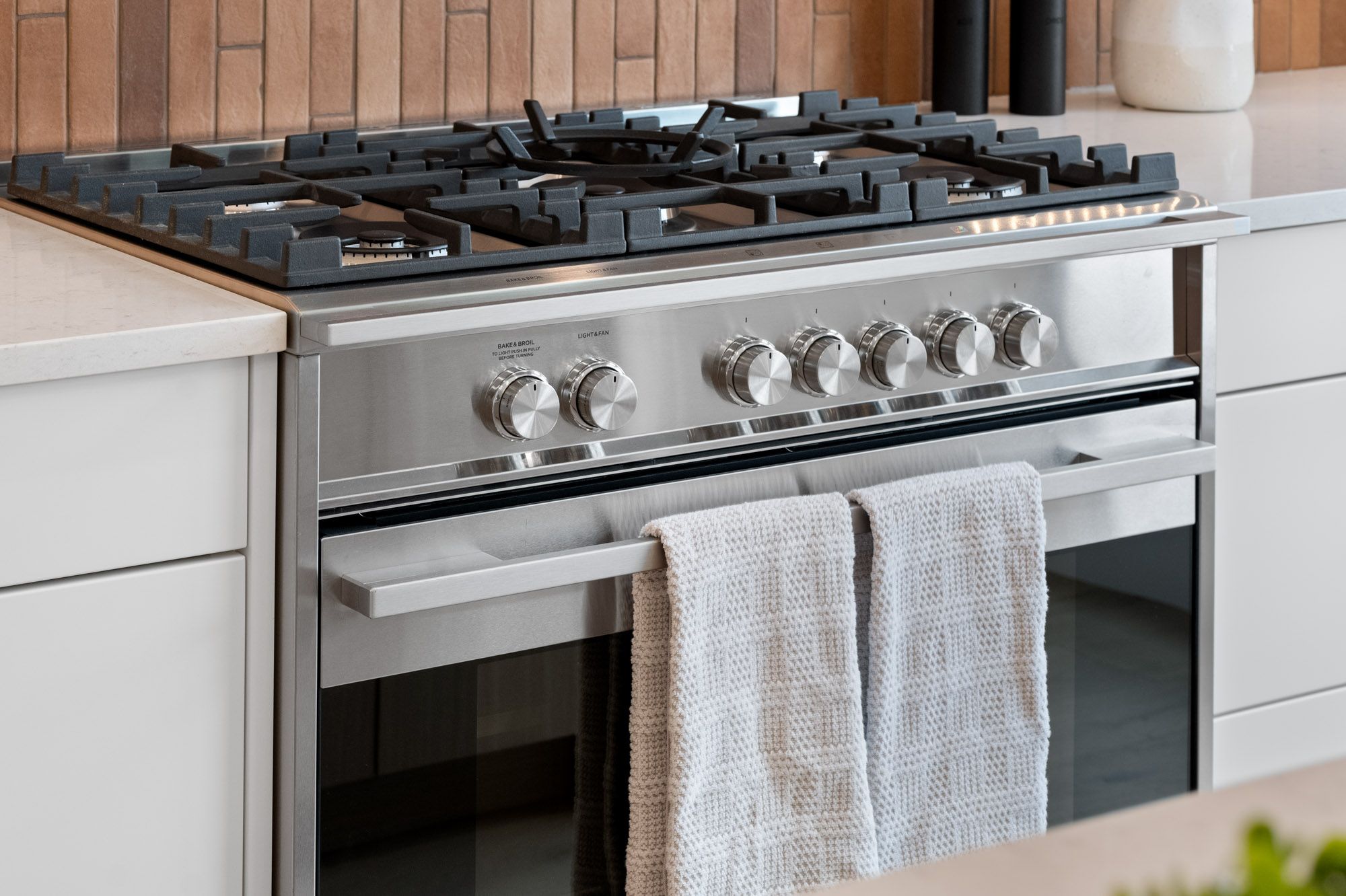 • Modern kitchen featuring quartz counters, walk-in pantry, and gas/electric stove hookups.