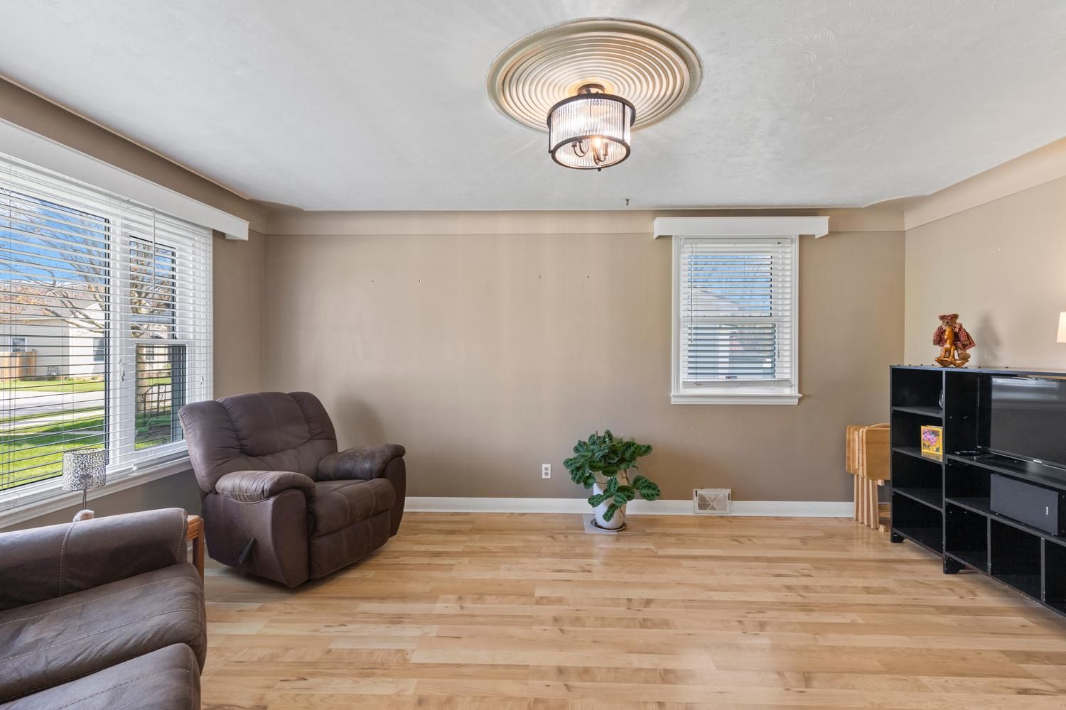 • Three bedrooms and two bathrooms for comfortable main floor living.