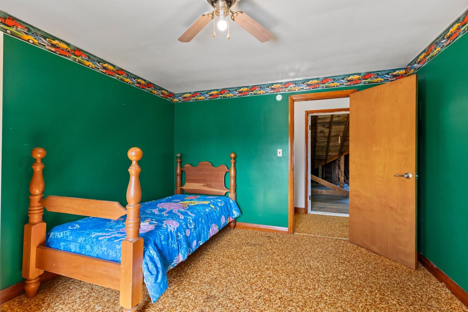 • Unique loft space for home office or playroom with future development potential.