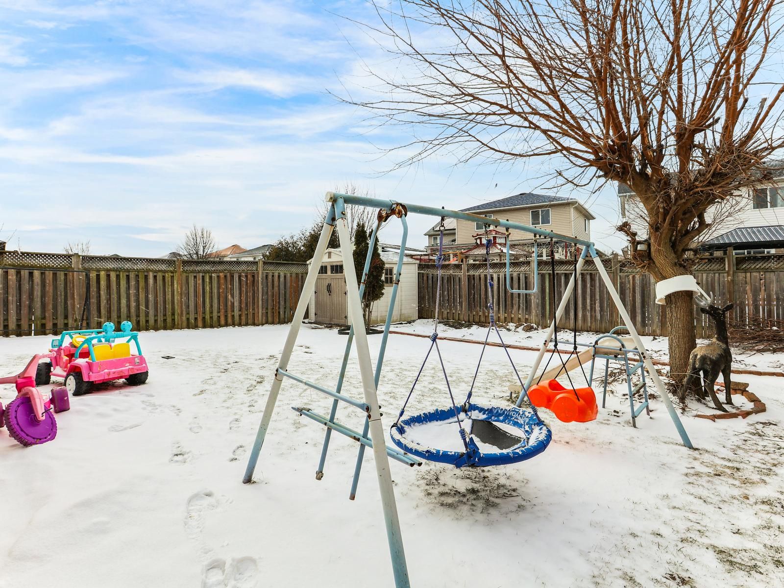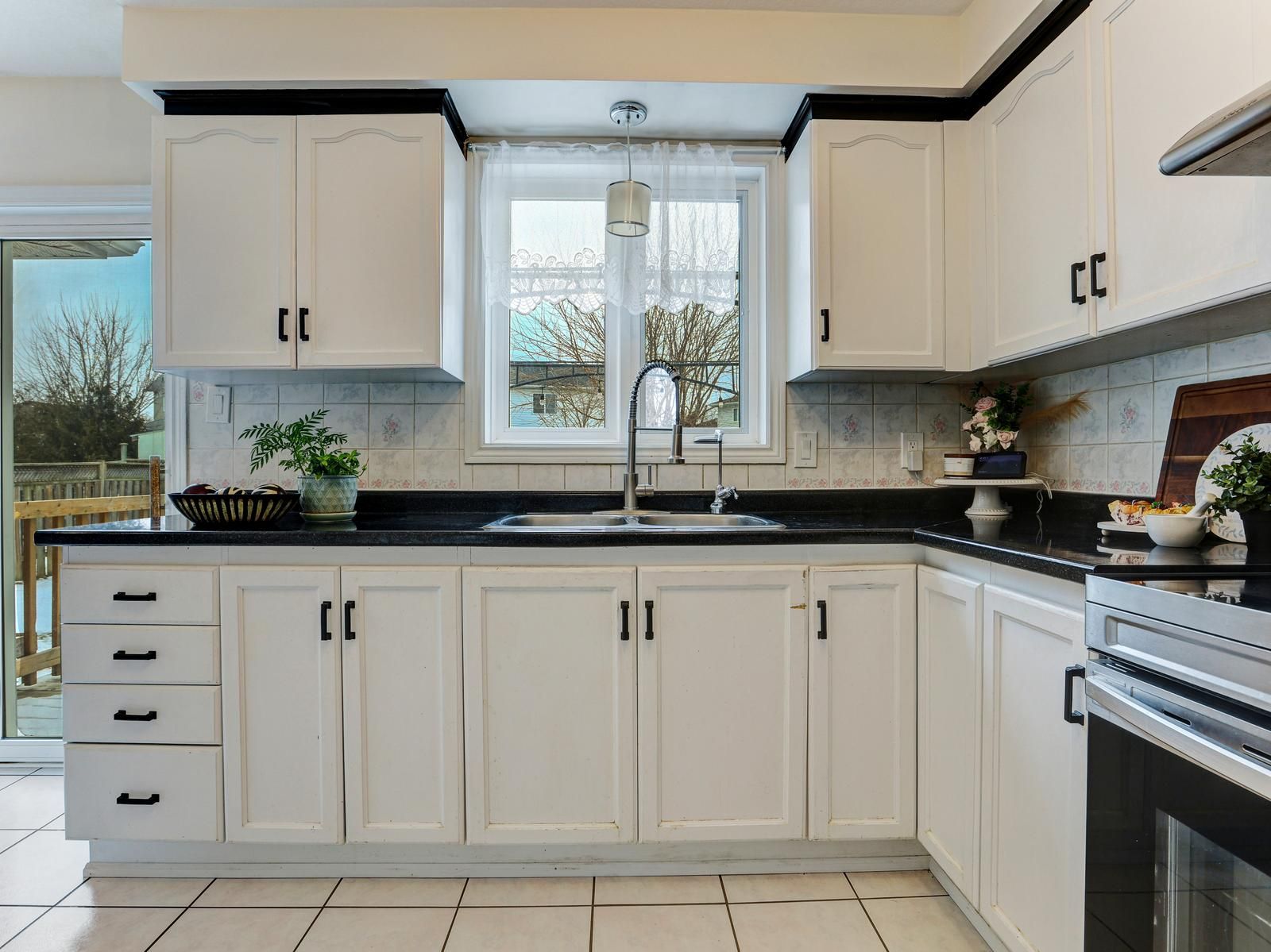 • Large deck overlooking a deep backyard, perfect for outdoor gatherings.