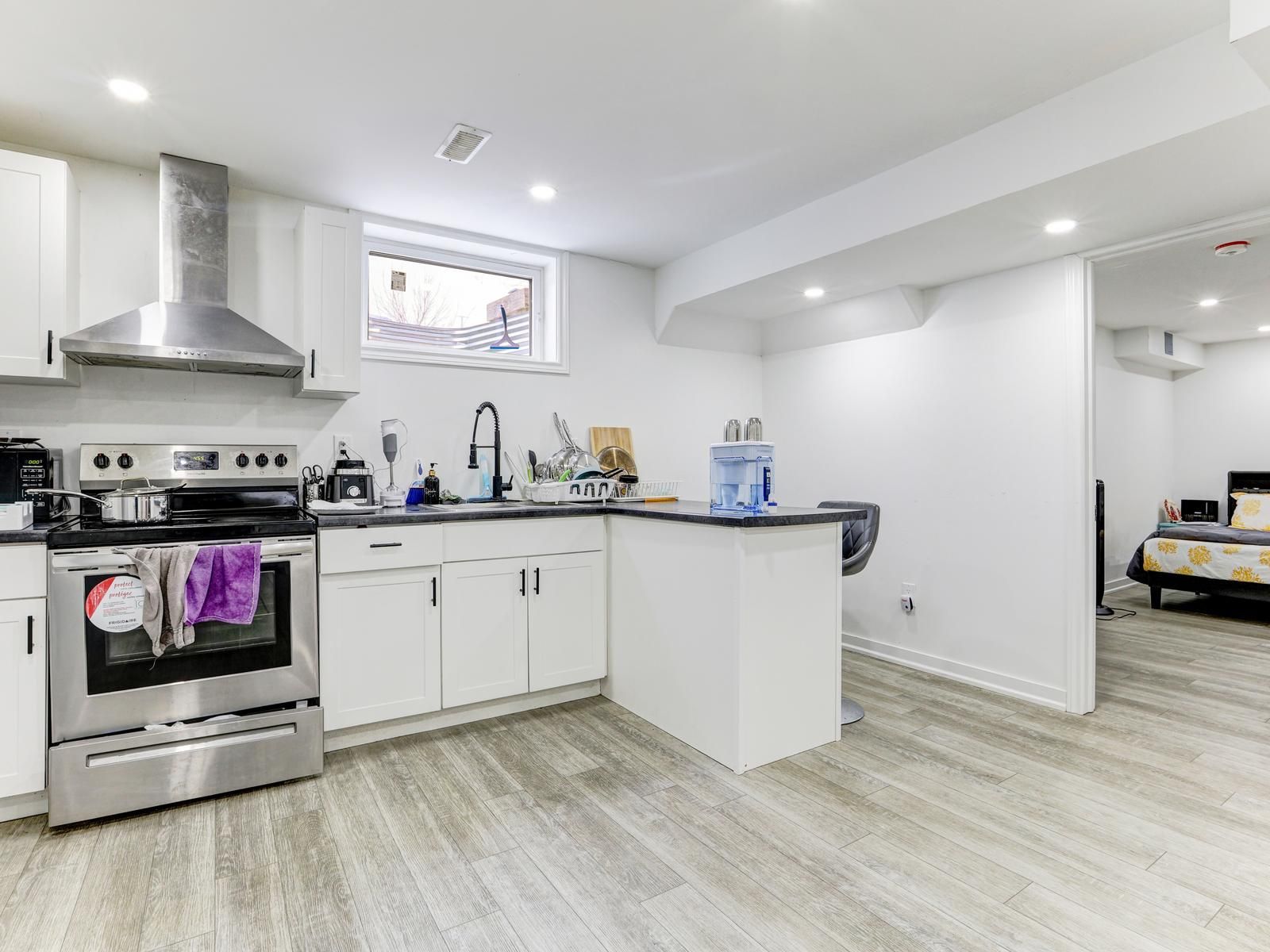 • Brightly renovated home with modern design and open-concept living space.