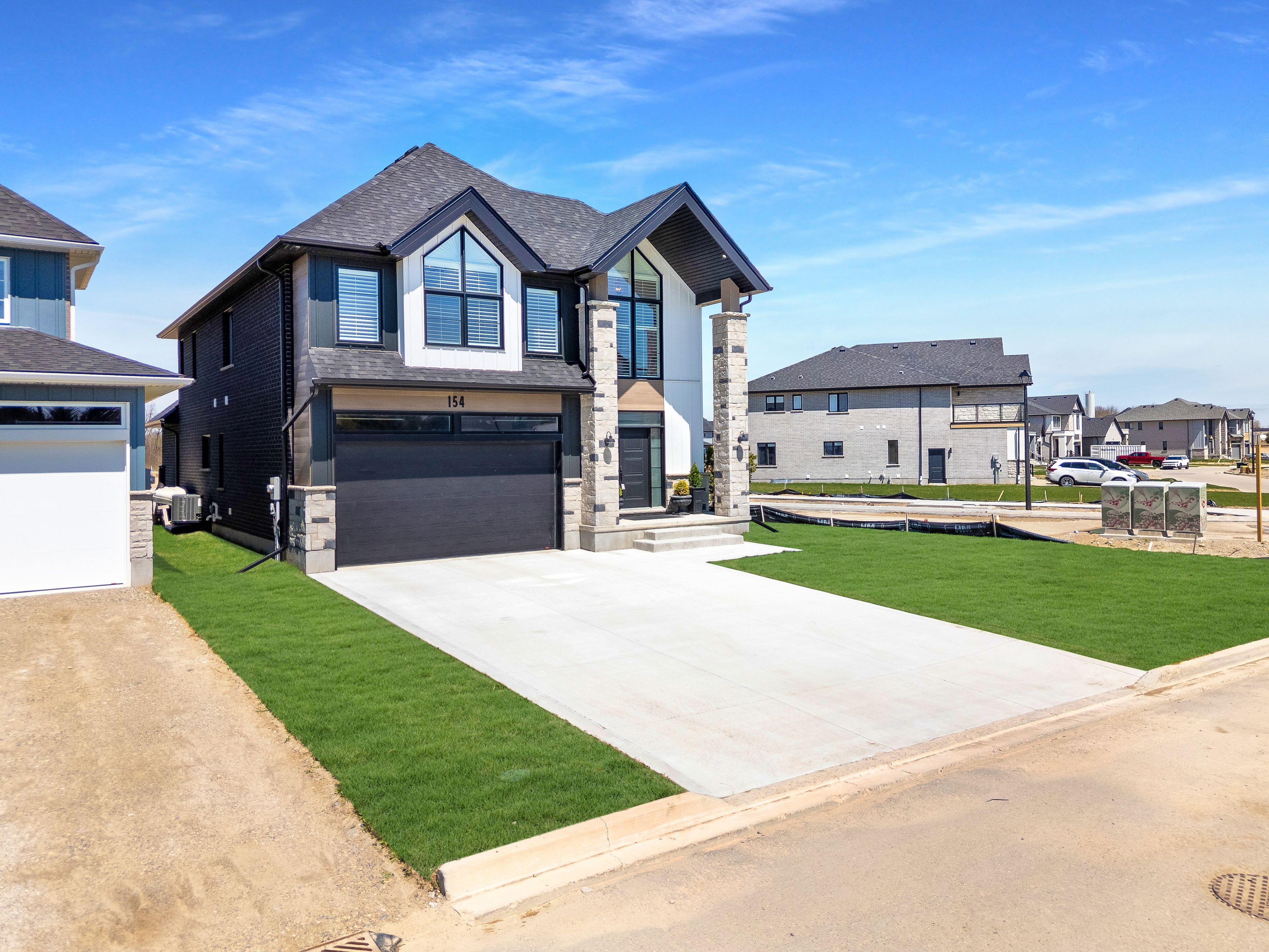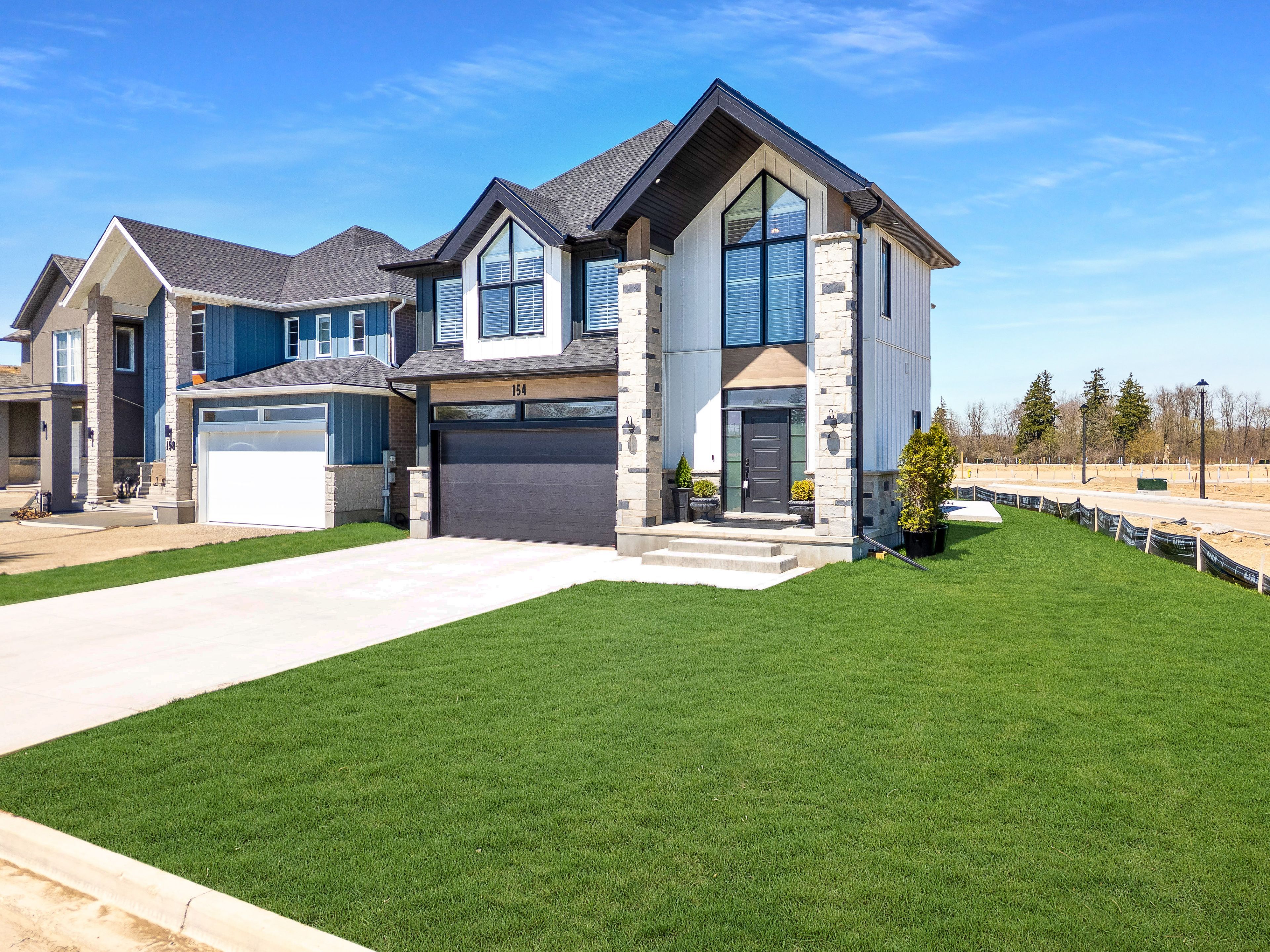 Welcome to 154 dempsey drive! At over 2,500 square feet, this 4-bed, 3. 5-bath home is packed with standout features from its striking curb appeal to the custom interior details that set it apart. Check out our top 7 reasons why you'll want to make this house your home! #7: prime stratford location - tucked away in knightsbridge - a quiet, family-friendly community in one of stratford's most desirable pockets, you're just minutes from schools, parks, downtown shopping, and the world-renowned stratford festival theatre. #6: stunning curb appeal - with a rich blend of brick, stone, and board-and-batten siding, the lionel stands out for all the right reasons. #5: smart main floor layout - the carpet-free main level features engineered hardwood and tile flooring, with thoughtful details like a powder room, main floor laundry with built-in shelving, 9-foot ceilings and two walkouts to the backyard. #4: standout kitchen - the kitchen brings it all together form, function, and a serious dose of flair. You'll love the statement island, shaker cabinetry, ceramic subway tile backsplash, quartz countertops, and sleek stainless steel appliances. There's even a dedicated coffee station or bar with quartz countertops and open shelving. #3: the backyard - both patio doors lead out to the sun-soaked backyard. Whether you're grilling on the concrete patio or sipping your morning coffee, you've got room to breathe, relax, and entertain. #2: bedroom suites - upstairs features four large bedrooms, including a show-stopping primary suite with dual vaulted ceilings, oversized windows, a walk-in closet, and a 5-piece spa-inspired ensuite. One additional bedroom features its own 4-piece en-suite, while the other two share a beautiful 5-piece main bath. #1: room to grow - the unspoiled basement offers over 1,200 square feet of potential, with a 3-piece rough-in already in place. Build out a rec room, gym, home theatre, or in-law suite the possibilities are wide open.