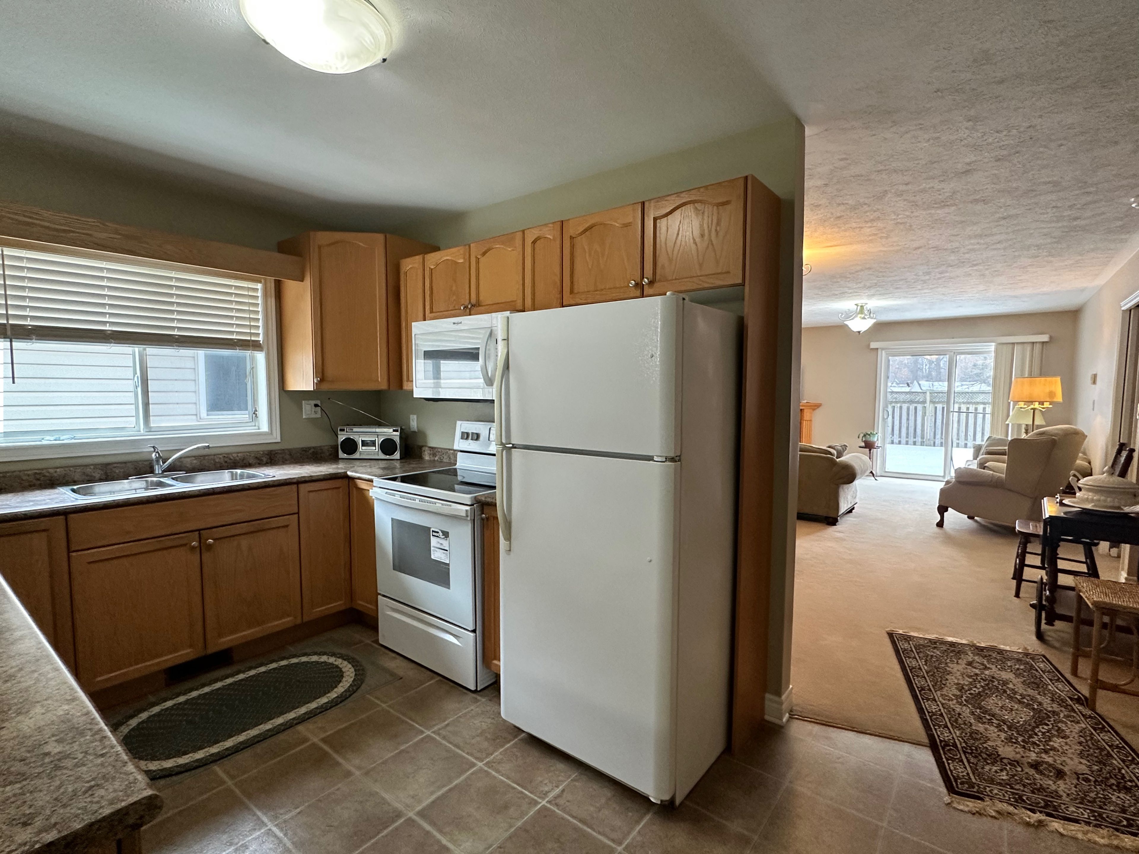 • Oversized kitchen featuring classic oak cabinetry and included appliances.