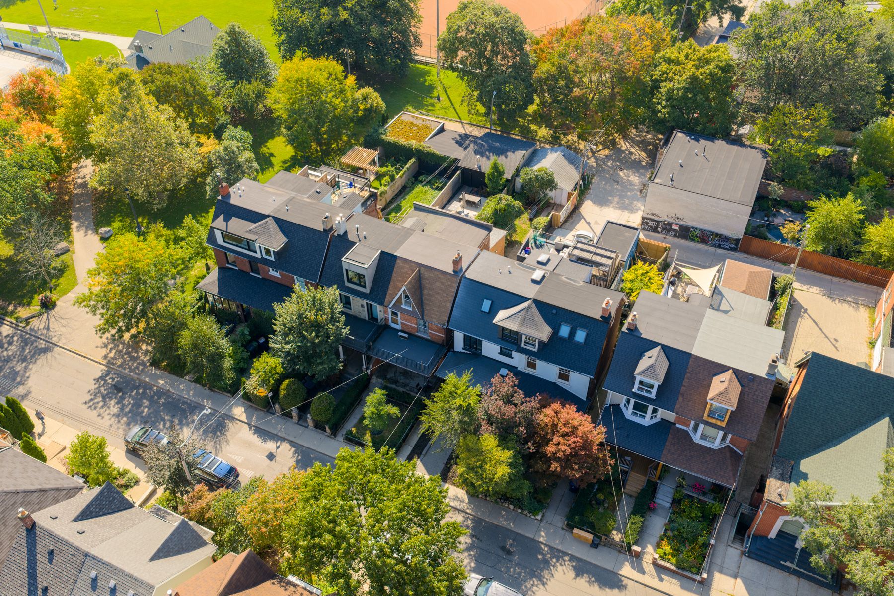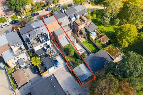 Perched on a quiet one-way street, 154 gore vale avenue is one of only four homes adorned with a double garage accessed via a rear laneway adjacent to trinity bellwoods park. This is not a "steps to" location-the property physically abuts the park, delivering uninterrupted park views at the rear, with open city skyline views to the front. Surprisingly wide and exceptionally long, the home sits on a nearly 140-ft deep lot, with a sprawling garden in the back yard, and over 21 foot wide rear. Positioned on the west side of gore vale avenue, this century home offers long-term value that simply does not exist elsewhere in the neighbourhood. The property features a 2-storey brick residence with a full, finished walkout basement, thoughtfully updated, while preserving much of its original character. For families, this is a rare opportunity to live in as is, or to renovate and customize a true forever home directly on toronto's most iconic park, tailoring the layout and finishes to a long-term lifestyle while knowing the location itself can never be compromised. For builders and developers, this represents a guaranteed west-side address, where park proximity, walkability, and enduring desirability are already established value and assure a strong resale client base. The main floor is traditionally laid out and well-proportioned, anchored by a wide family room and adjacent dining area, a large family-sized kitchen, and a rear den with a walkout to the backyard and park. The upper two levels offer five large bedrooms, with front large terrace with cityscape views, while the third floor presents exceptional potential for conversion into a substantial primary suite with remarkable 360-degree views. Surrounded by the restaurants, boutiques, and cultural energy that define west queen west, 154 gore vale avenue stands as a truly irreplaceable offering-whether envisioned as a bespoke family residence or a landmark redevelopment in one of toronto's most celebrated neighbourhoods.