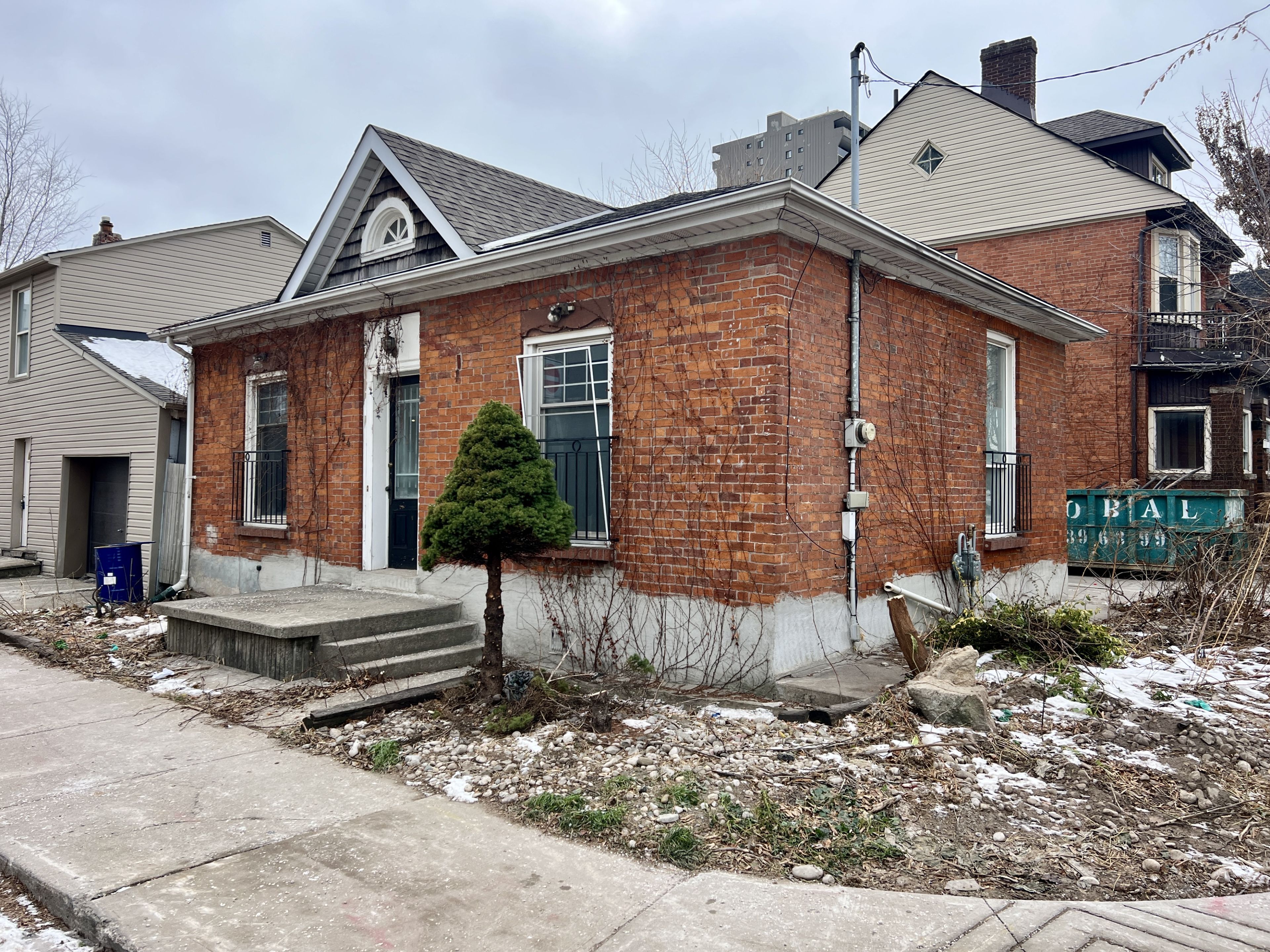 Positioned on a high-visibility corner in the heart of hamilton's downtown core, this versatile property offers rare flexibility under d5 zoning, ideal for residential living among other mix uses. Set within walking distance to downtown, the hamilton go centre, st. Joseph's hospital, and the acclaimed dining along james street south, the location checks every box for convenience. Mcmaster university, highway 403, and key commuter routes are minutes away, with the future lrt corridor further strengthening long-term value. Inside, this charming property boasts a layout that offers 2 private rooms suitable as bedrooms or offices, an eat-in kitchen, and a refreshed 3-piece bathroom. The lower level provides ample storage, 2 parking spaces, laneway access, and a private yard. This generously sized land parcel, spans an approx. 0. 45 acres across combined lots, and presents meaningful redevelopment or hold potential in one of hamilton's most walkable and dynamic neighbourhoods.