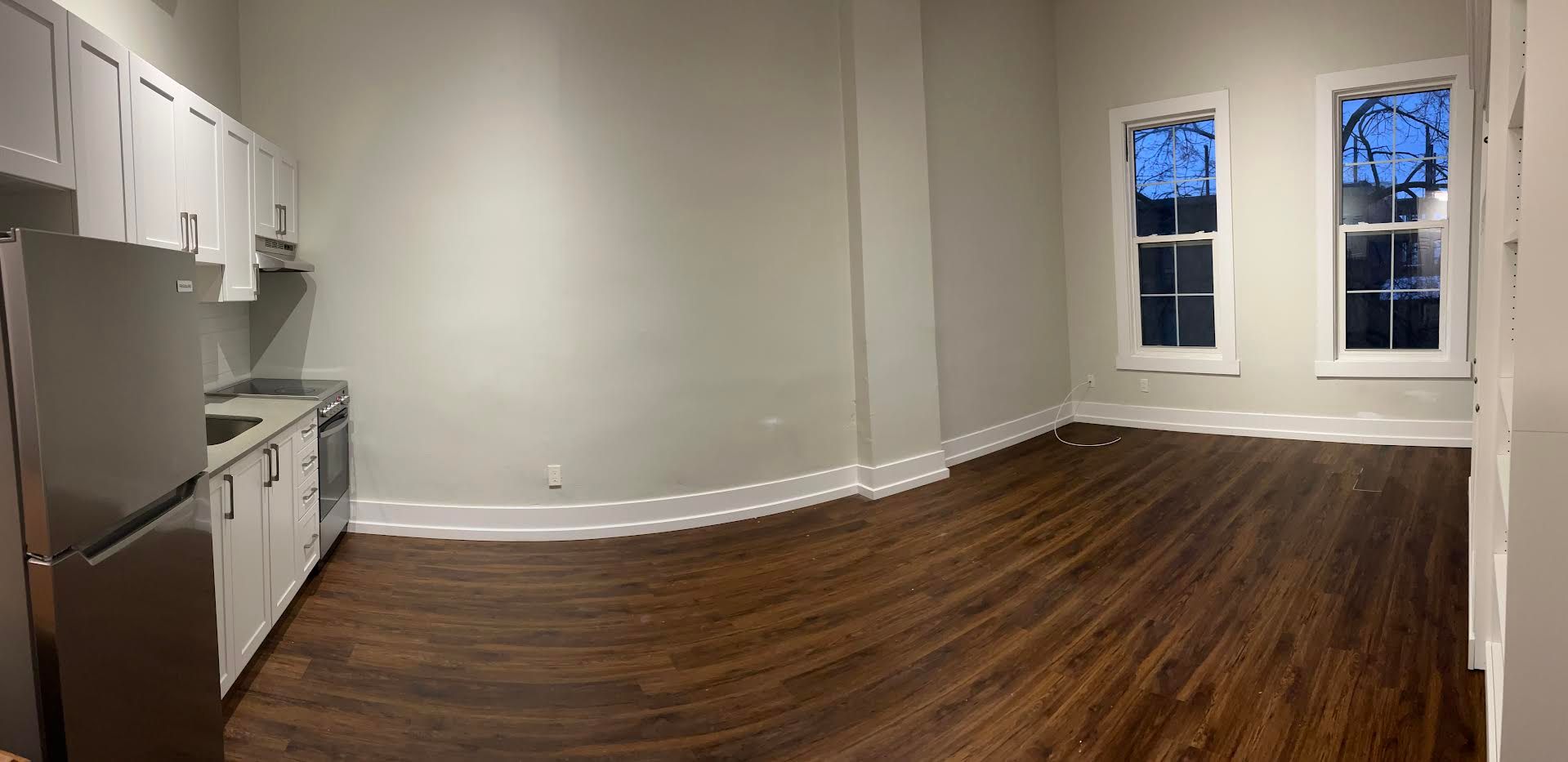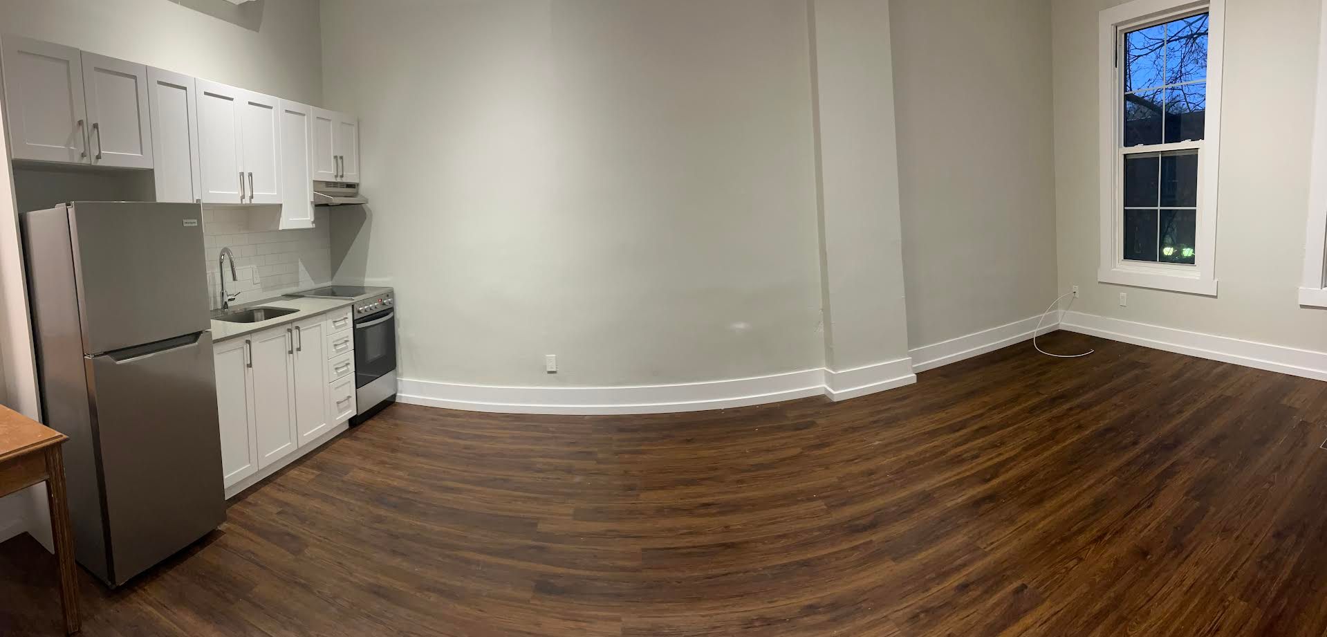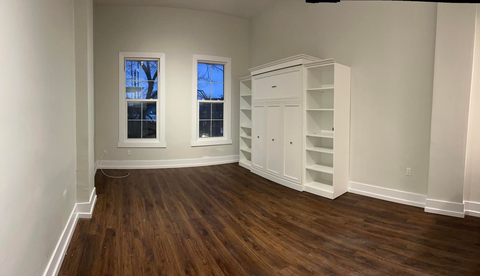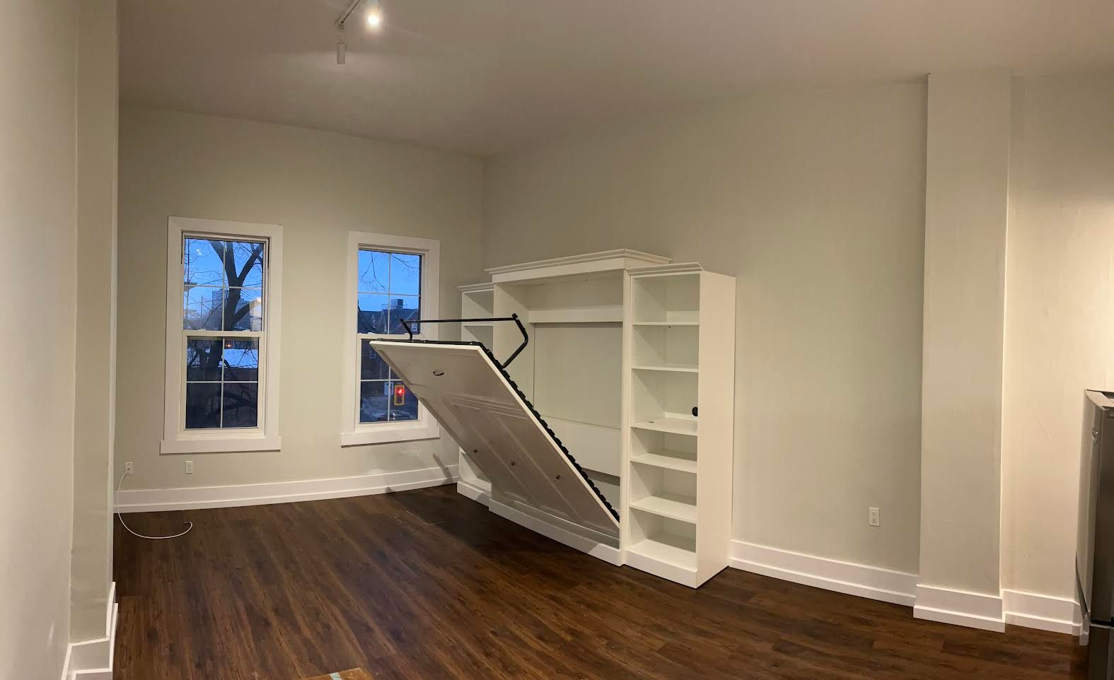 • Open-concept layout with a spacious living room and Murphy bed.