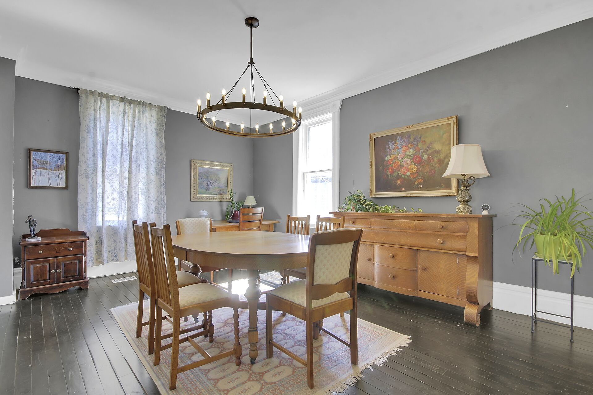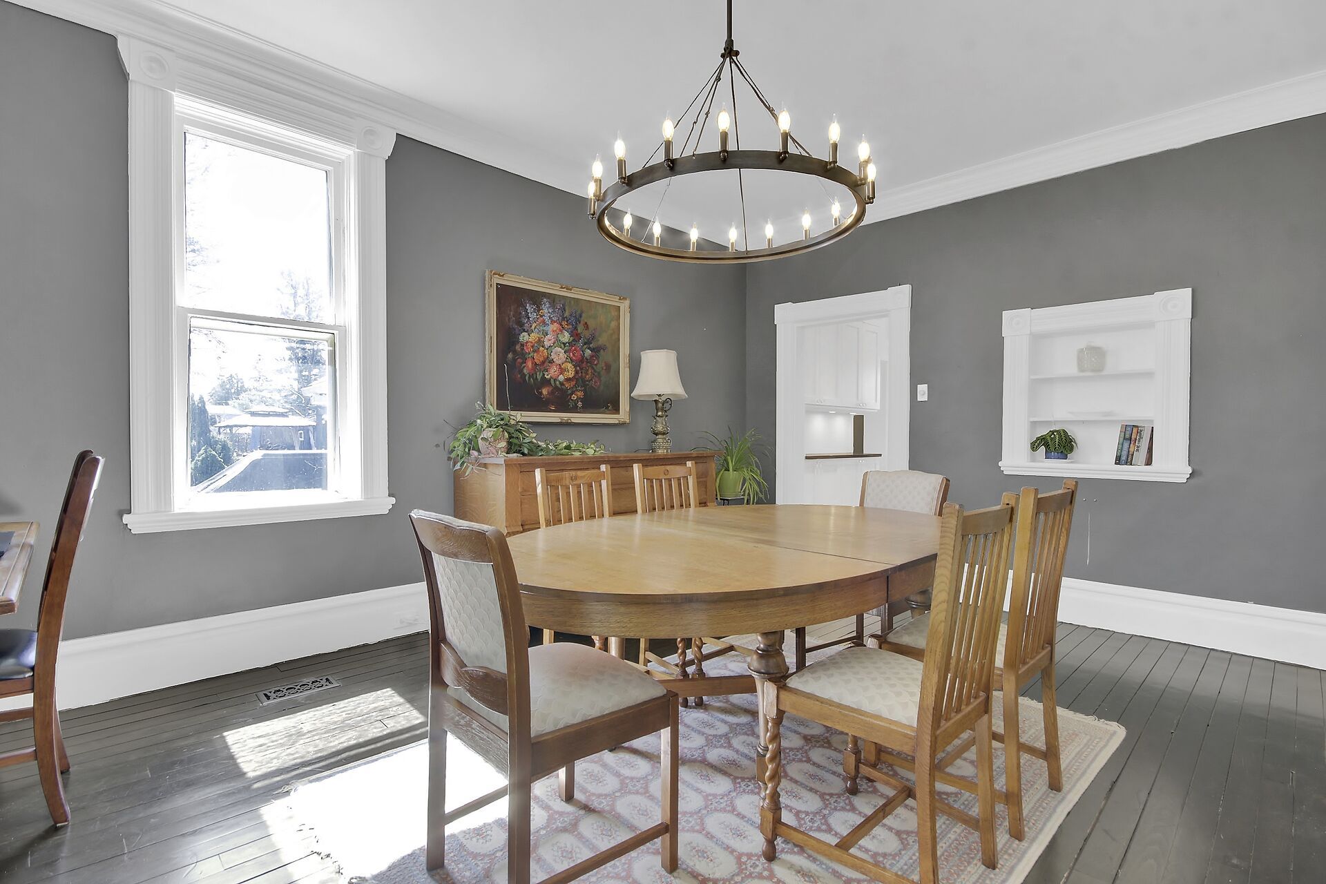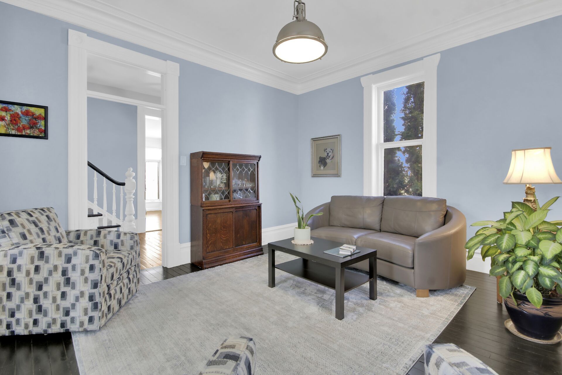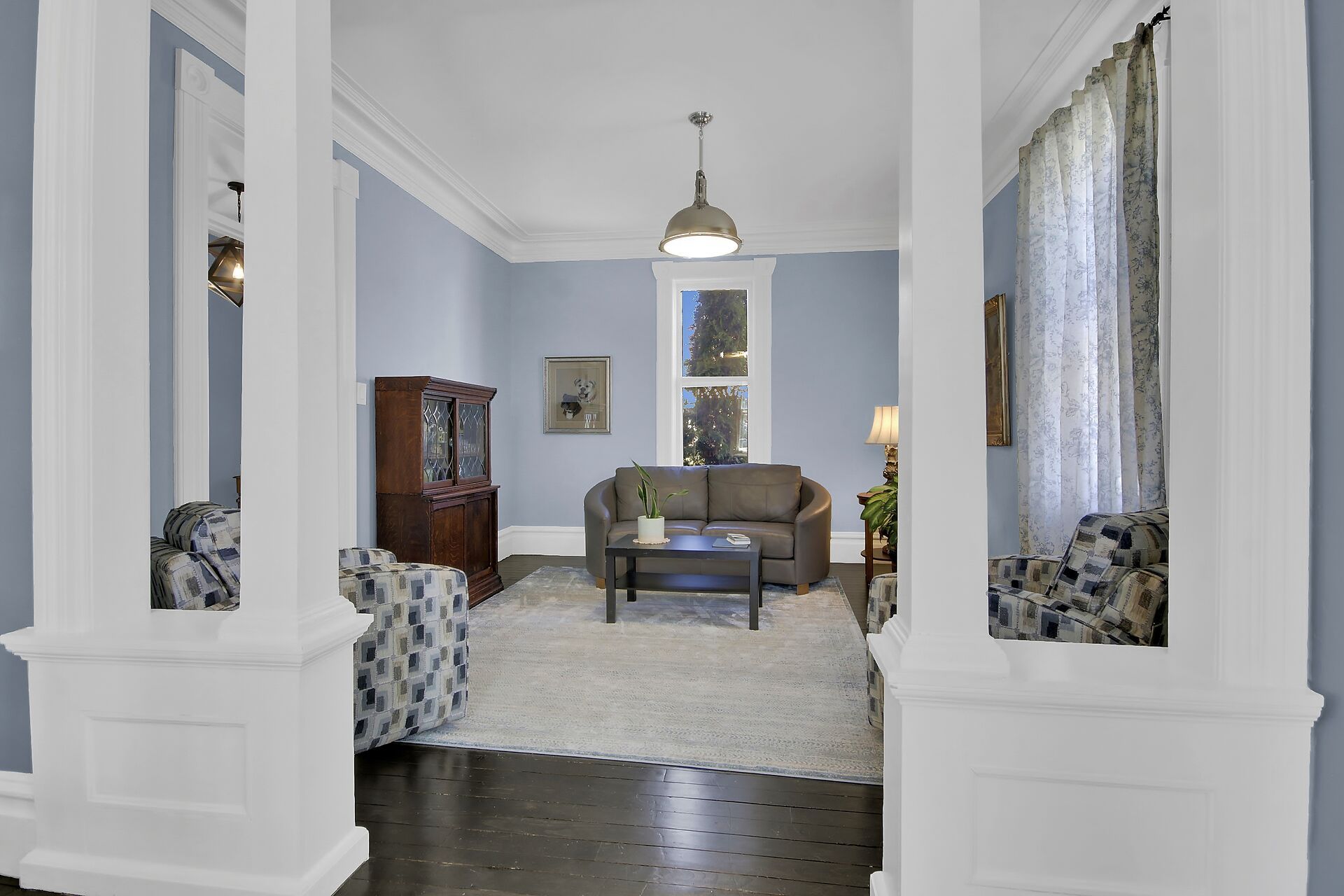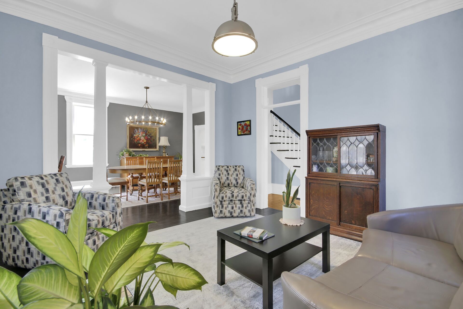 • Spacious living and dining rooms with rich architectural details.