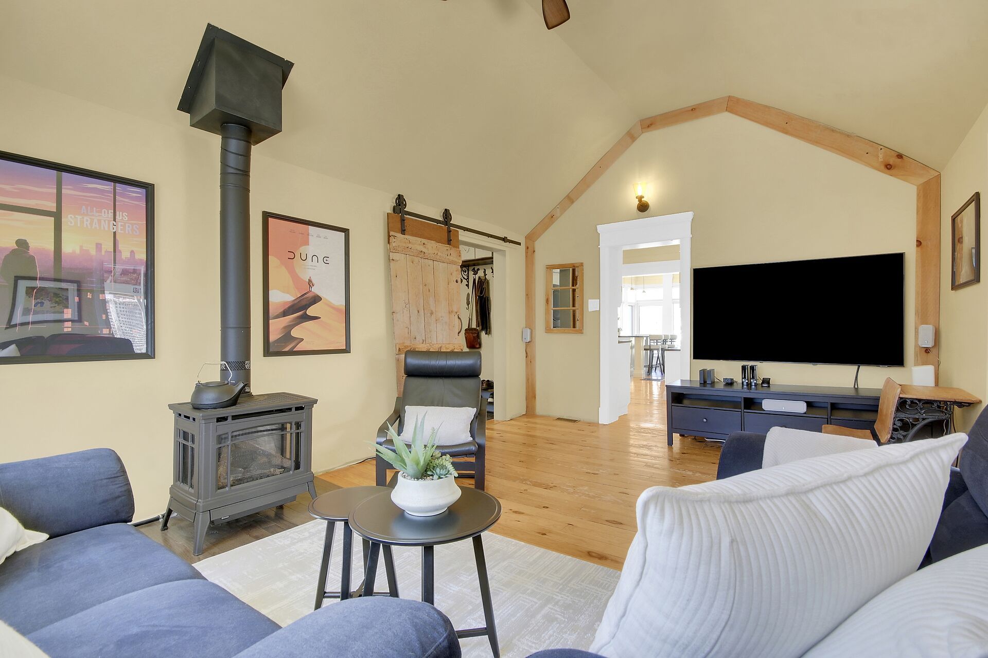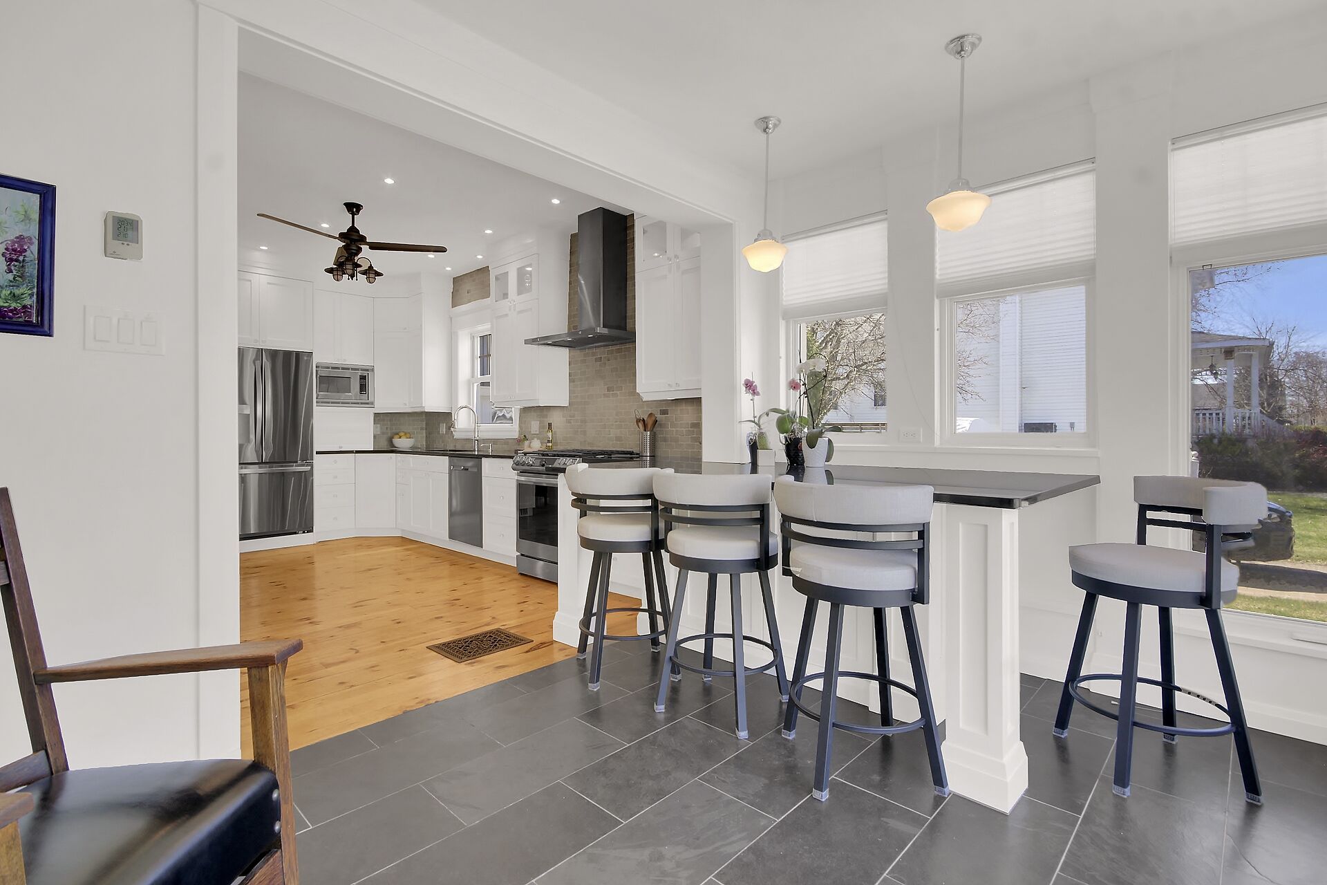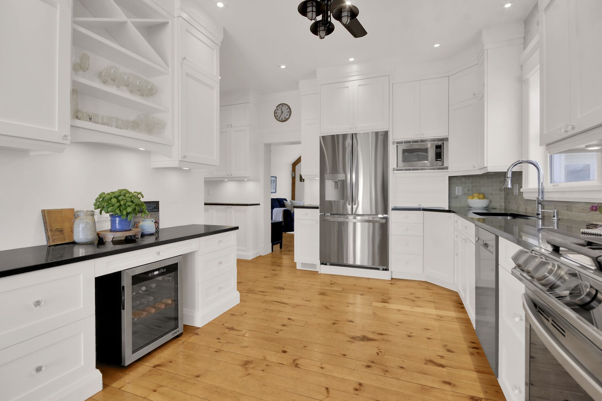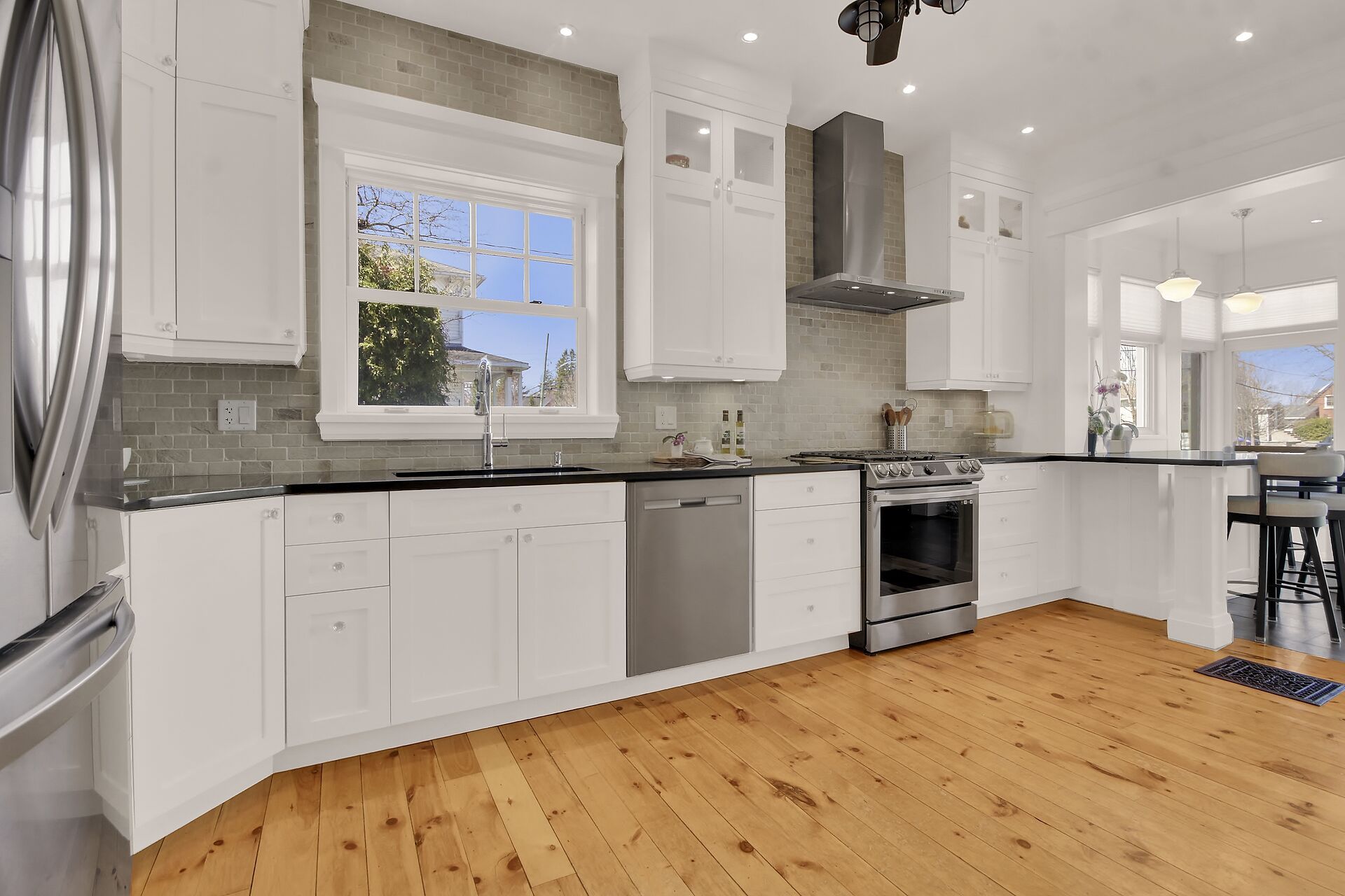 • Chef-style kitchen with quartz countertops and entertaining space.
