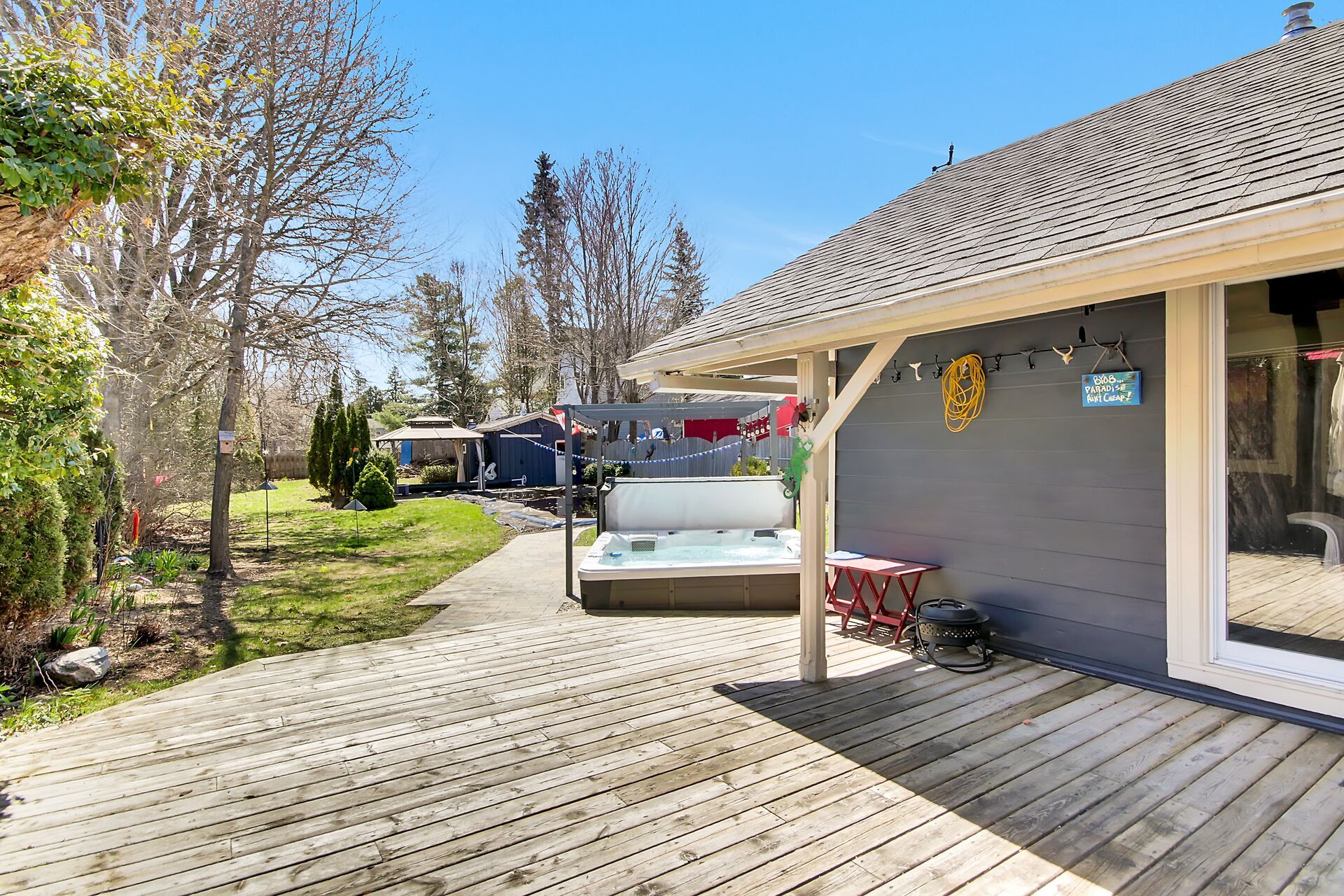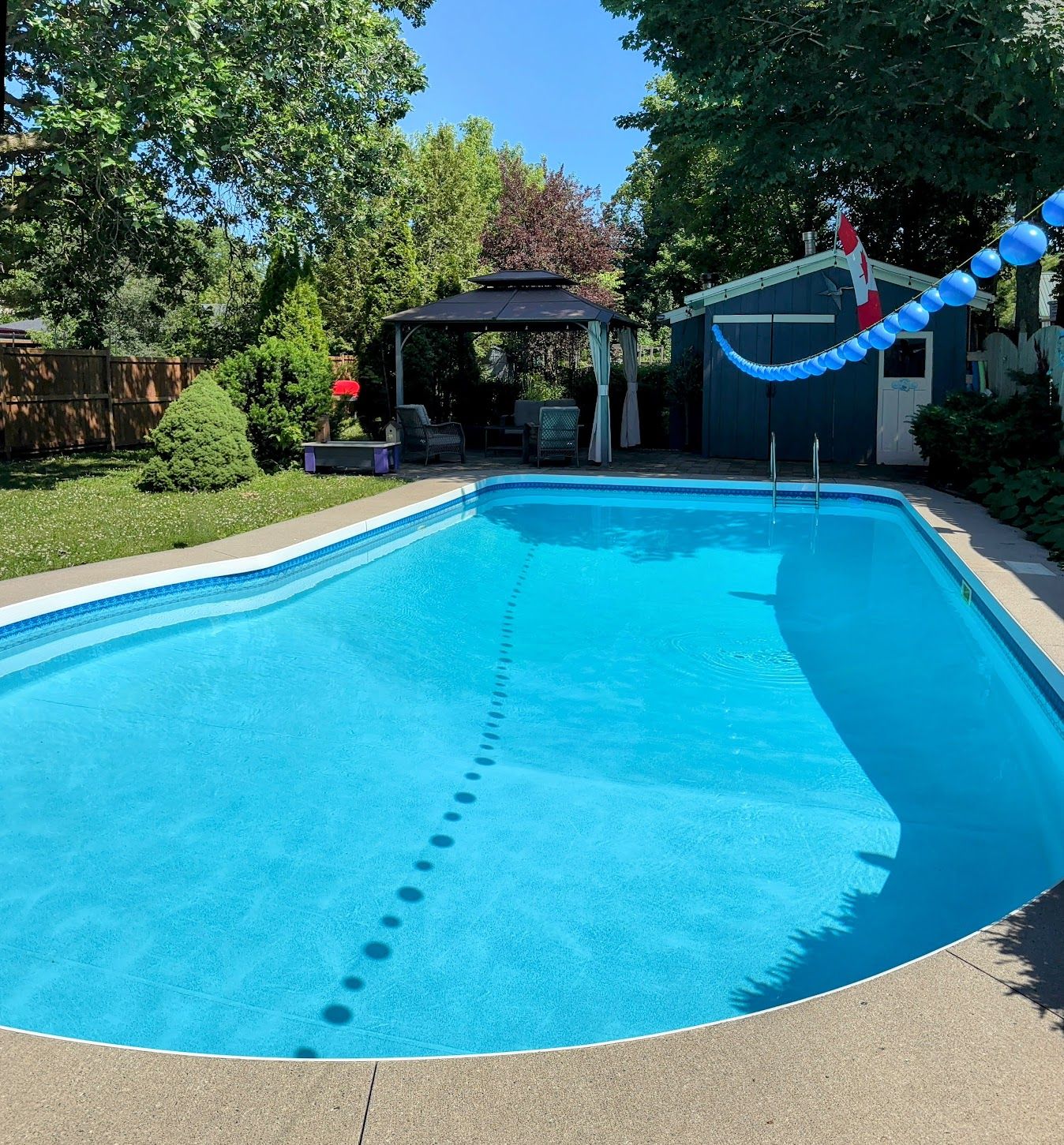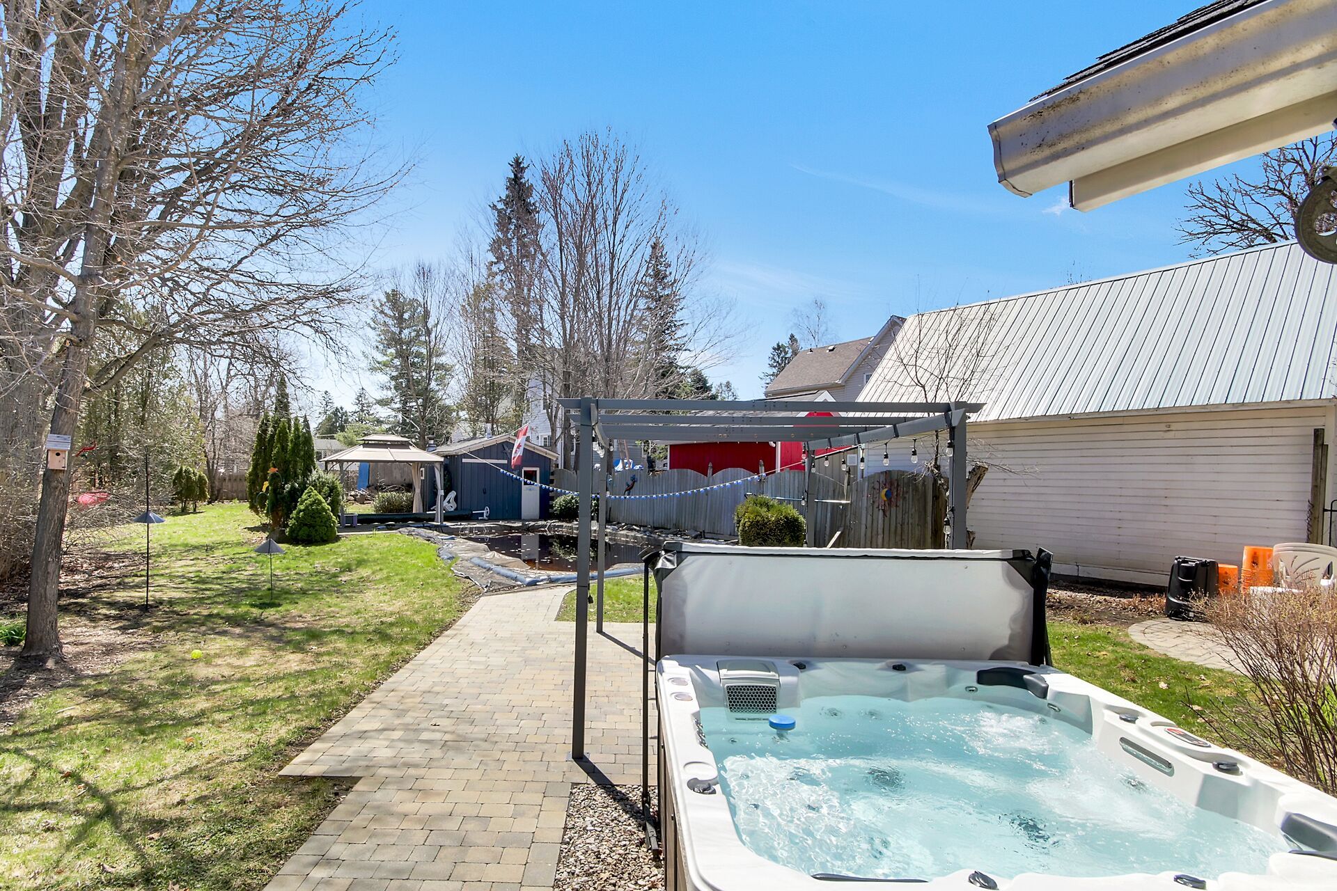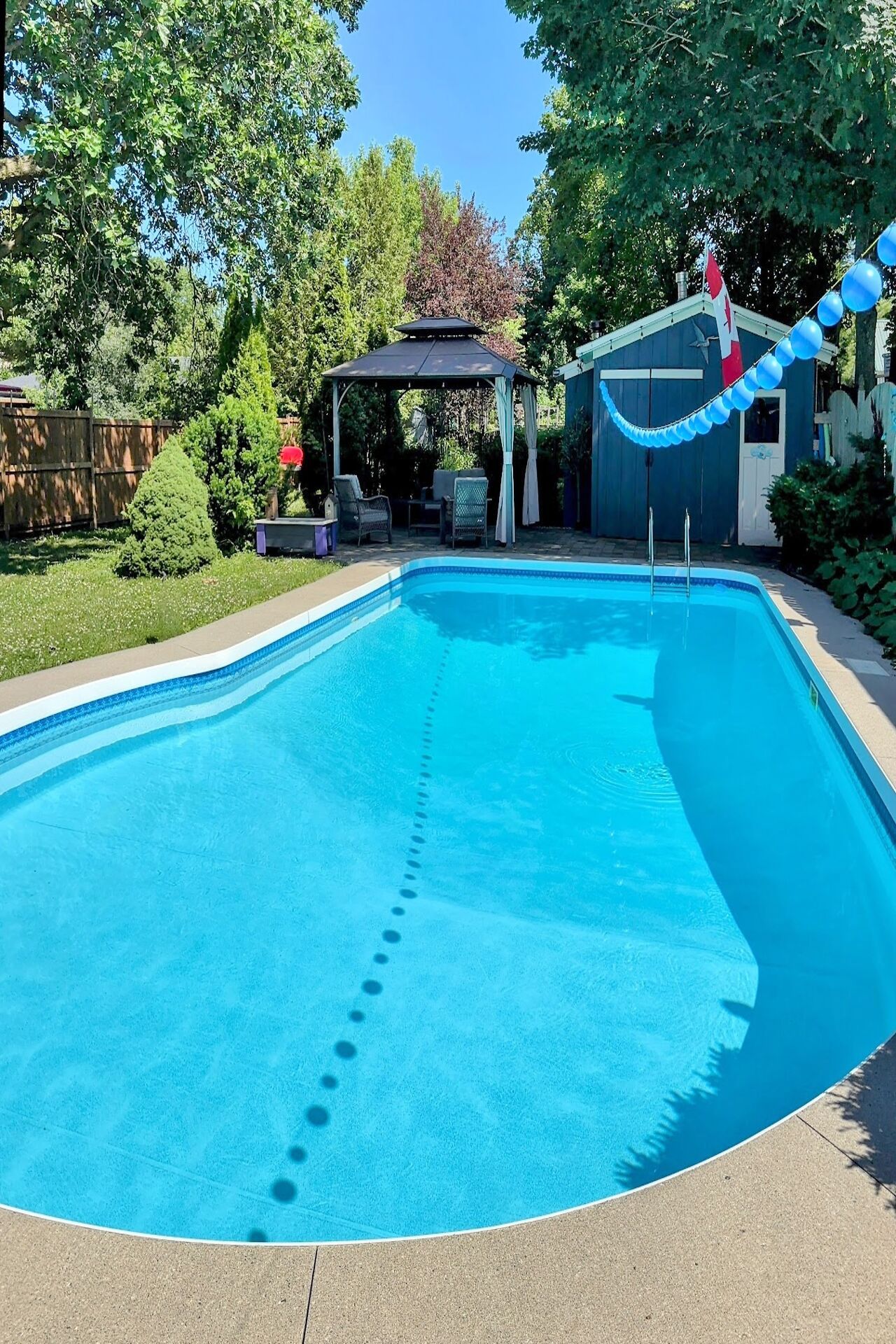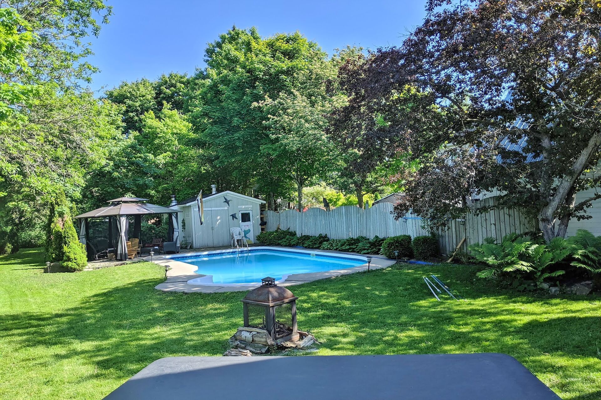 • Private backyard featuring an in-ground heated pool and gazebo.