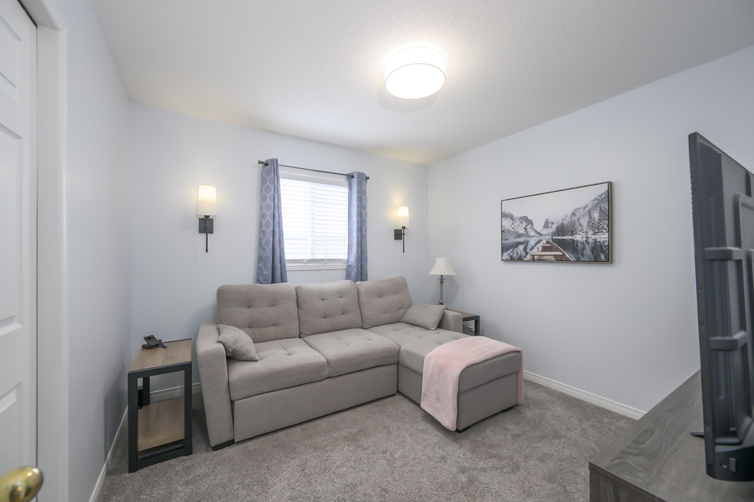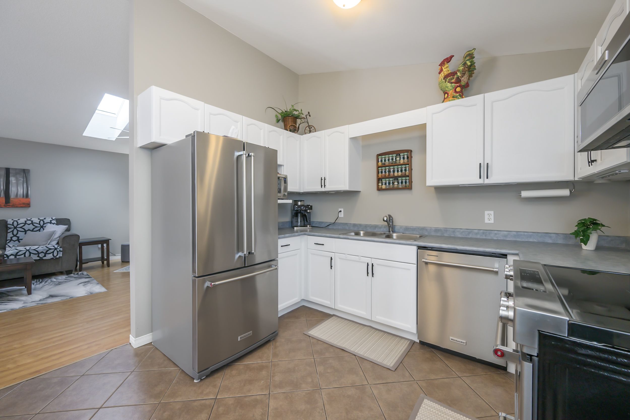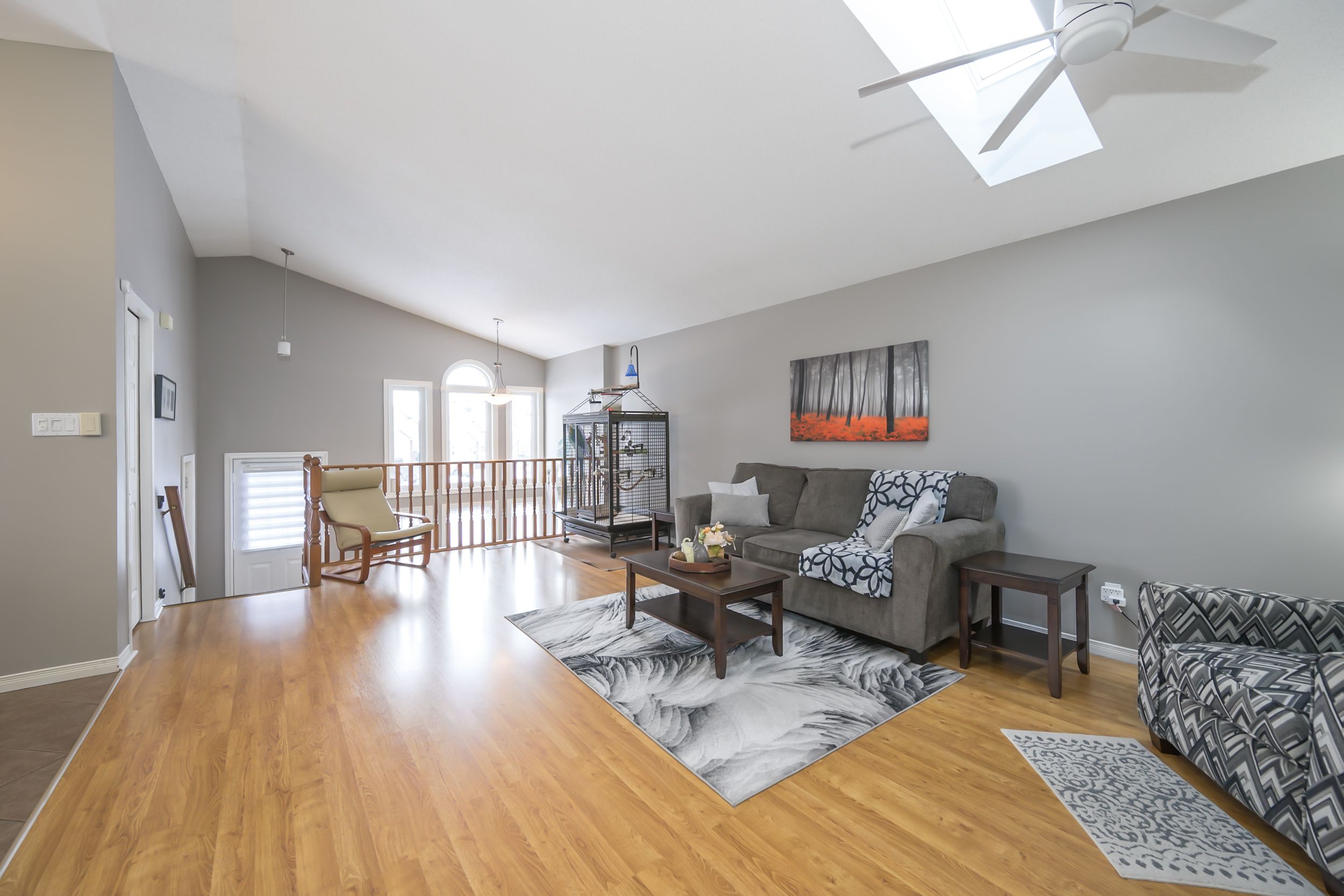 • Open concept living room with skylight for natural light.