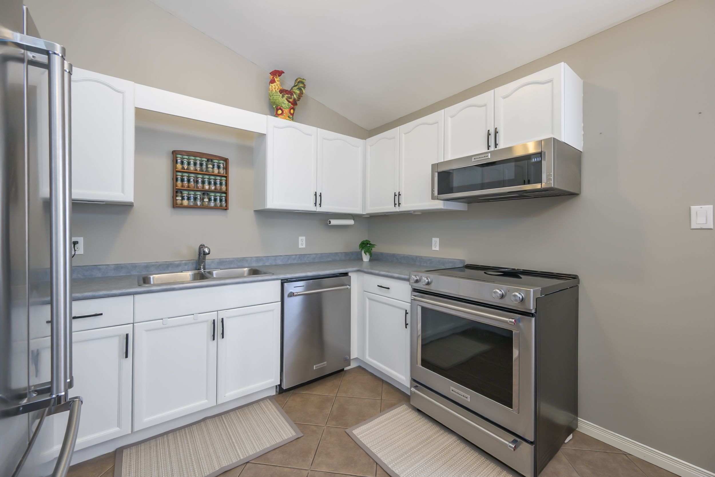 • Modern eat-in kitchen with newer Kitchen-Aide appliances.