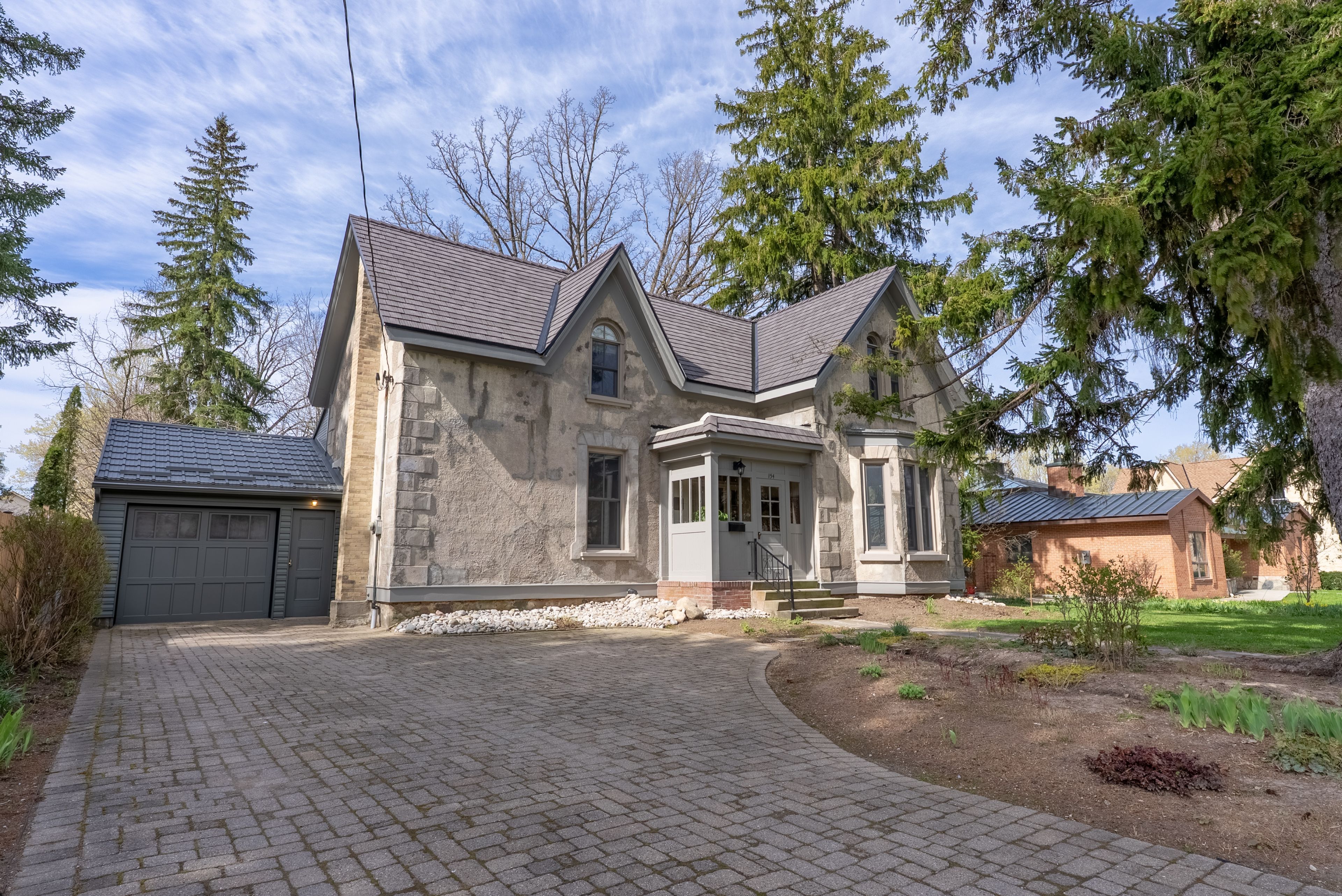 The mcgarva-fingland house awaits its next owners. Built in 1865 by john mcgarva of scotland, this mid-victorian heritage home blends history with everyday comfort in the heart of huron county. Arrive via the interlock driveway and step inside to the striking original curving walnut staircase. New porcelain tile leads into the fully updated main floor sunroom, featuring spray foam insulation, new windows, and refreshed finishes. The open living area showcases high ceilings, crown molding, original oak floors, and large windows that fill the space with natural light. French doors lead to the dining room with a cozy gas fireplace-perfect for hosting. The spacious kitchen offers ample cabinetry, a walk-in pantry, quartz/stone countertops, and modern stainless steel appliances. You will also find an updated full bathroom on the main floor. Upstairs, you'll find three generously sized, beautifully restored bedrooms, a four-piece bathroom, plus an updated sunroom that could serve as a fourth bedroom. Outside, enjoy a private backyard oasis with blooming gardens, manicured landscaping, and no rear neighbours. A mature oak tree-grown from an acorn brought from scotland by john mcgarva-adds a truly special touch. This home has been thoughtfully preserved and restored, with modern updates for comfortable living. Recent upgrades include an enviroshake roof (2024), natural gas furnace (2021), water heater (2020), water softener (2022), refinished hardwood floors, new porcelain tile, updated bathrooms, and an upgraded garage with metal roof, spray foam insulation, and premium siding. A rare opportunity to own a piece of history at 154 ontario street. Viewings by appointment only-book your private showing today and don't miss out on this gem.