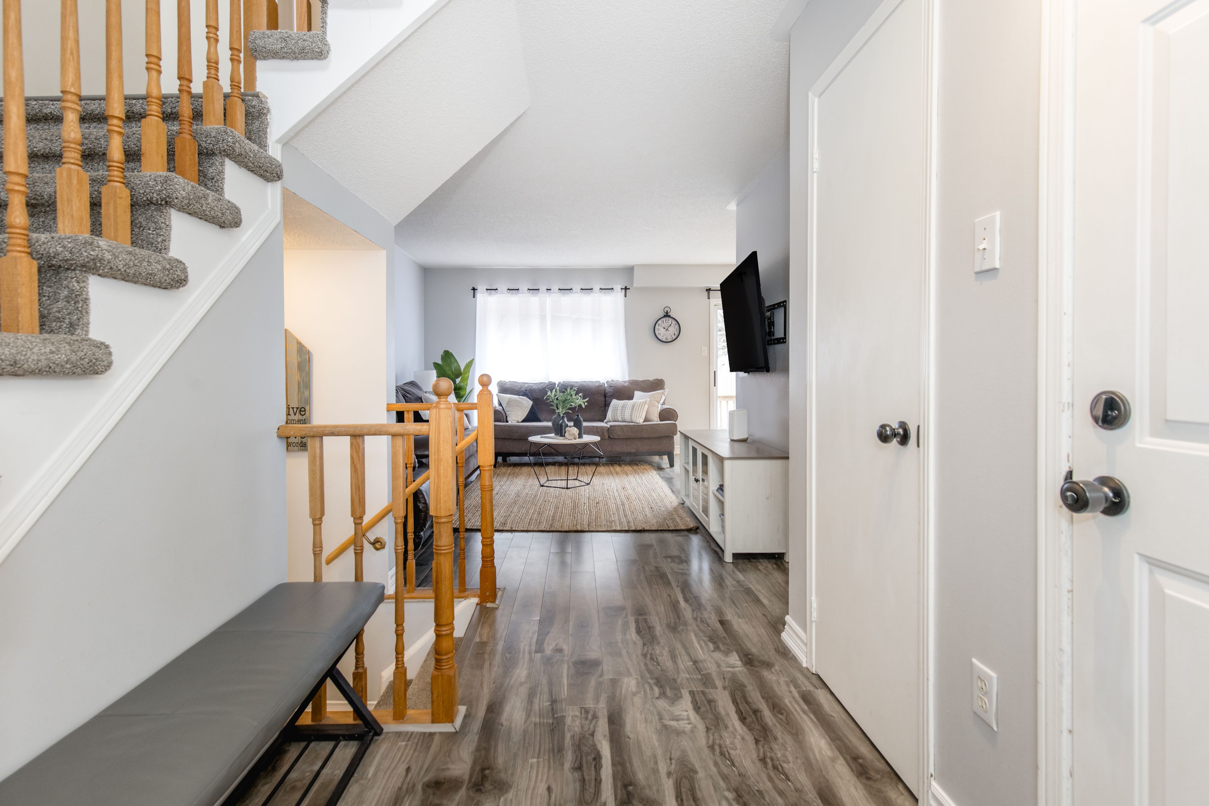 Welcome to 154 pickett cres, a place that feels easy to call home. Set on a quiet street in desirable south barrie, this beautiful townhouse offers comfort, convenience, and peace of mind with key updates already done. A new furnace and a/c purchased outright (2022), and a water softener, mean you can move in and simply enjoy. The kitchen flows nicely into the eat-in dining area, with views through the sliding doors out to the backyard - bringing in natural light and making everyday meals and entertaining feel connected and easy. Upstairs, you'll find two bright, spacious bedrooms and a full bathroom, perfect for first-time buyers, downsizers, or anyone looking for a low-maintenance lifestyle. The finished basement adds a cozy rec room, ideal for movie nights, a home office, or a quiet place to unwind, along with laundry and extra storage. Step outside to your fully fenced backyard with a deck made for summer evenings, bbqs, and time with friends and family. The attached garage features convenient loft storage, giving you that extra space every homeowner appreciates. Perfect for young families, you're within walking distance to two schools and nearby trails leading to huronia north park, ideal for outdoor time, play, and peaceful walks. Located just minutes from park place, costco, the sadlon arena, barrie's waterfront, and everyday essentials, plus quick access to hwy 400, everything you need is right here. Simple, comfortable, and move-in ready, this is a home you don't want to miss.