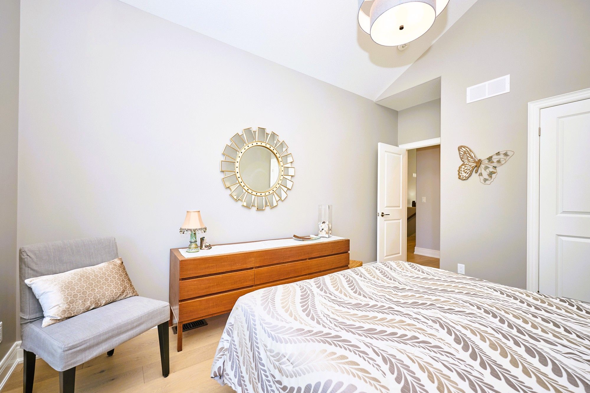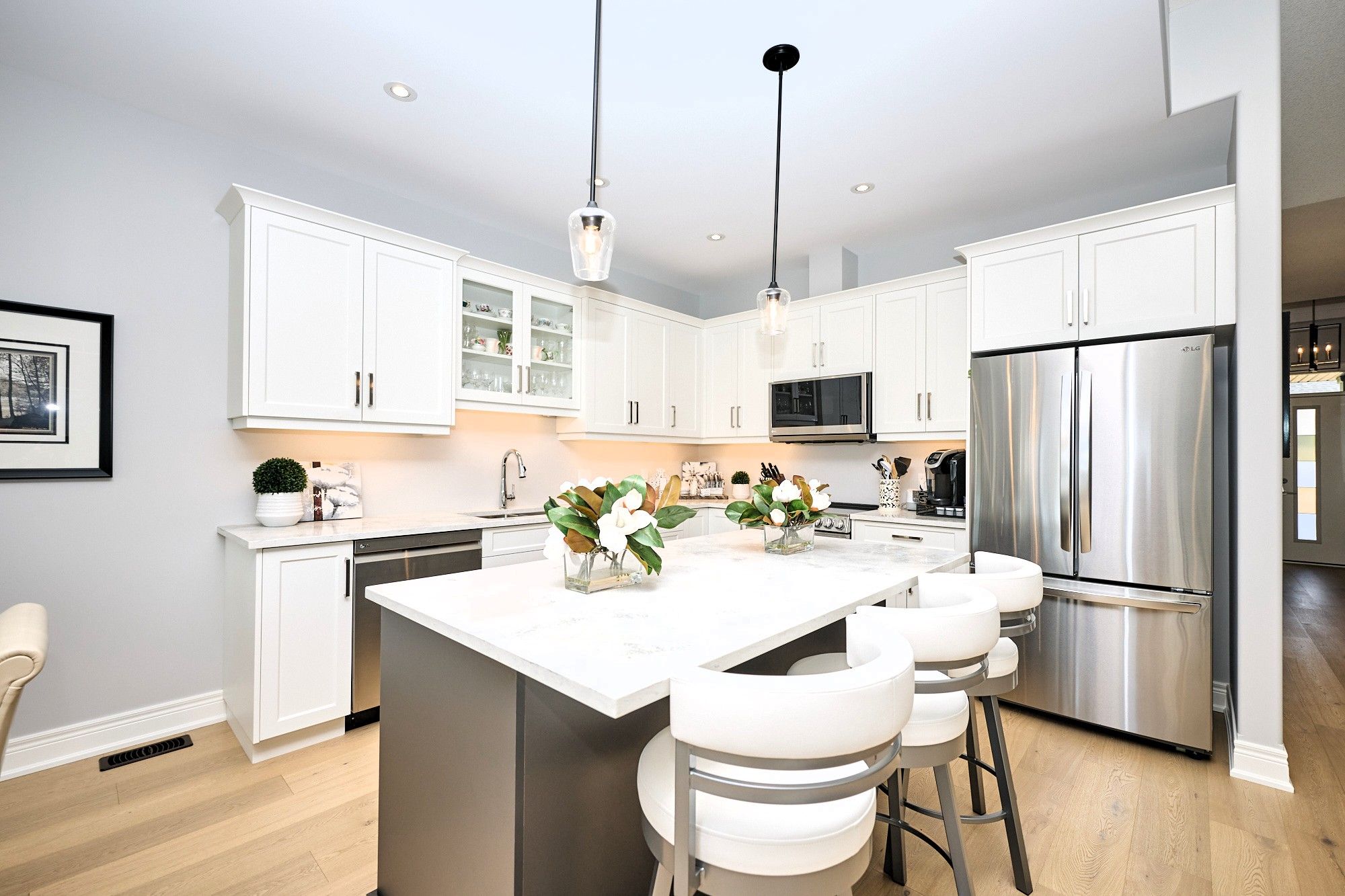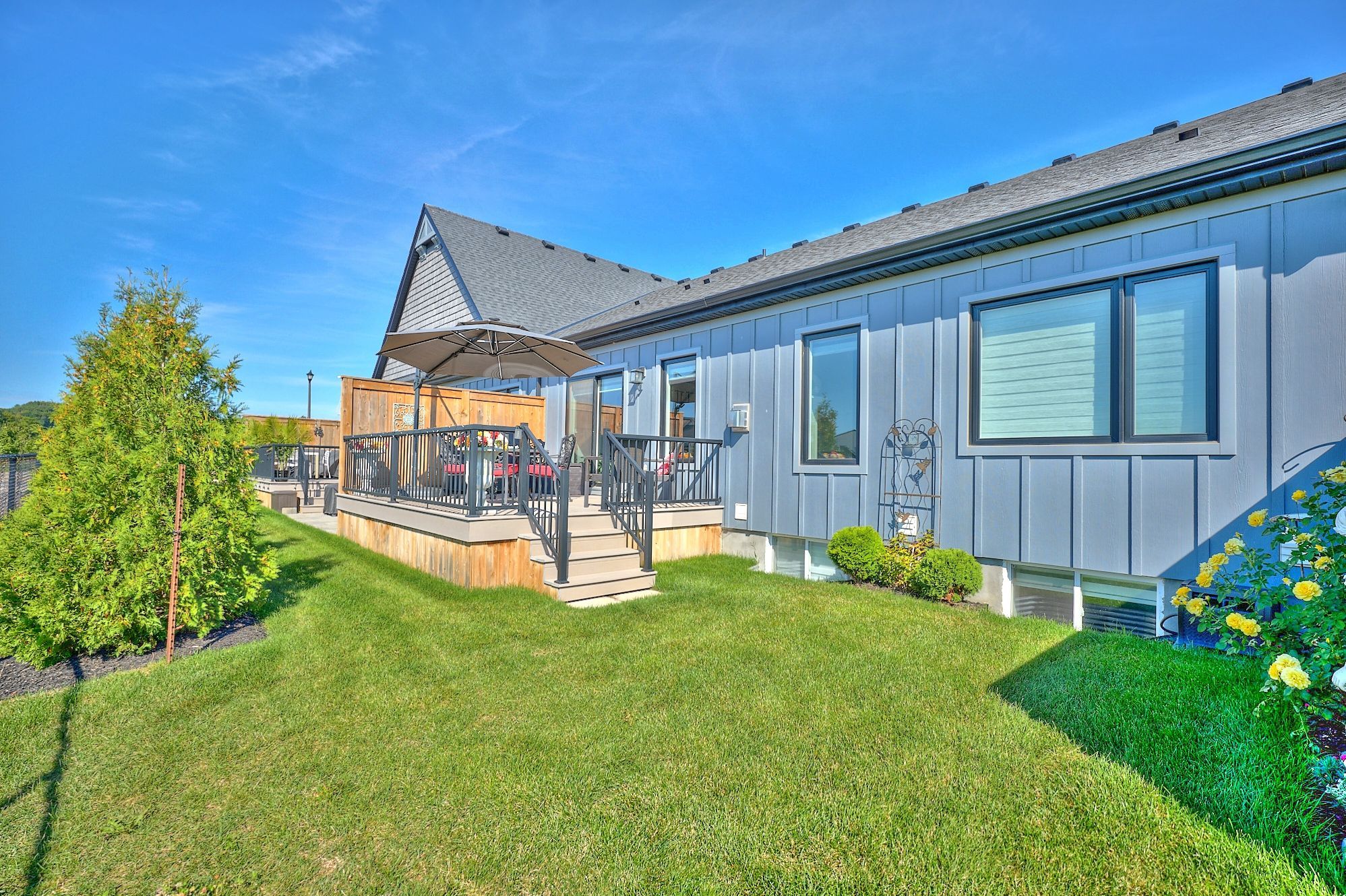Relax, rest, restore & repeat! Maintenance free condo located in 'lavender fields' development by gray forest homes in the heart of fonthill. This beautifully appointed bungalow townhouse offers no rear neighbours and serene views from the enlarged 12 x 16 composite deck with metal railings, with future plans to create a lovely park-like setting across the way. Inside, the main floor opens with soaring 9-foot ceilings and provides everything needed for everyday living, including two bedrooms, two full baths, a great room, dining area, kitchen, and main-floor laundry. With over $100,000 in notable upgrades, this home surrounds you with high-end finishes. The focal point is the great room, with vaulted ceiling and lovely white gas fireplace creating a warm and welcoming atmosphere. The modern kitchen features upgraded cabinetry, lg appliances, quartz countertops, and under-mount lighting - perfect for entertaining. The primary ensuite boasts a tiled glass shower with heated floors, adding a touch of spa-like comfort. Downstairs, the cozy finished basement offers even more space, including a large recreation room, a third bedroom, a flex room, a full three-piece bathroom, and ample storage. Other standout upgrades, wide-plank engineered hardwood flooring, upgraded lighting and hardware throughout, and heated floors in all three full bathrooms. Perfectly located, this home provides easy access to incredible amenities. Nature enthusiasts will enjoy nearby walking trails, with the meridian community centre just minutes away offers two nhl- sized ice rinks, an indoor walking track, two full courts, and adult programs including brock fit, spin classes, pickleball, step classes, yoga, and more. Come explore the niagara region with famous wineries, shopping, restaurants, grocery stores, and so many other conveniences are all just a stones throw away. Golf lovers will also appreciate being only minutes from two of niagaras premier courses: lookout point and peninsula lakes.