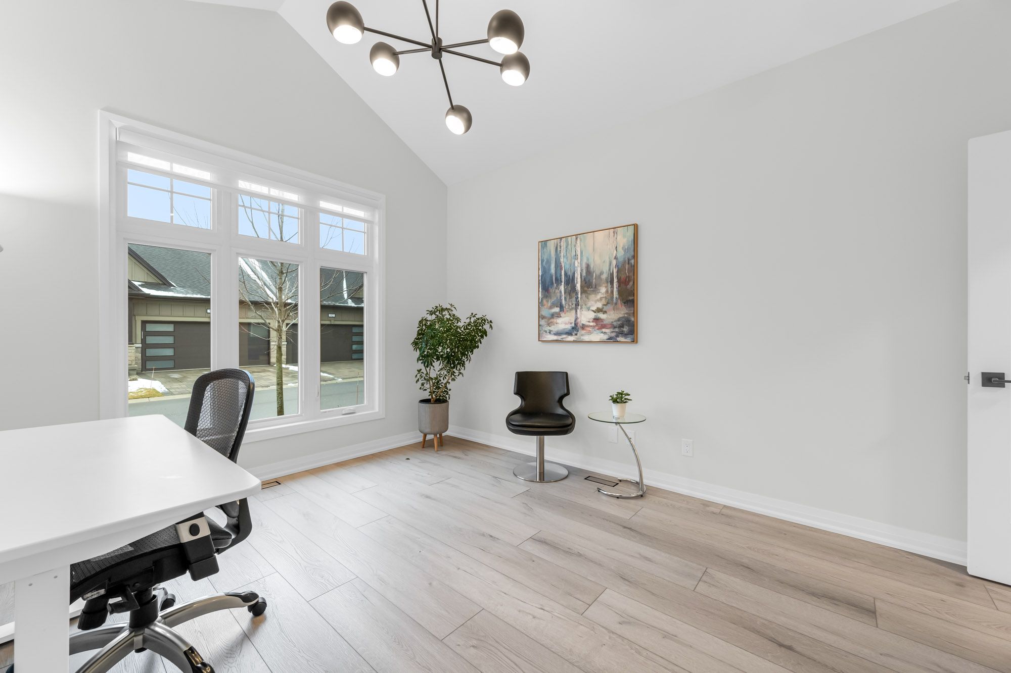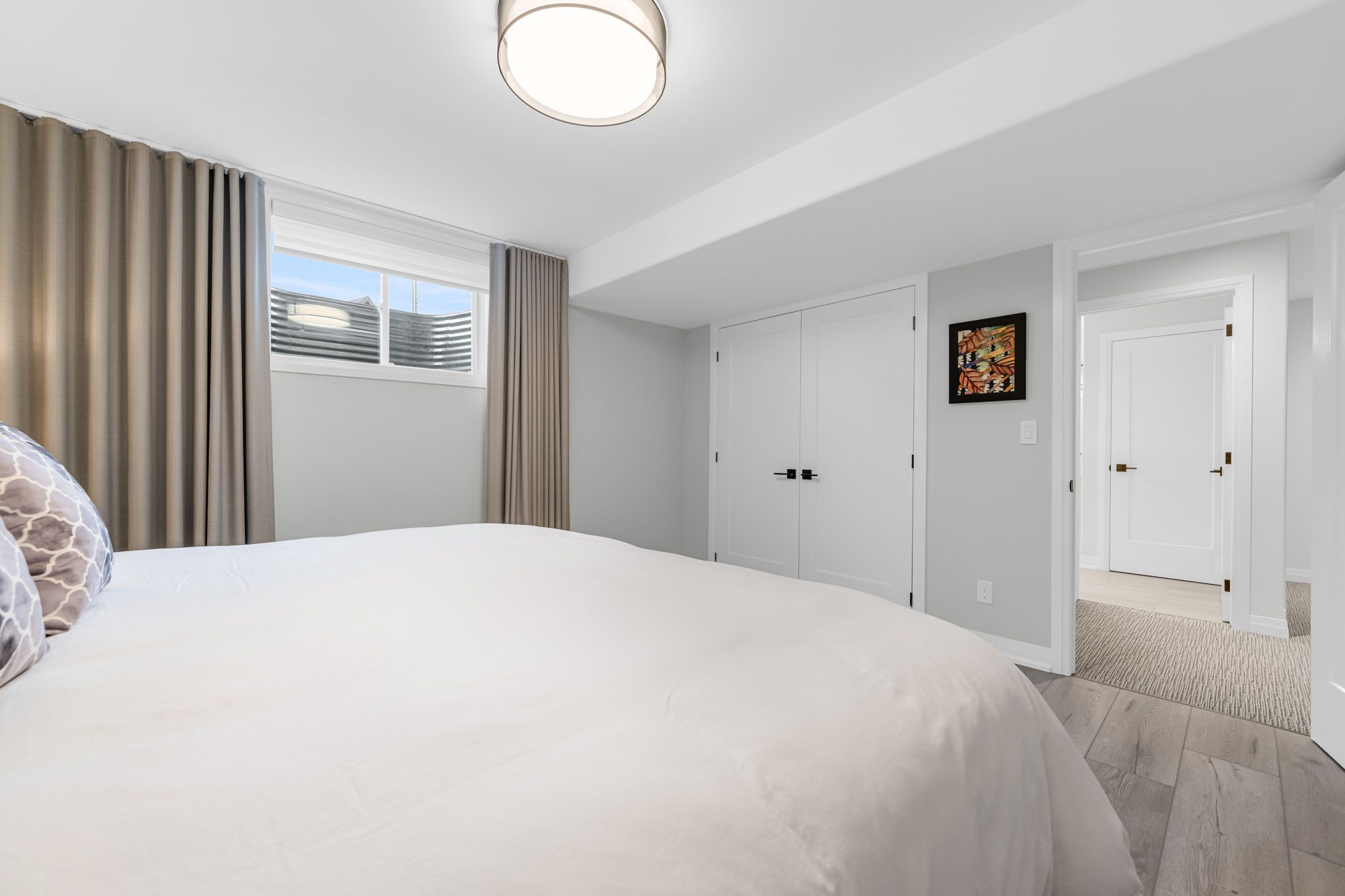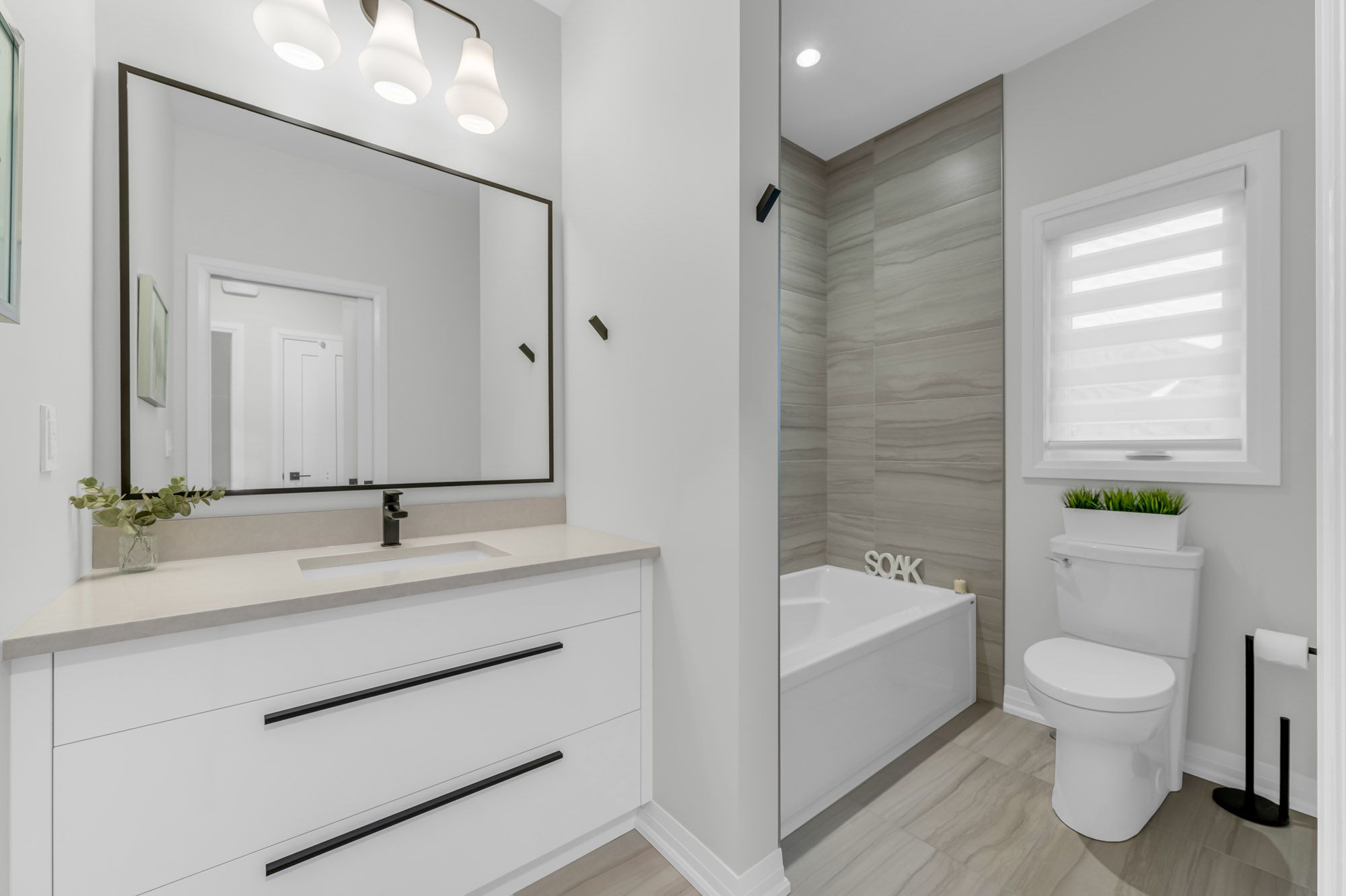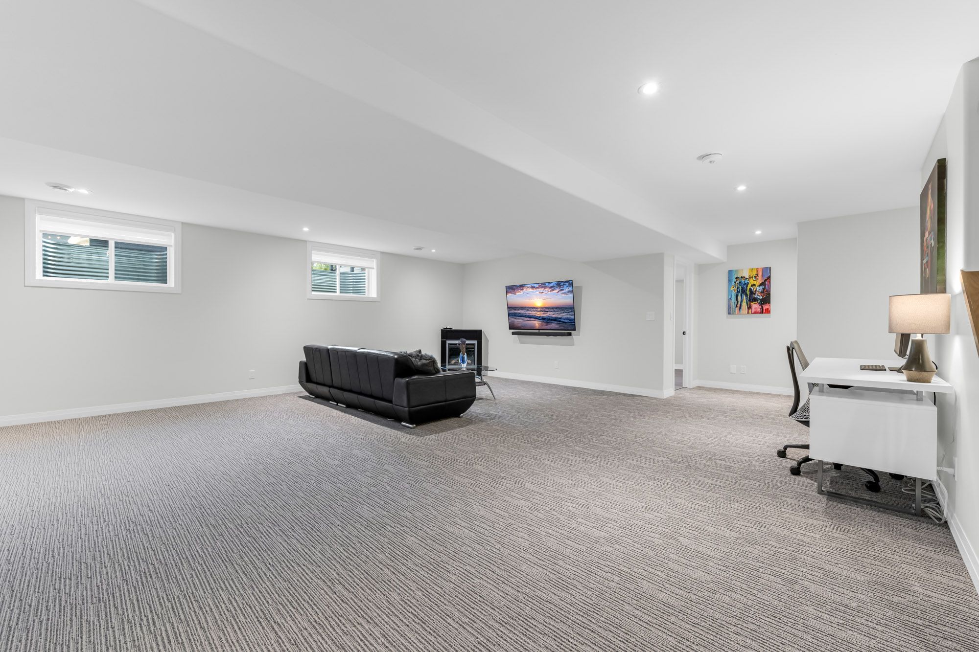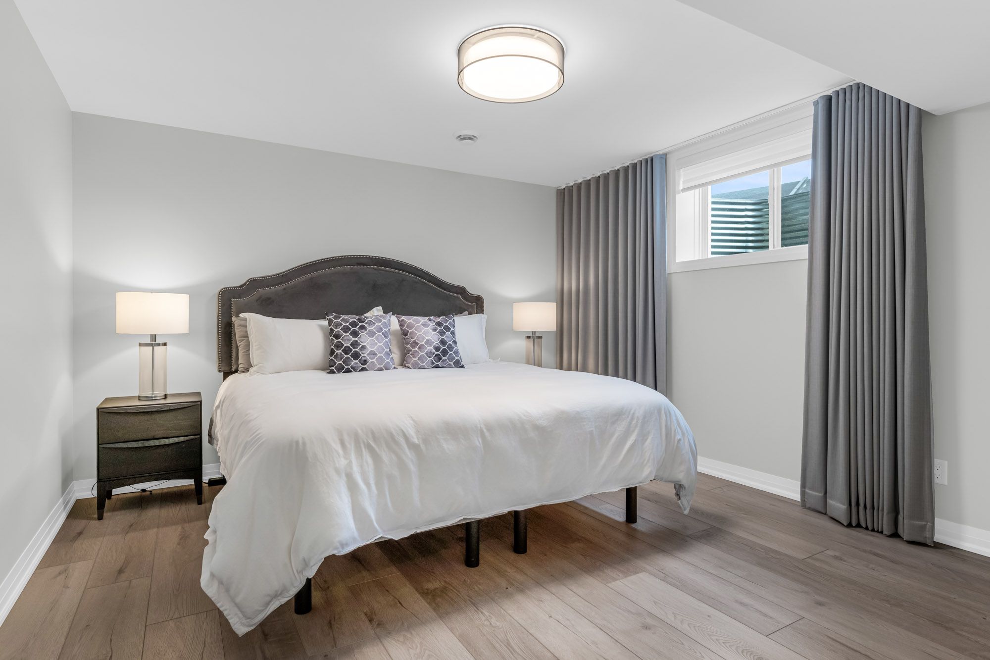 Nestled in the heart of lavender fields, a grey forest community, this rare end-unit bungalow is the largest model in the neighbourhood, offering 1,508 sq ft on the main level plus approximately 850 sq ft of builder-finished lower-level living area. From the moment you enter, the sense of space is unmistakable. Ten-foot ceilings enhance the entry and both bedrooms, while the living room showcases a dramatic 12-ft ceiling. More than $200,000 in carefully curated upgrades elevate this home well beyond builder standards. The custom kitchen is a true showpiece, featuring premium cabinetry and hardware, silestone quartz countertops/backsplash, smart storage solution including a pantry/spice drawer, and impressive 9-ft waterfall island with storage on both sides. High-end appliances include bosch induction cooktop, wall oven and fridge and a fisher and paykel integrated double-drawer dishwasher. The serene primary retreat offers a walk-in closet, designer pendant lighting, floor to-ceiling custom drapery, and a four-piece ensuite with double vanity and glass-enclosed shower. The lower level includes open spindle staircase, spacious recreation room, third bedroom, three-piece upgraded bath, and generous storage area. Outdoor living is equally impressive with a private oversized composite deck and interlocking stone patio surrounded by greenery. The upgraded garage features an epoxy floor by garage kings, ev-charger outlet and insulated attic. Additional upgrades include smooth ceilings, upgraded trim and rounded drywall, integrated in-ceiling speaker system, designer lighting, premium plumbing fixtures, flow-through humidifier, whole-home water purification, extra-wide plank flooring, 3m privacy window tint, and much more. Low maintenance fee covers water, professional management, landscaping, and snow removal, delivering true turnkey living in one of fonthill's most prestigious, architecturally controlled communities. Video & virtual tour available.