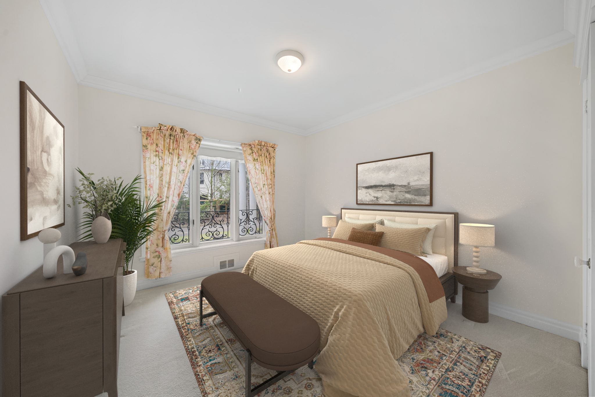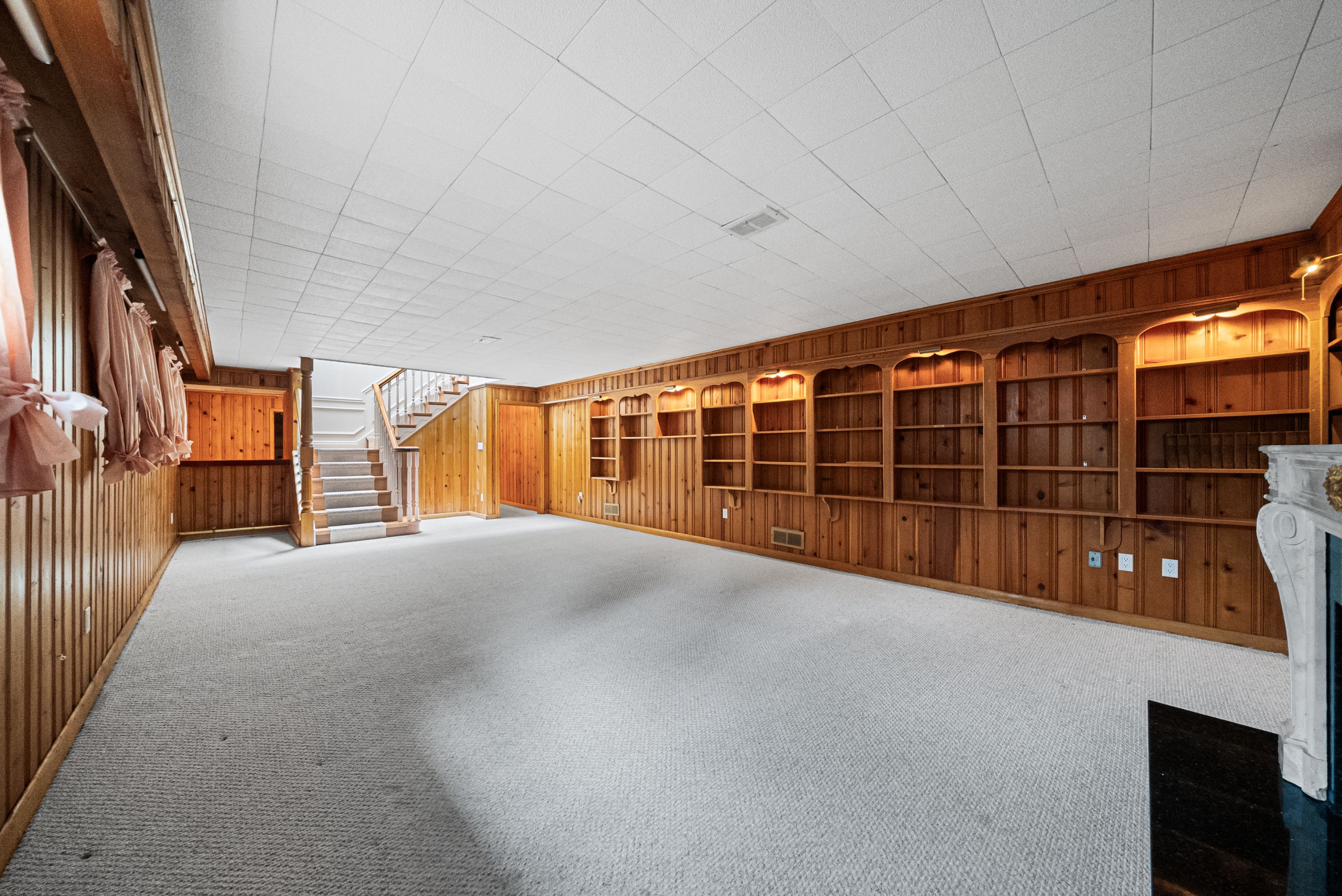• Finished lower level with a rec room, wet bar, and additional office spaces.