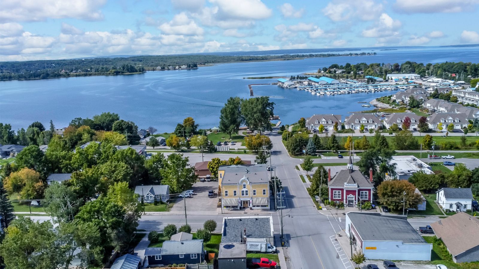 Victoria harbour landmark with 5 residential units, a large commercial space, & incredible income potential! Discover a truly rare opportunity in the heart of victoria harbour with this landmark offering over 10,300 sq ft of space, multiple self-contained units, and an absolutely adorable cafe. This property features five separate living accommodations, plus a nearly 2,900-square-foot cafe with soaring 13-foot ceilings, rustic wood accents, two washrooms, and a warm, inviting atmosphere perfect for dining, retail, or boutique-style business use. The spacious, open-concept four-bedroom apartment impresses with a massive kitchen island, wood-toned cabinetry, stainless steel appliances, and a layout that opens to expansive living and dining areas featuring rustic wood flooring, pot lights, large windows, and tasteful, antique-inspired finishes, balanced by a timeless, neutral palette. The primary bedroom is generously sized, while the additional three bedrooms are cozy and welcoming, all complemented by two full bathrooms, abundant storage, and an unfinished space offering a blank canvas to suit your needs. Two one-bedroom apartments on the main level and two bachelor apartments in the lower level create multiple potential income streams, giving the option to live in one unit while renting the others. With flexible c1 zoning that allows for a wide range of uses including retail, restaurant, offices, craft shop, and hospitality, combined with steady local traffic and seasonal tourist activity, this property offers prime income potential for investors, business owners, or those looking to operate an airbnb or bed and breakfast, all just moments from georgian bays waterfront, scenic trails, parks, and local amenities.