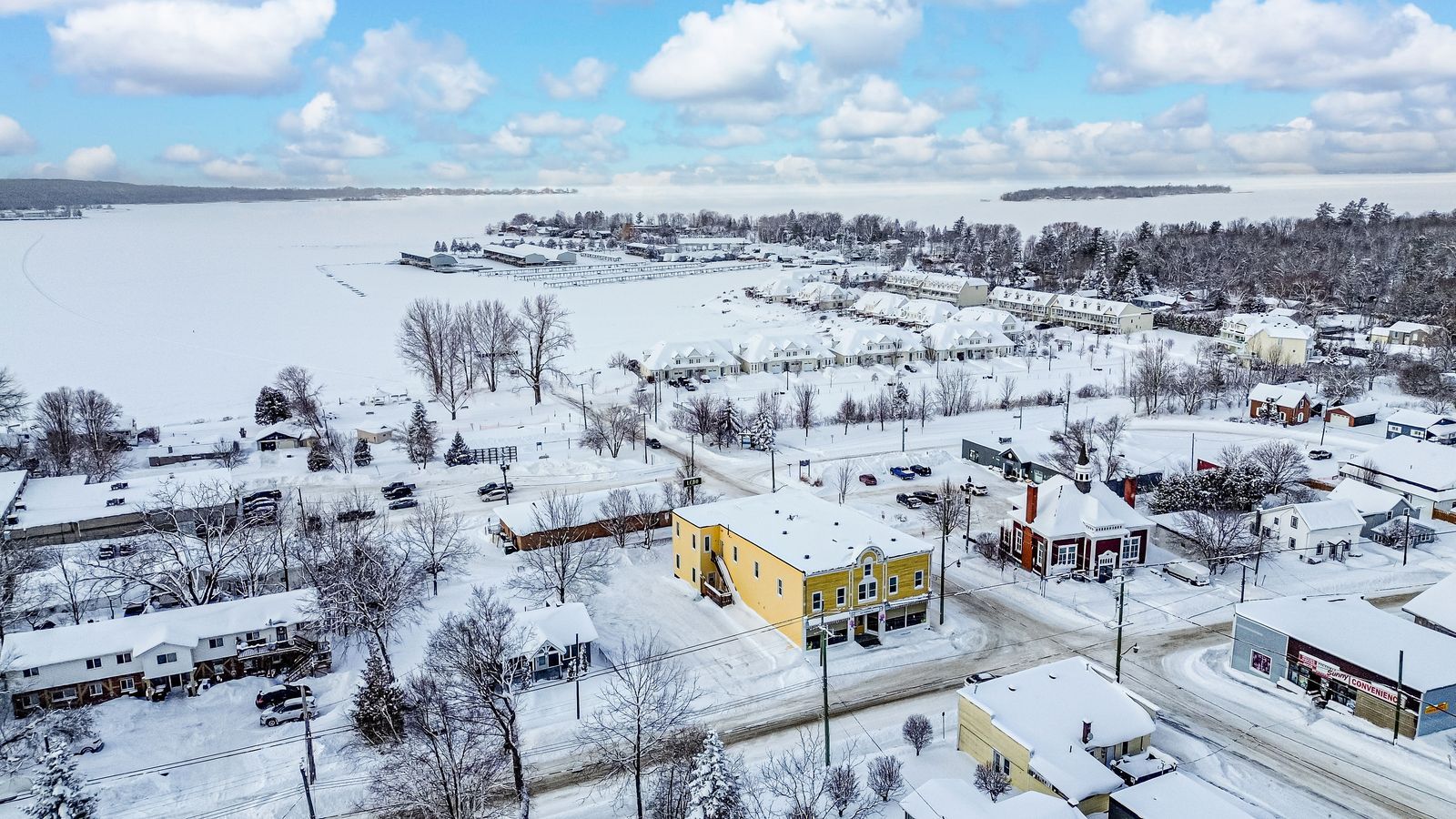 Victoria harbour landmark with 5 residential units, a large commercial space, & incredible income potential! Discover a truly rare opportunity in the heart of victoria harbour with this landmark offering over 10,300 sq ft of space, multiple self-contained units, and an absolutely adorable cafe. This property features five separate living accommodations, plus a nearly 2,900-square-foot cafe with soaring 13-foot ceilings, rustic wood accents, two washrooms, and a warm, inviting atmosphere perfect for dining, retail, or boutique-style business use. The spacious, open-concept four-bedroom apartment impresses with a massive kitchen island, wood-toned cabinetry, stainless steel appliances, and a layout that opens to expansive living and dining areas featuring rustic wood flooring, pot lights, large windows, and tasteful, antique-inspired finishes, balanced by a timeless, neutral palette. The primary bedroom is generously sized, while the additional three bedrooms are cozy and welcoming, all complemented by two full bathrooms, abundant storage, and an unfinished space offering a blank canvas to suit your needs. Two one-bedroom apartments on the main level and two bachelor apartments in the lower level create multiple potential income streams, giving the option to live in one unit while renting the others. With flexible c1 zoning that allows for a wide range of uses including retail, restaurant, offices, craft shop, and hospitality, combined with steady local traffic and seasonal tourist activity, this property offers prime income potential for investors, business owners, or those looking to operate an airbnb or bed and breakfast, all just moments from georgian bay's waterfront, scenic trails, parks, and local amenities.