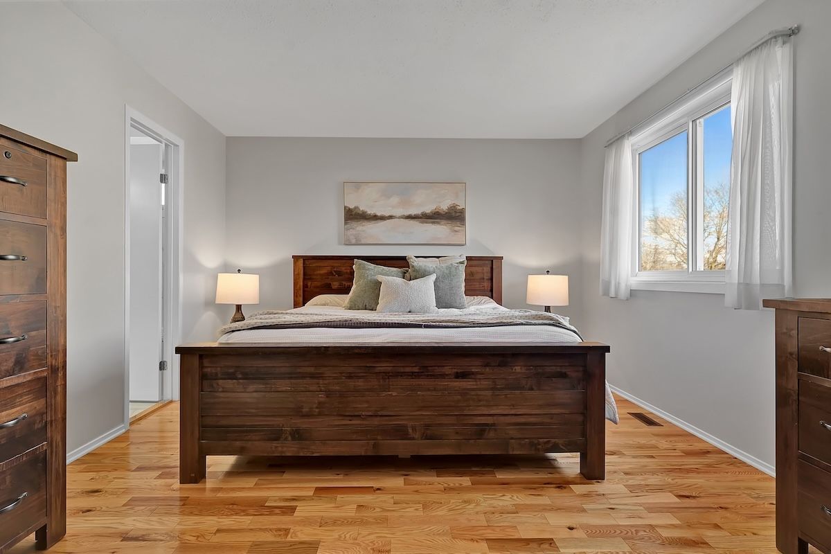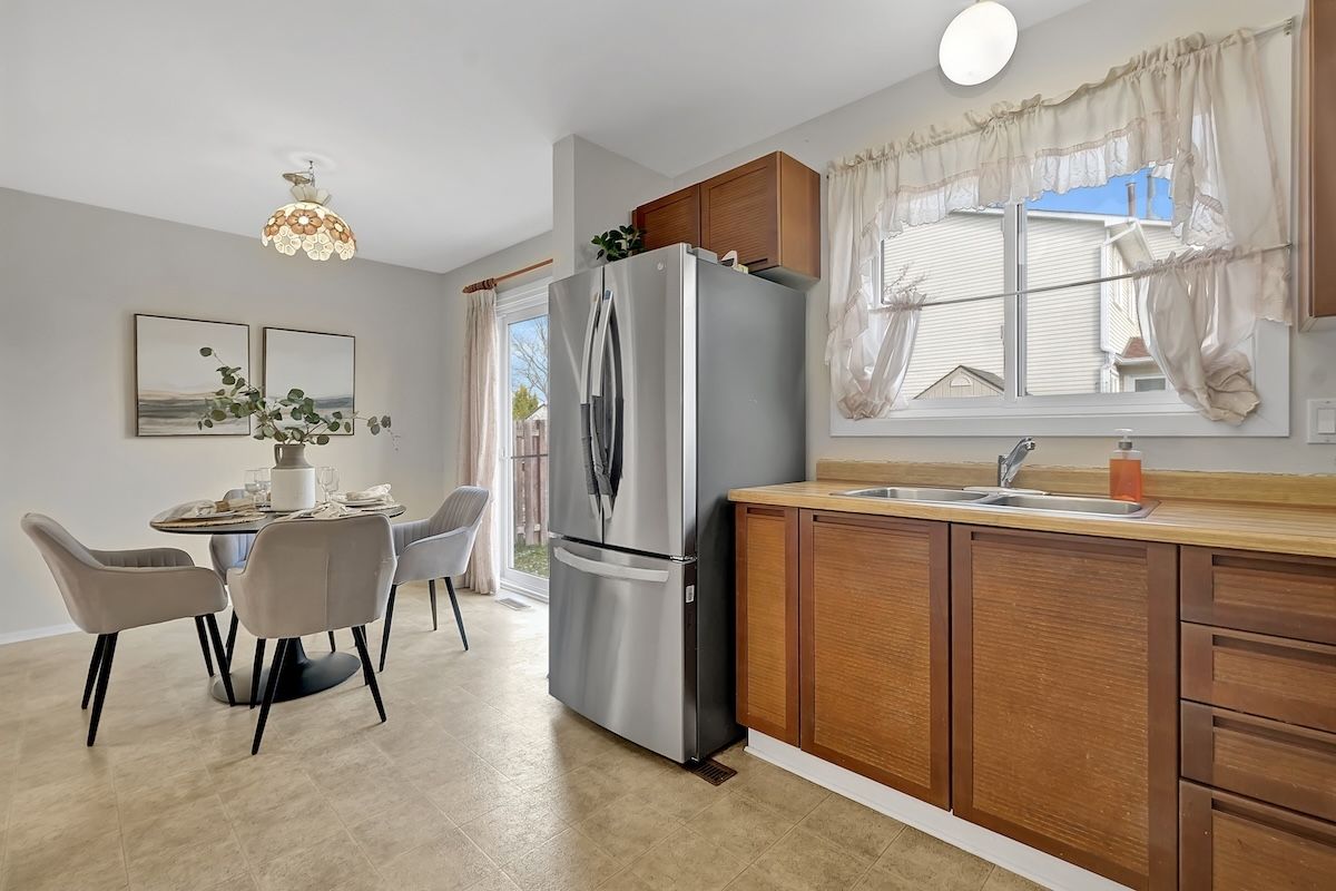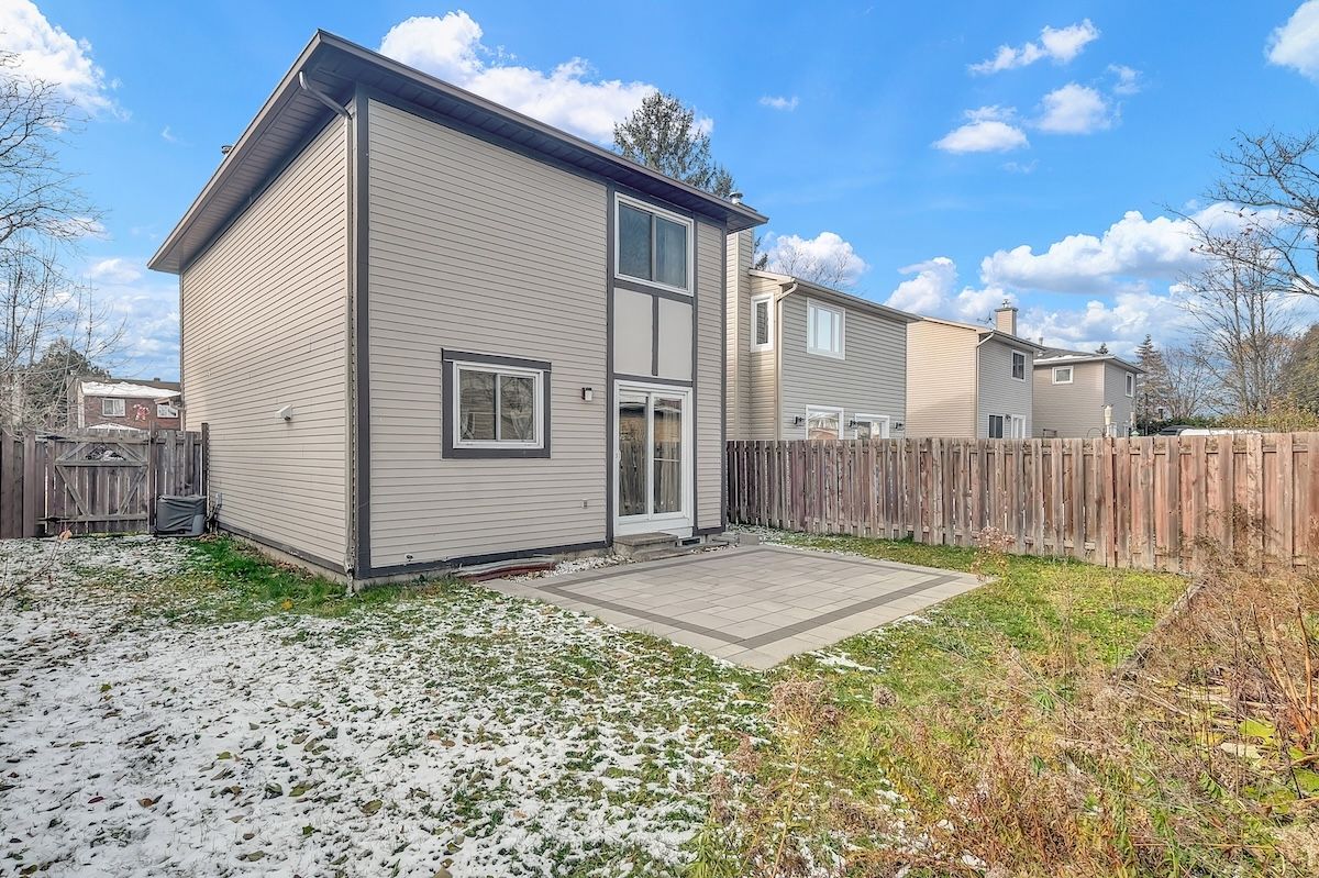 Welcome to a warm and inviting family home in one of orleans' most convenient and well-connected neighbourhoods. This beautifully maintained property offers a bright layout, great natural light, and a classic floor plan that works for real-day-to-day to day living. The main floor features sun-filled hardwood floors, a spacious living room with a wood-burning fireplace, a comfortable dining area, and an eat-in kitchen with plenty of cabinet space and direct access to the backyard. A convenient powder room completes this level, adding function and comfort for busy households. Upstairs, the home offers three generous bedrooms and a fully renovated main bathroom with elegant tile, a wide modern vanity, and a glass-enclosed tub and shower. The primary bedroom enjoys direct access to the bath, creating a semi-en-suite feel. The finished lower level adds even more usable space with a bright rec room and excellent storage options. It is ideal for a playroom, media area, home gym, or office setup. The backyard is fully fenced and private, perfect for children, pets, and relaxed outdoor living. L with newly laid patio stones . This location is hard to beat. You are minutes from the coming lrt extension, close to parks, shopping, and a vibrant blend of french and english culture. Families will love the access to some of ottawa's best french schools, along with convenient transit and nearby amenities. This home delivers comfort, value, and room to grow. It is move-in ready and full of potential for your personal touch. Welcome home. Shingles 2013, windows recent but not sure about the date. Hot water tank 2017. Furnace 2005.