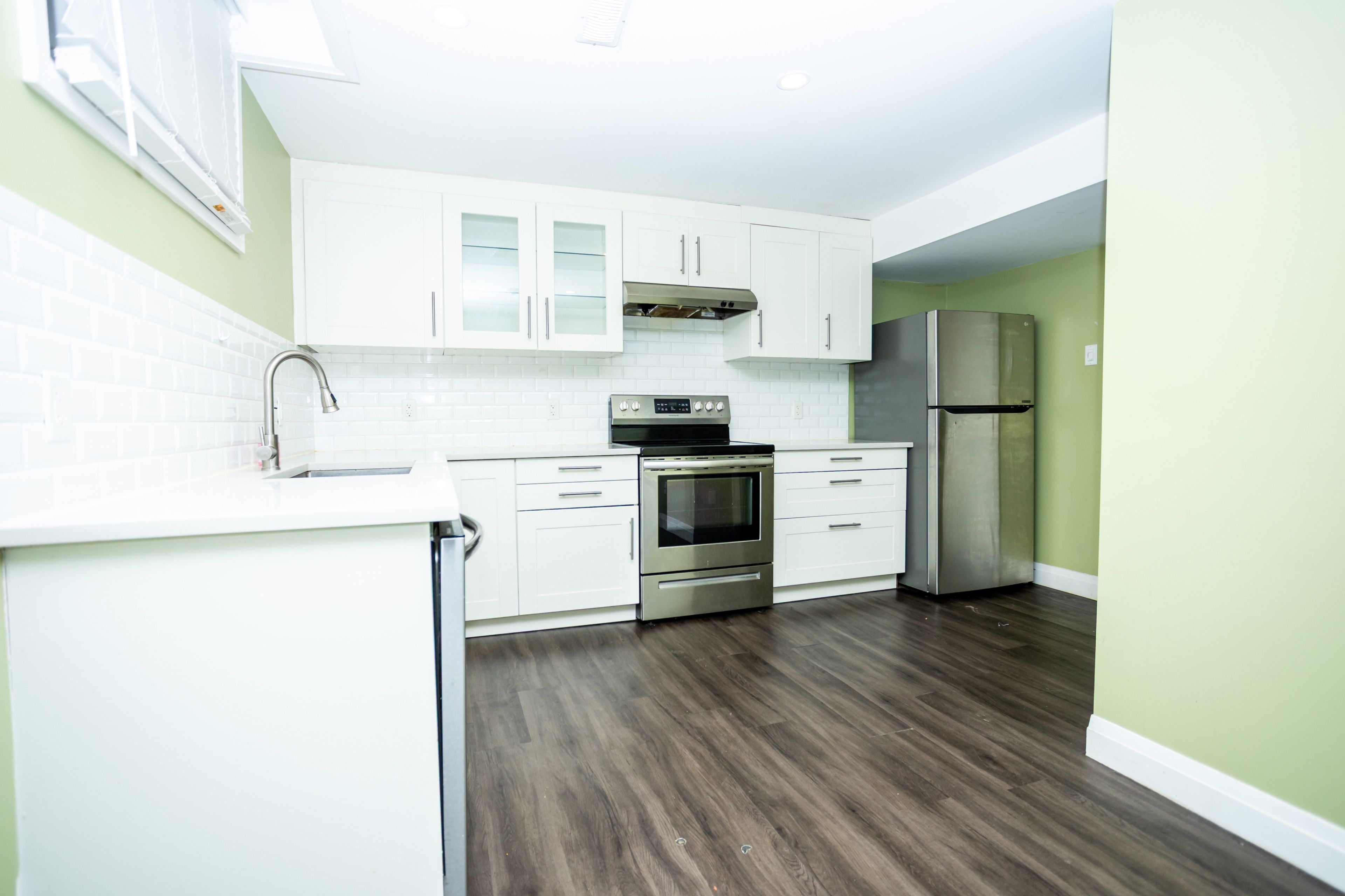 • Renovated kitchen featuring stainless steel appliances and new cabinetry.