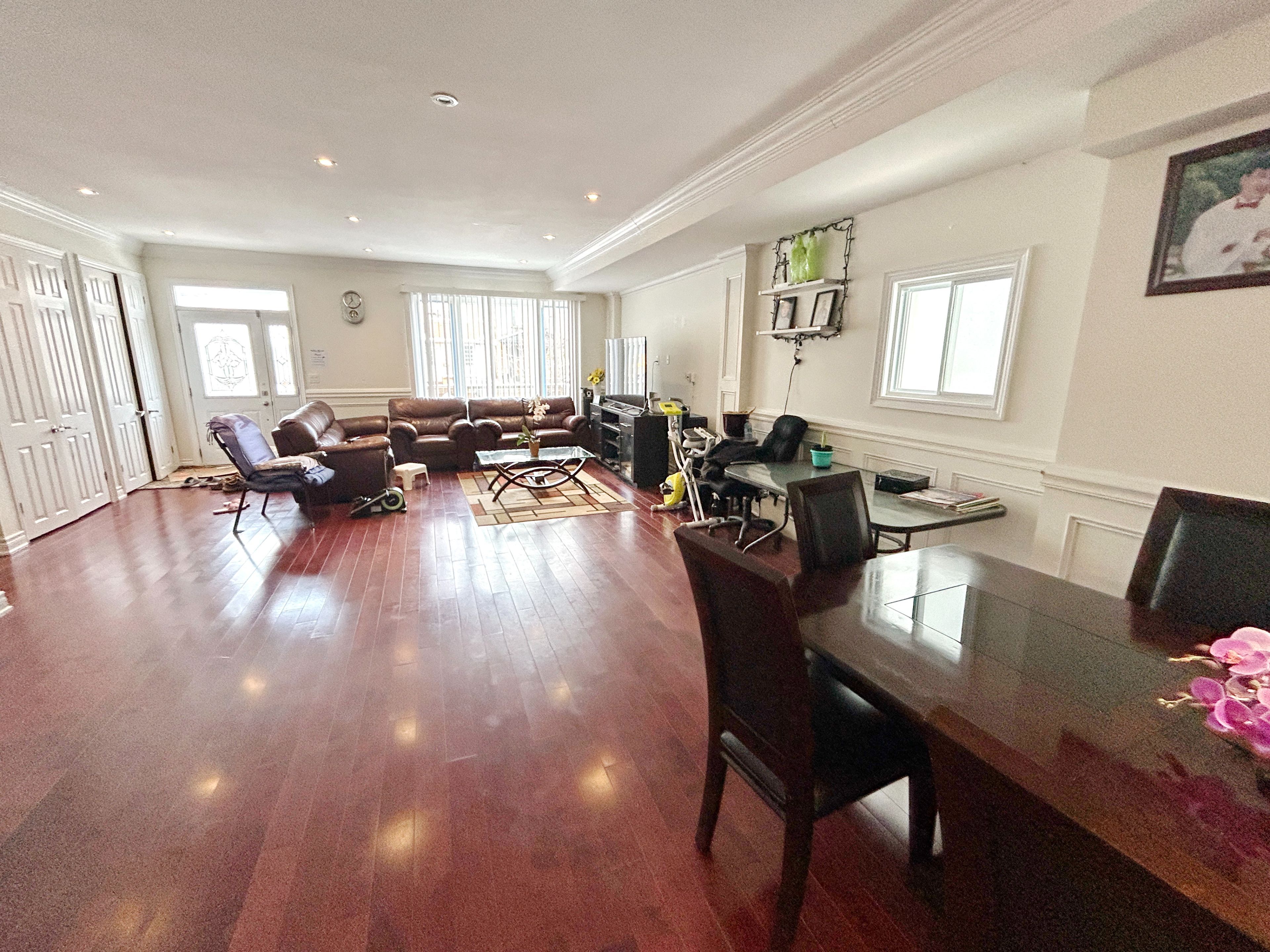 Bright and spacious 2-storey detached home on an approx. 29 x 125 ft lot in a prime dundas east location offering excellent urban convenience. This property features 5+2 bedrooms and 2 kitchens with hardwood flooring, crown moulding, and abundant natural light throughout the main and upper levels, including a main kitchen with quartz countertop and walk-out to yard, and two second-floor bedrooms offering walk-out to deck. Primary bedroom with walk-in closet and ensuite. An elegant oak staircase leads to a finished basement with separate entrance featuring a living area, lower-level kitchen with walk-out to yard, and additional bedrooms providing flexible living space. Pot lights throughout. Private driveway parking. Steps to transit, shops, restaurants, parks, schools, and vibrant downtown amenities in this sought-after neighbourhood.