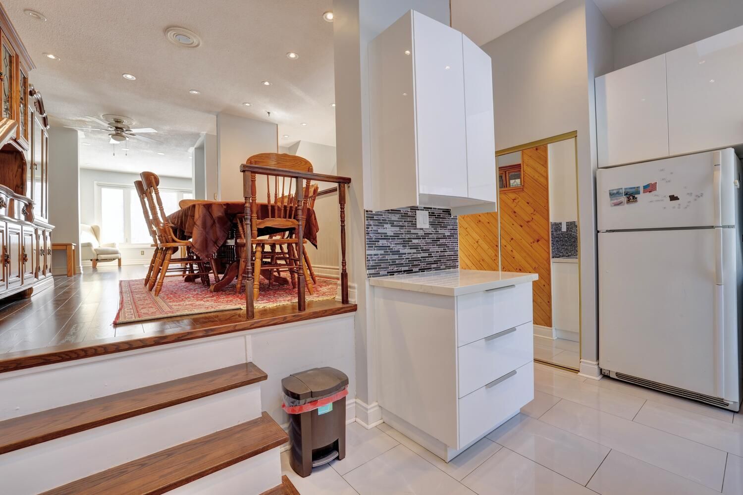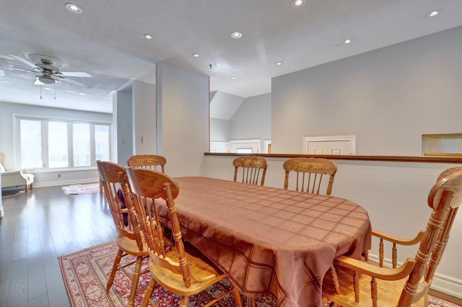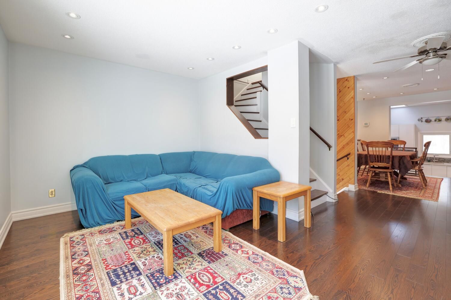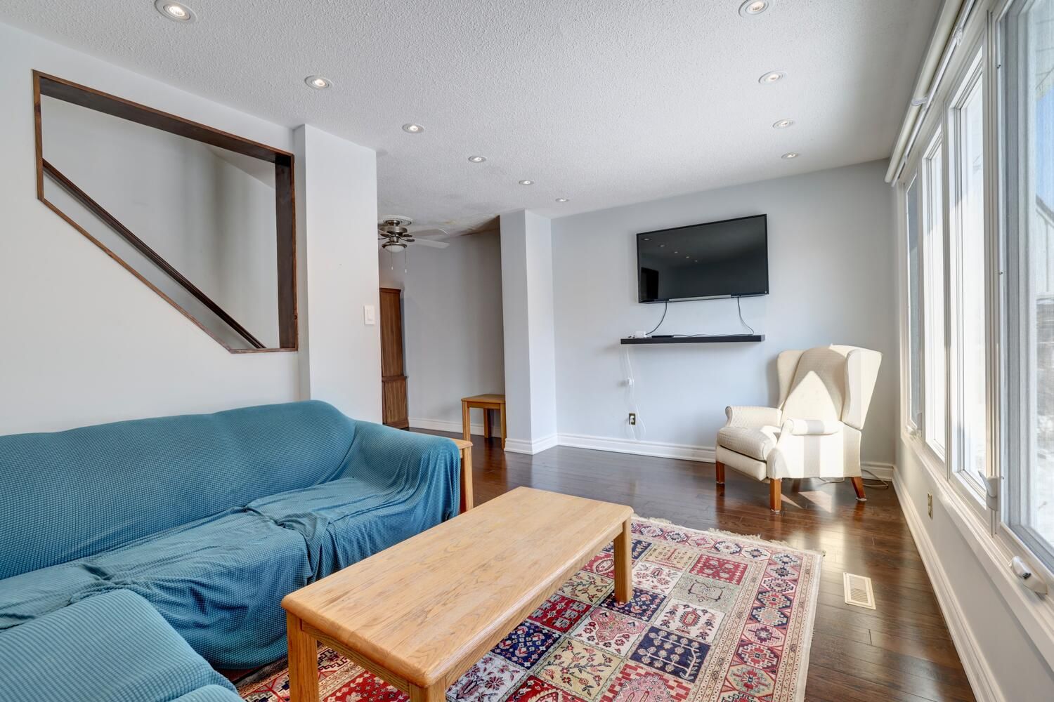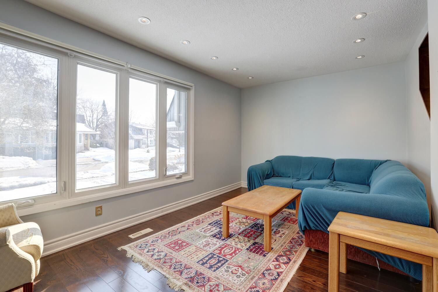 • Spacious living/dining area with hardwood floors and pot lighting.