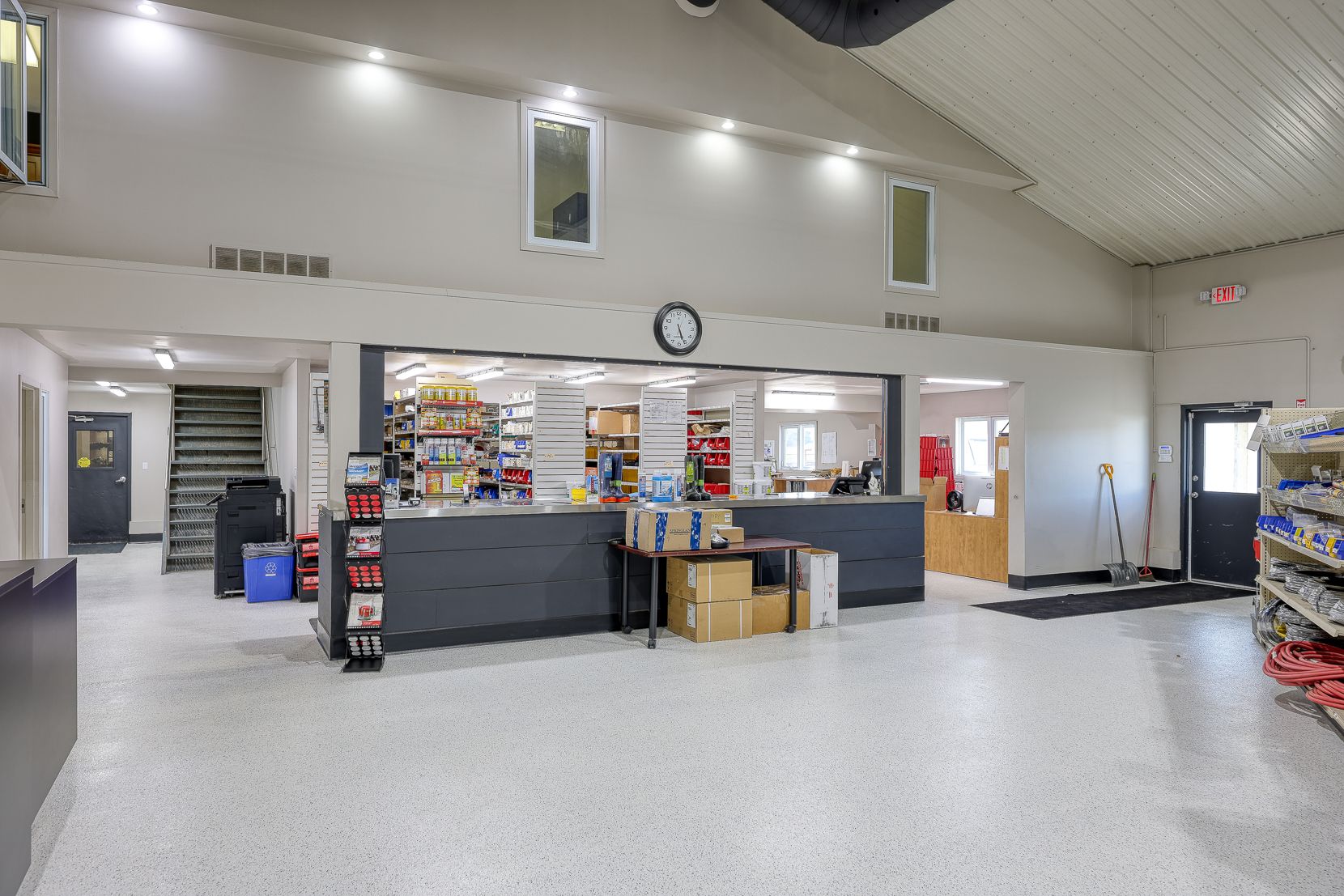 • Well-equipped warehouse with in-floor heating and loading docks.