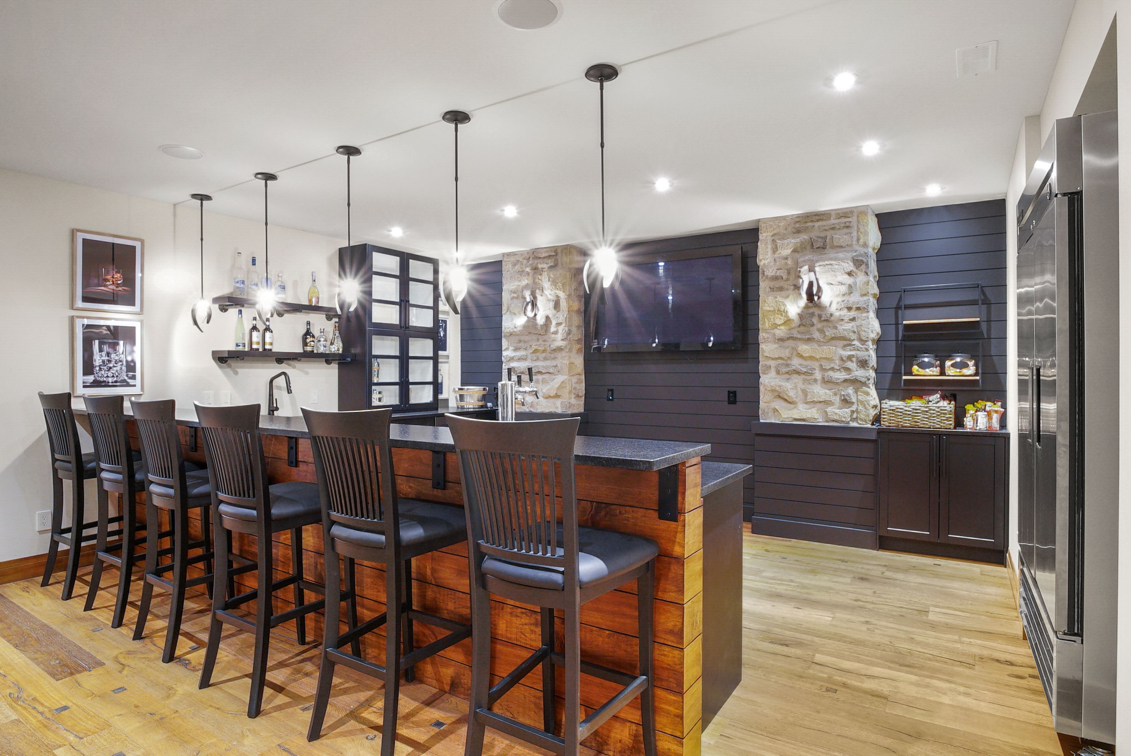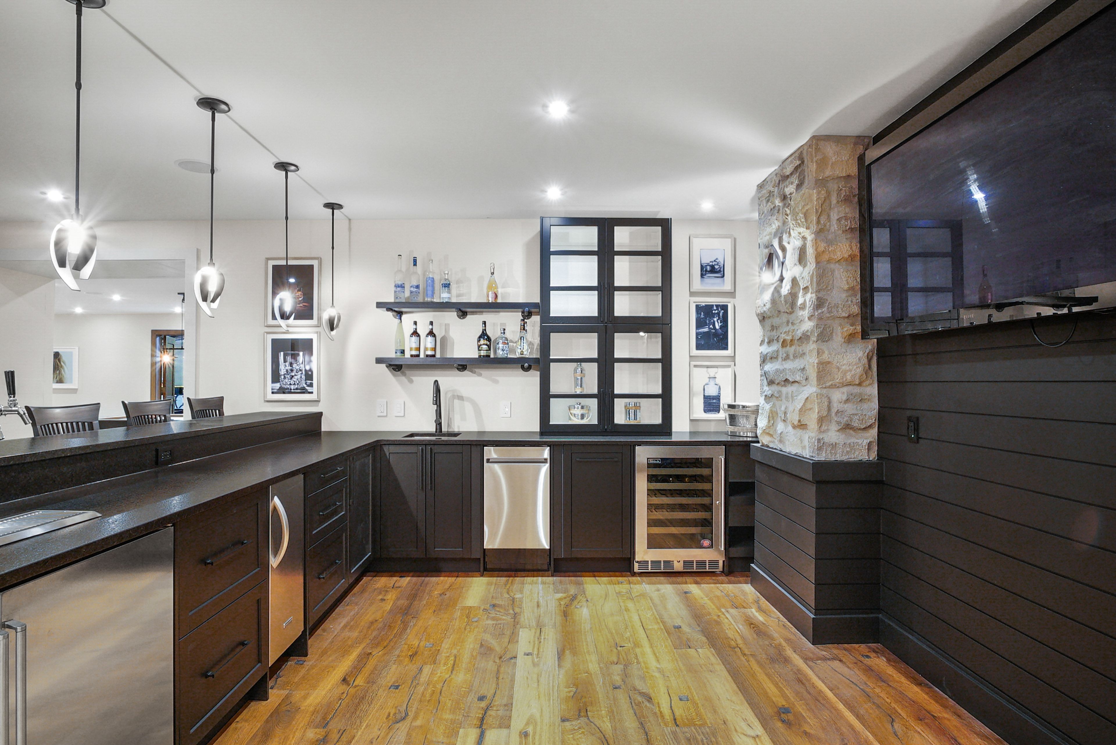 • Gourmet kitchen with Viking appliances and indoor grilling area for entertaining.