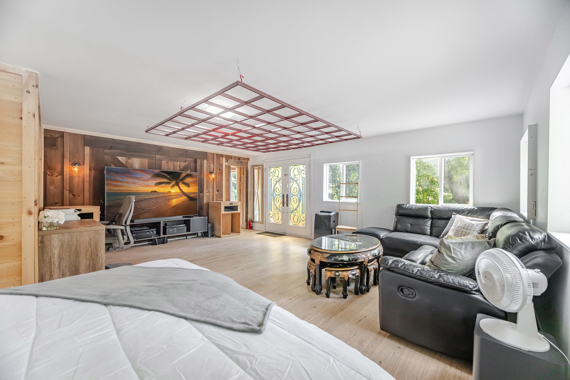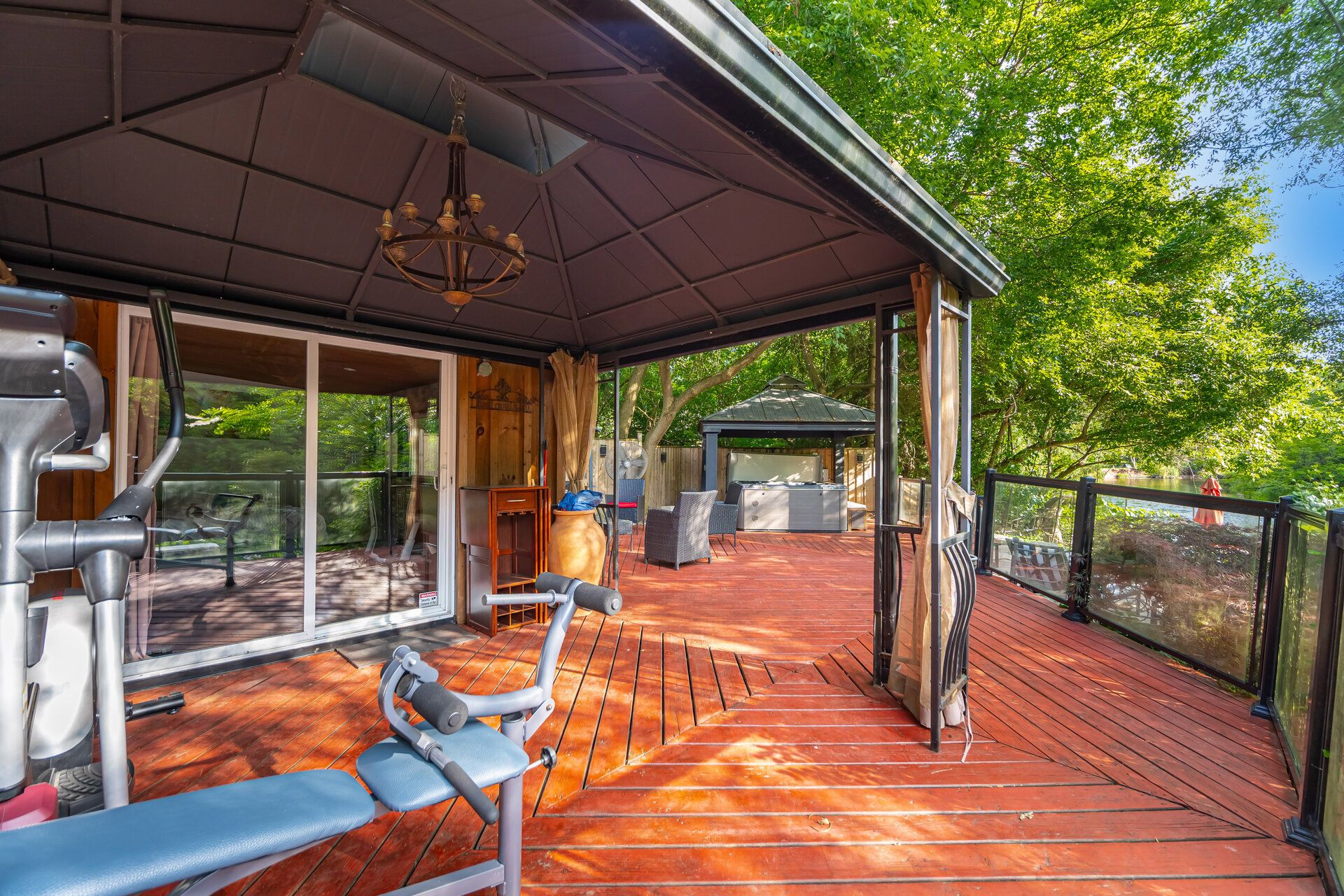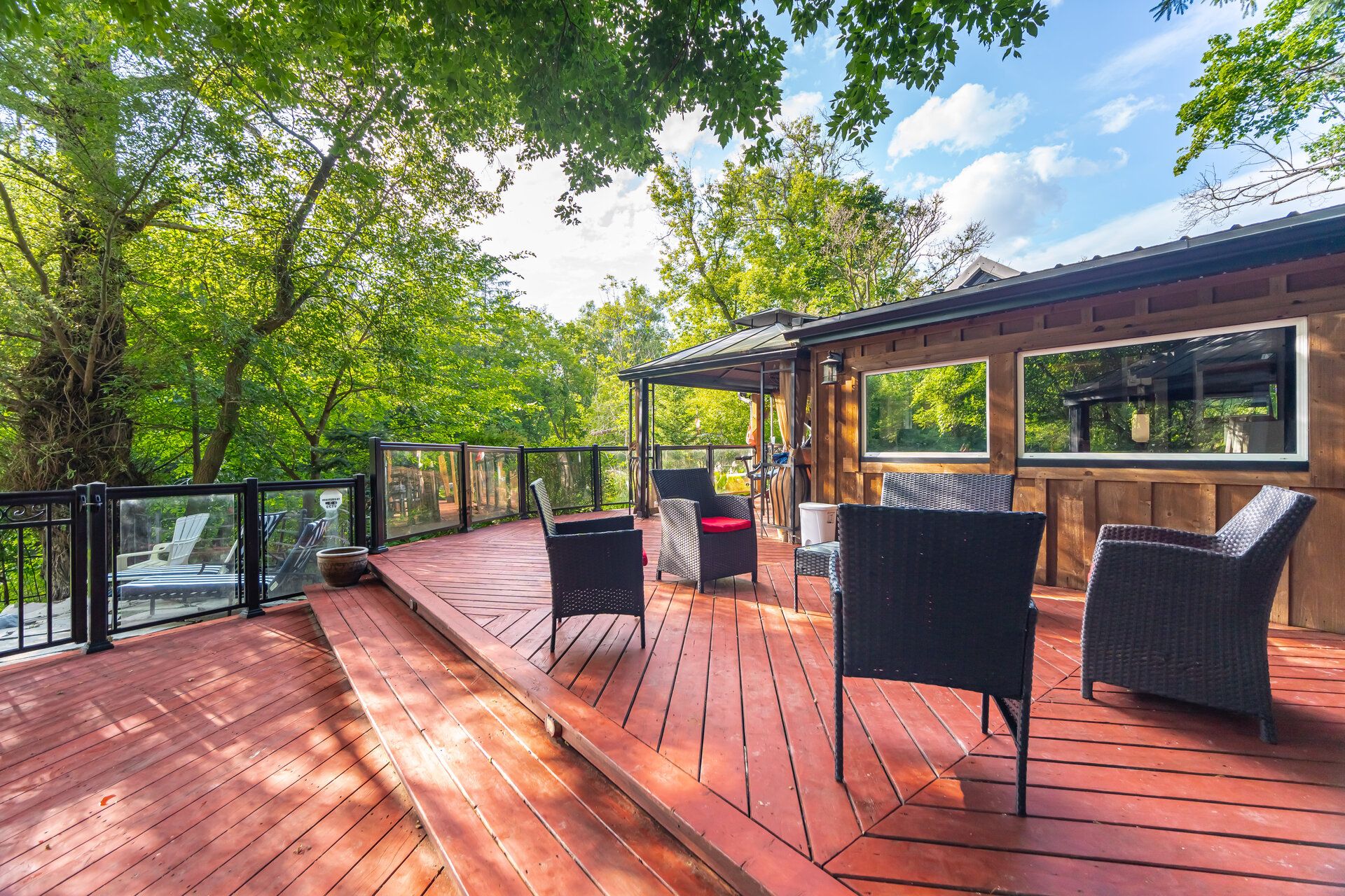• Large deck with glass railings, perfect for relaxing and entertaining.
