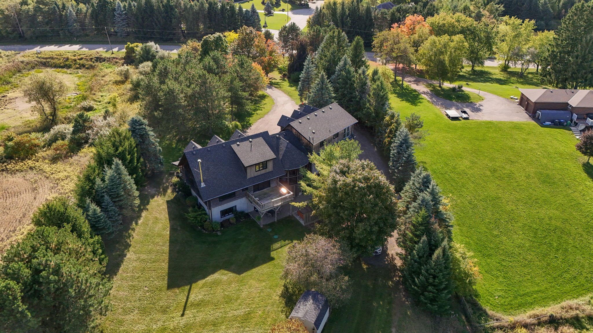 Custom home located on the king/caledon border. Approx 6000 sq ft living space with town water, natural gas and fibre optic internet. Oversized triple garage. Hardwood floors main level, wood plank floors in upper main home. Home offers plenty of privacy and awesome views! Two private accessory apts/suites suitable for home business, multi generational families, or income potential with separate entrances. Possibilities are endless. Entire lower level has high ceilings, 4 walkouts to patio and rear driveway, additional parking, guest wing area with large bedroom, sitting area and bath. You can drive to back of property where there is an outbuilding and fire pit area. **many upgrades in past few years including furnaces, central air, roof, eaves, fascia, windows, sliding door, baths, garage seals, flagstone walkway, armour stone++** main living area and kitchen boast caledon log home, addition was added in 2005 more than doubling home size! Great home for entertaining, work from home, extended family, potential income, office area and gym complete with sauna in lower level apt. Oversized triple garage. Apts/suites are located above and below triple garage offering privacy and separate entrances. Large bright dining/family room area with skylight overlooks lower level billiard/entertainment room with wet bar. This is a one of a kind property offering privacy, and neighbouring pond views to the south and east. Awesome well kept property and beautiful home, must be seen to be appreciated. Seller and agent do not warrant retrofit status of apts/suites