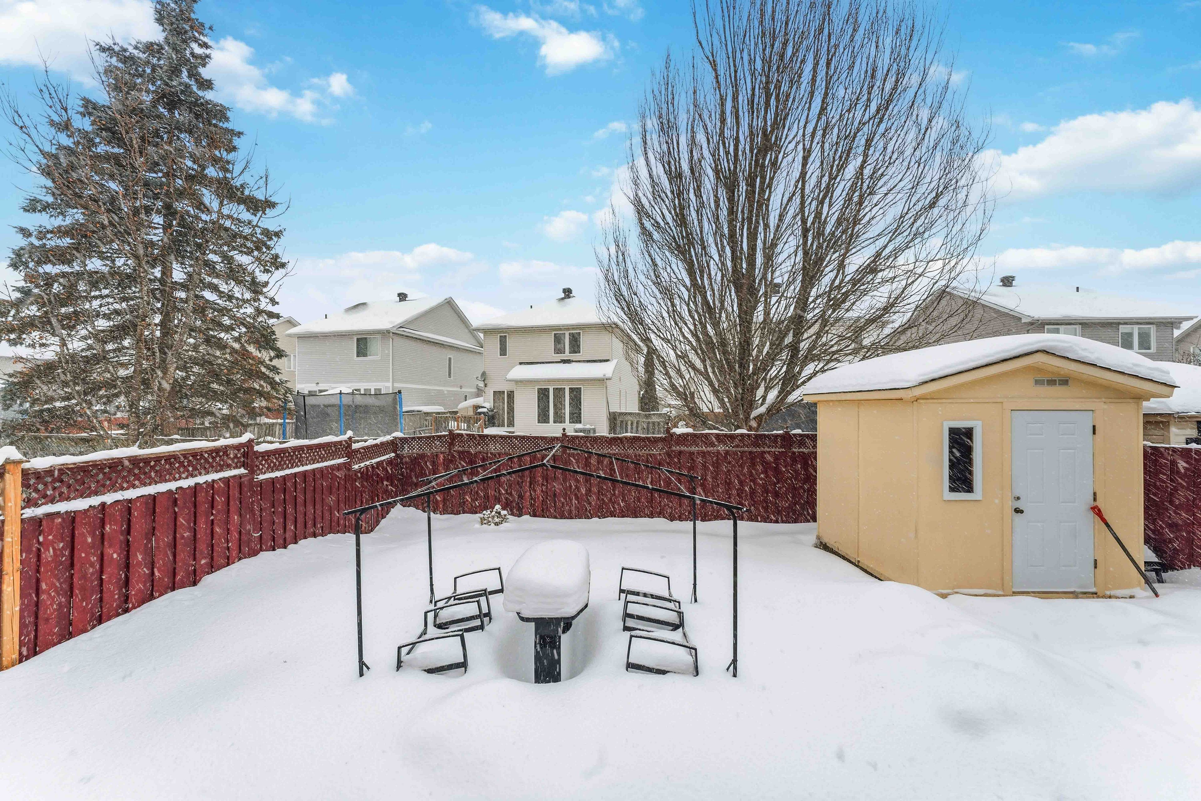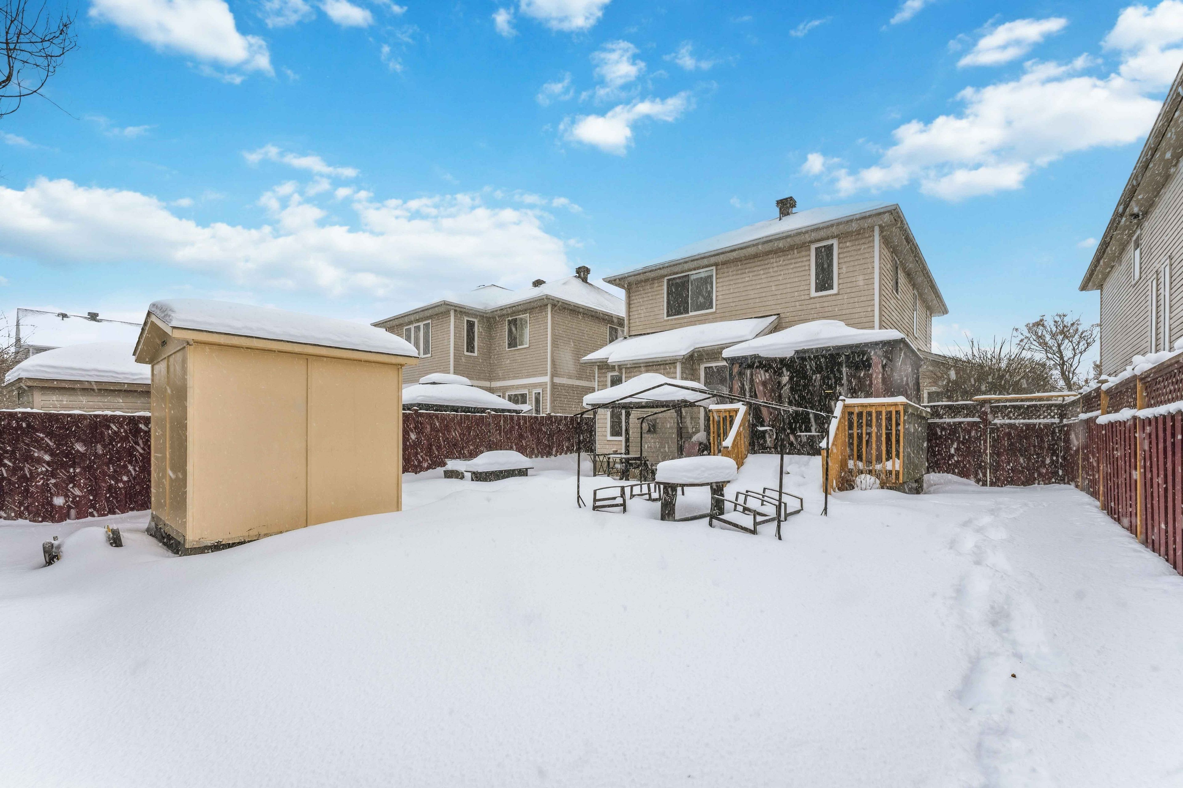 • Fully fenced backyard with large deck and gazebo for outdoor enjoyment.