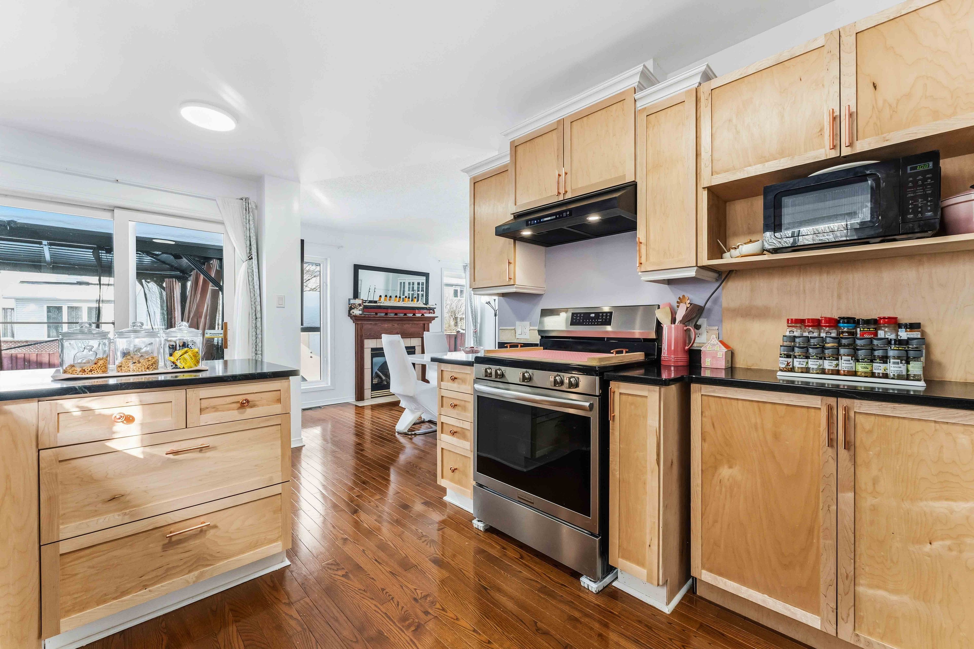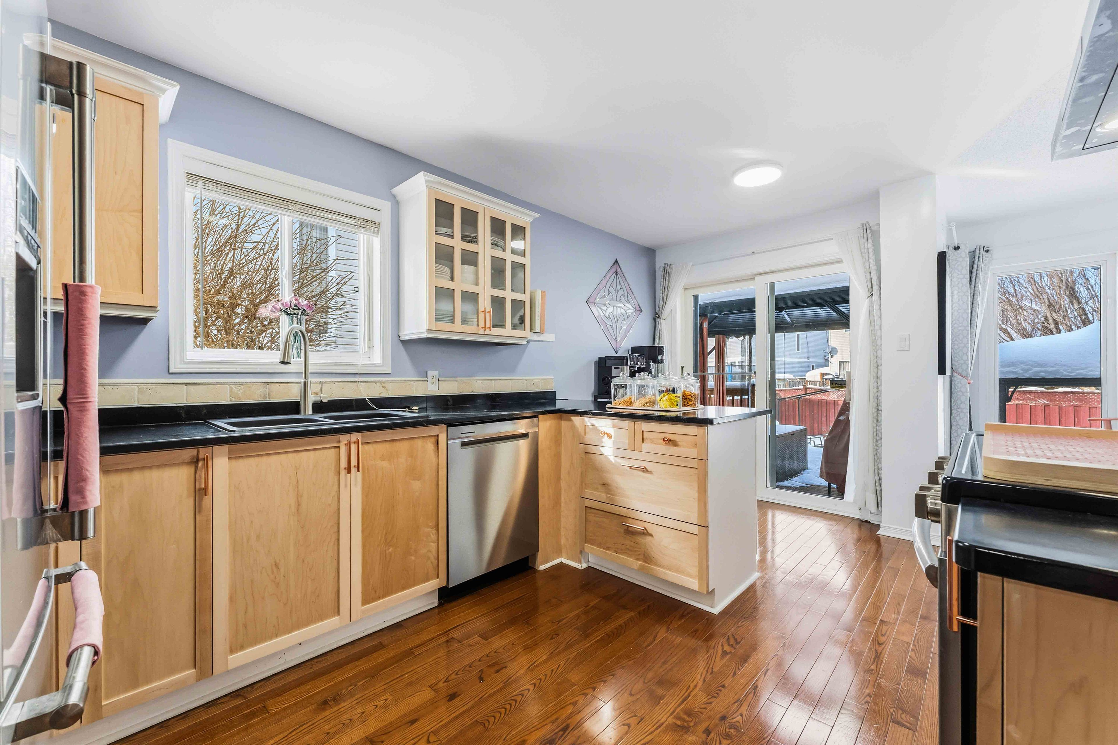 • Updated kitchen with custom cabinetry and new appliances.