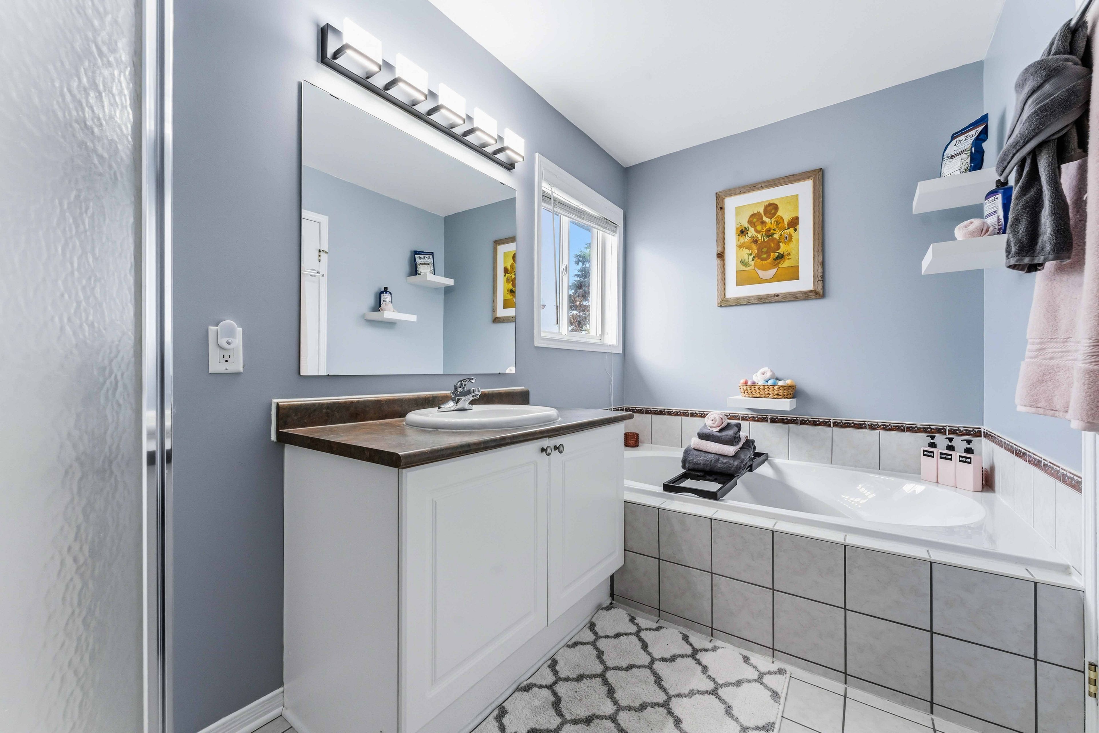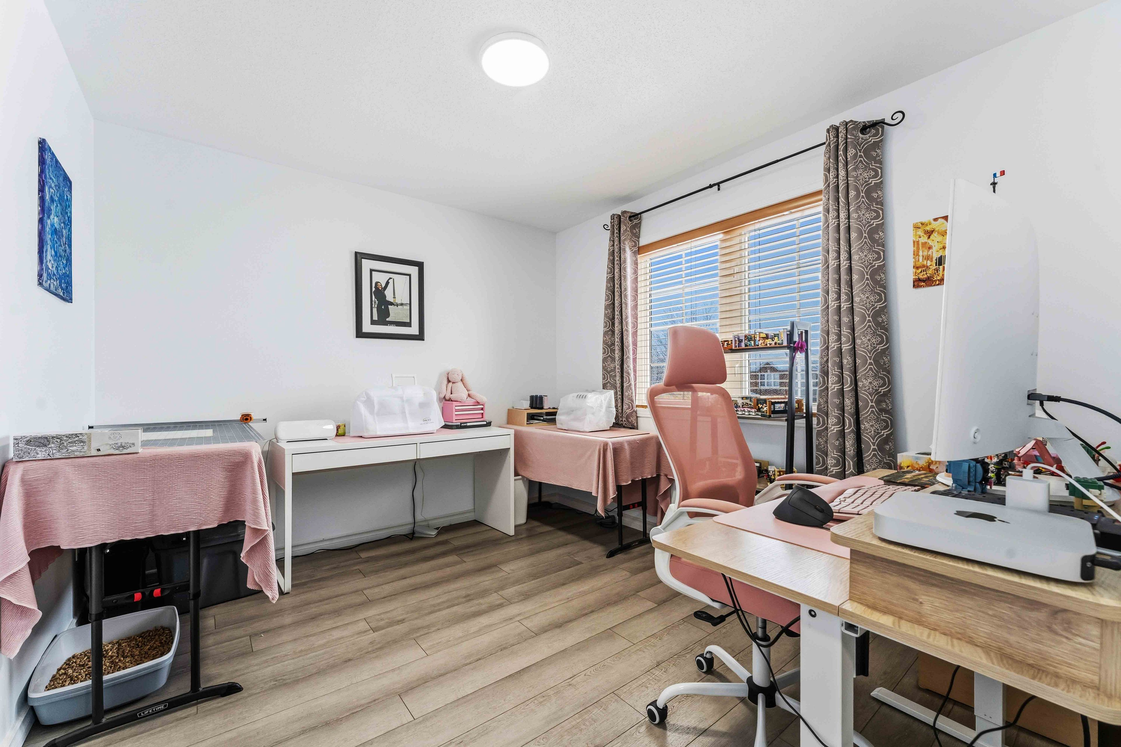 Stunning 3 bedroom family home with a double garage and a spacious backyard in fallingbrook. The main floor features a cozy living room and a separate dining area with a gas fireplace, plus a handy main floor office space. The updated kitchen is beautifully appointed with custom maple cabinetry, soapstone counters, and new appliances. The staircase has fresh hardwood, and all the carpeting has been replaced with new flooring throughout the home. Upstairs offers 3 generous bedrooms plus a versatile loft area. The large primary bedroom has a walk-in closet and a convenient cheater door to the main bath. Downstairs, the fully finished basement provides a sizable rec room with a murphy bed, a media/spare room, a 3-piece bath, and extra storage space. Outside, the spectacular fully fenced backyard features a large deck, gazebo, and stone patio, all recently re-landscaped for carefree outdoor enjoyment. Conveniently located in a friendly family neighbourhood, just minutes from hwy 174, trim rd., and innes rd. Shops & services, and steps from trillium p. S. And varennes park.