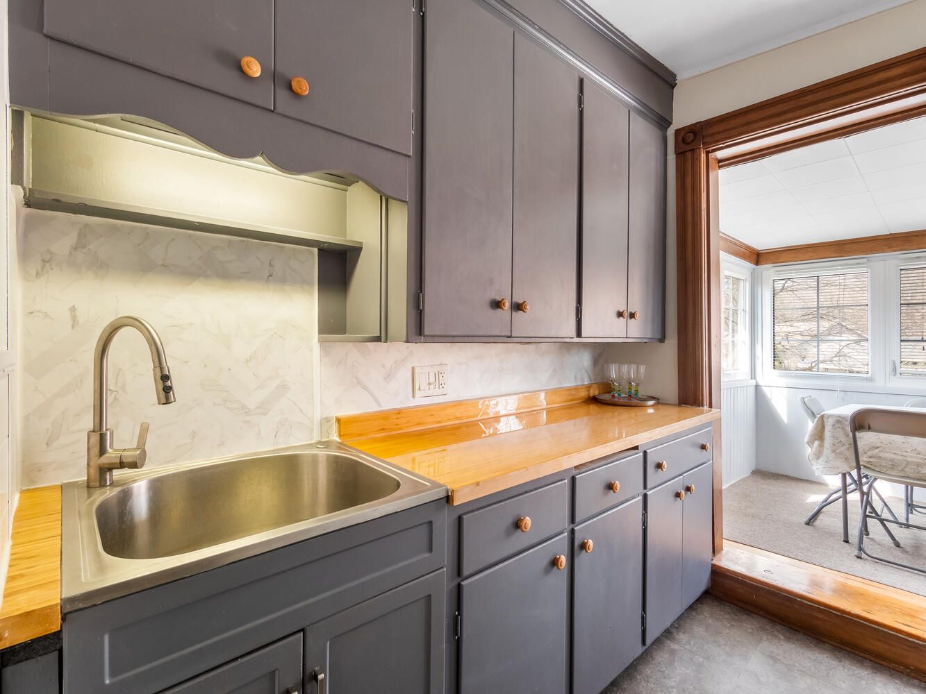 • Second kitchen and sunroom upstairs, ideal for an in-law suite or rental.