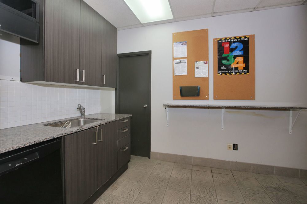 Available for sub-lease, this sophisticated office suite at 155 caster ave provides approximately 2,058 sq. Ft. Of renovated, move-in-ready workspace. The interior features high-end designer finishes, including grey-toned laminate flooring, modern pot lighting, and a unique architectural tray ceiling. The layout includes two expansive commercial rooms ideal for client-facing activities or open-concept bullpens, complemented by two quiet private offices for focused work. Tenants will have access to professional staff facilities, including two private washrooms and a full kitchenette with granite-style countertops. The exterior of the building offers a clean, professional aggregate facade with prominent windows and a landscaped entryway to welcome clients.
